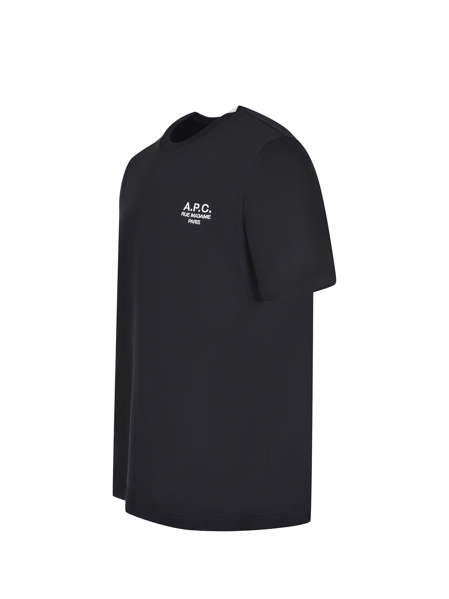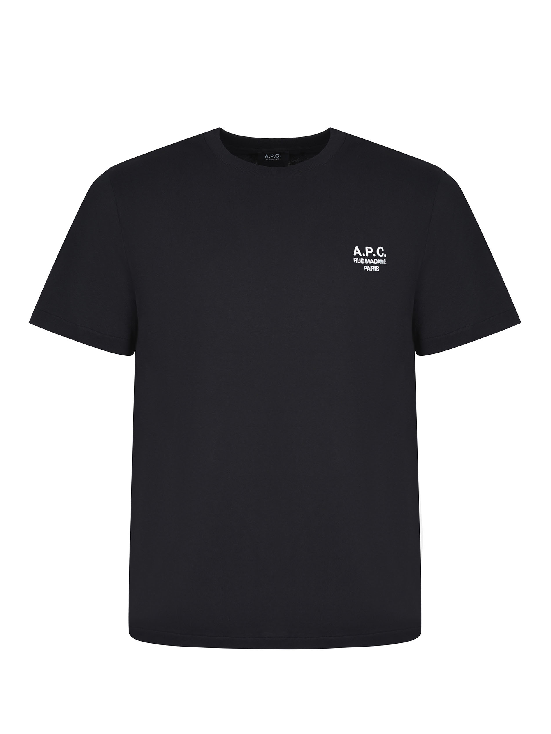 A.P.C. T-shirt made of black cotton. Ribbed crew neck. Short sleeves. Contrasting embroidered logo lettering on the chest. 100% cotton