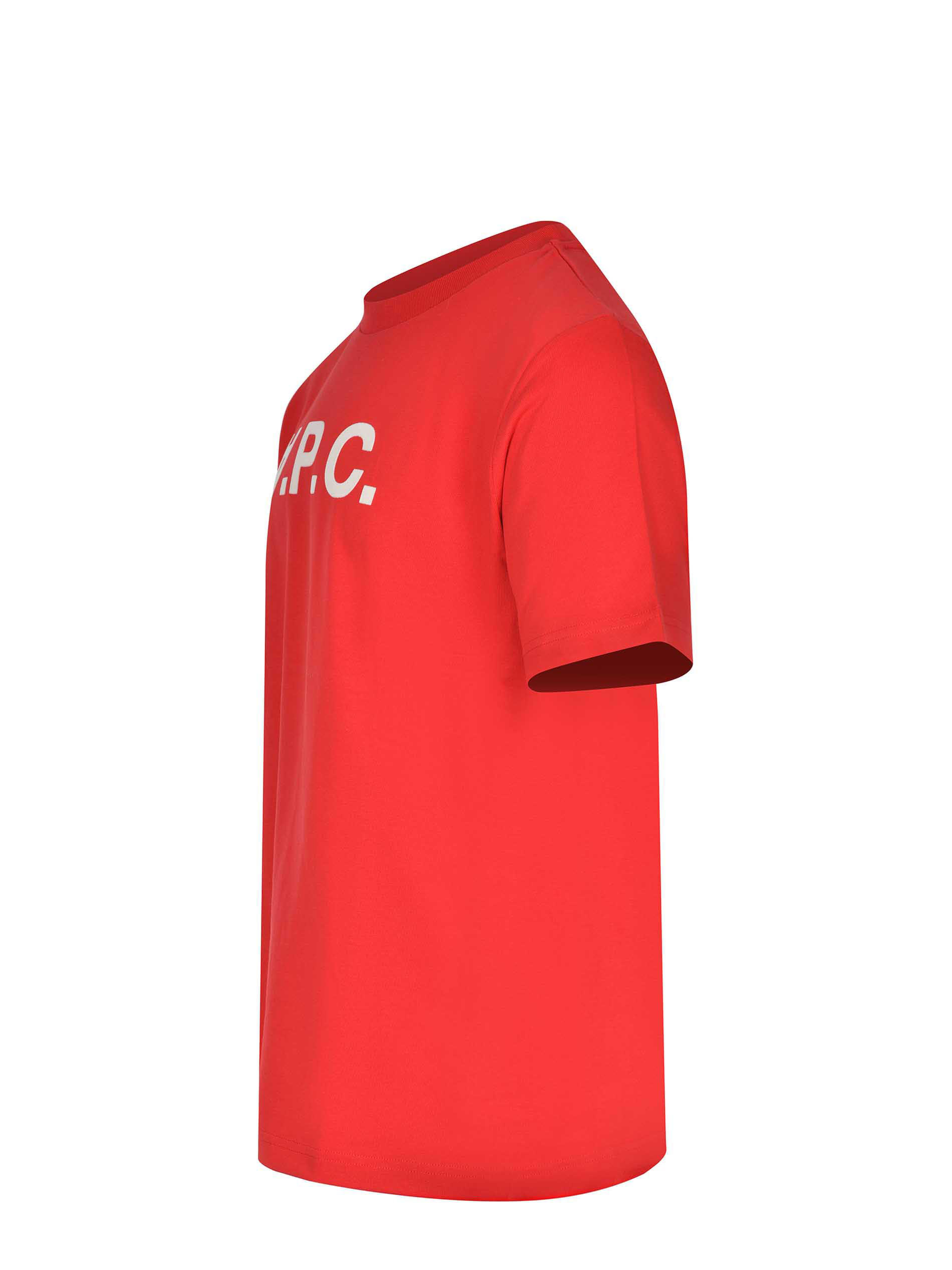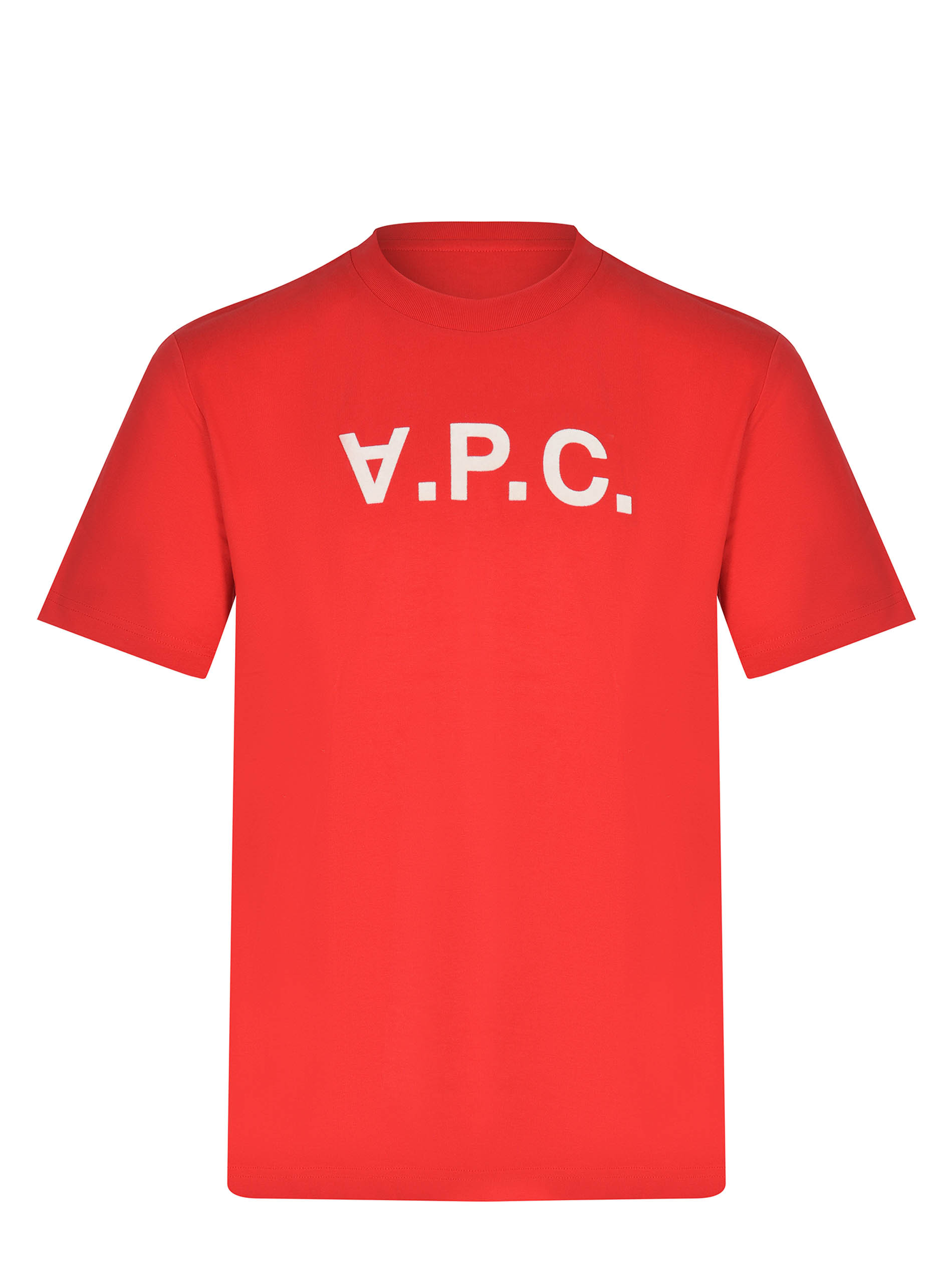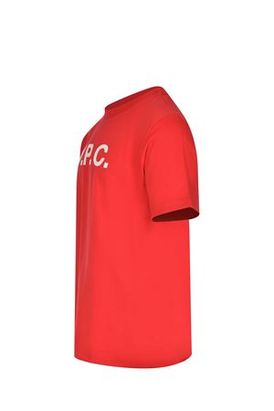 A.P.C. T-shirt made of red cotton. Ribbed crew neck. Short sleeves. Contrasting logo lettering on the front. 100% cotton