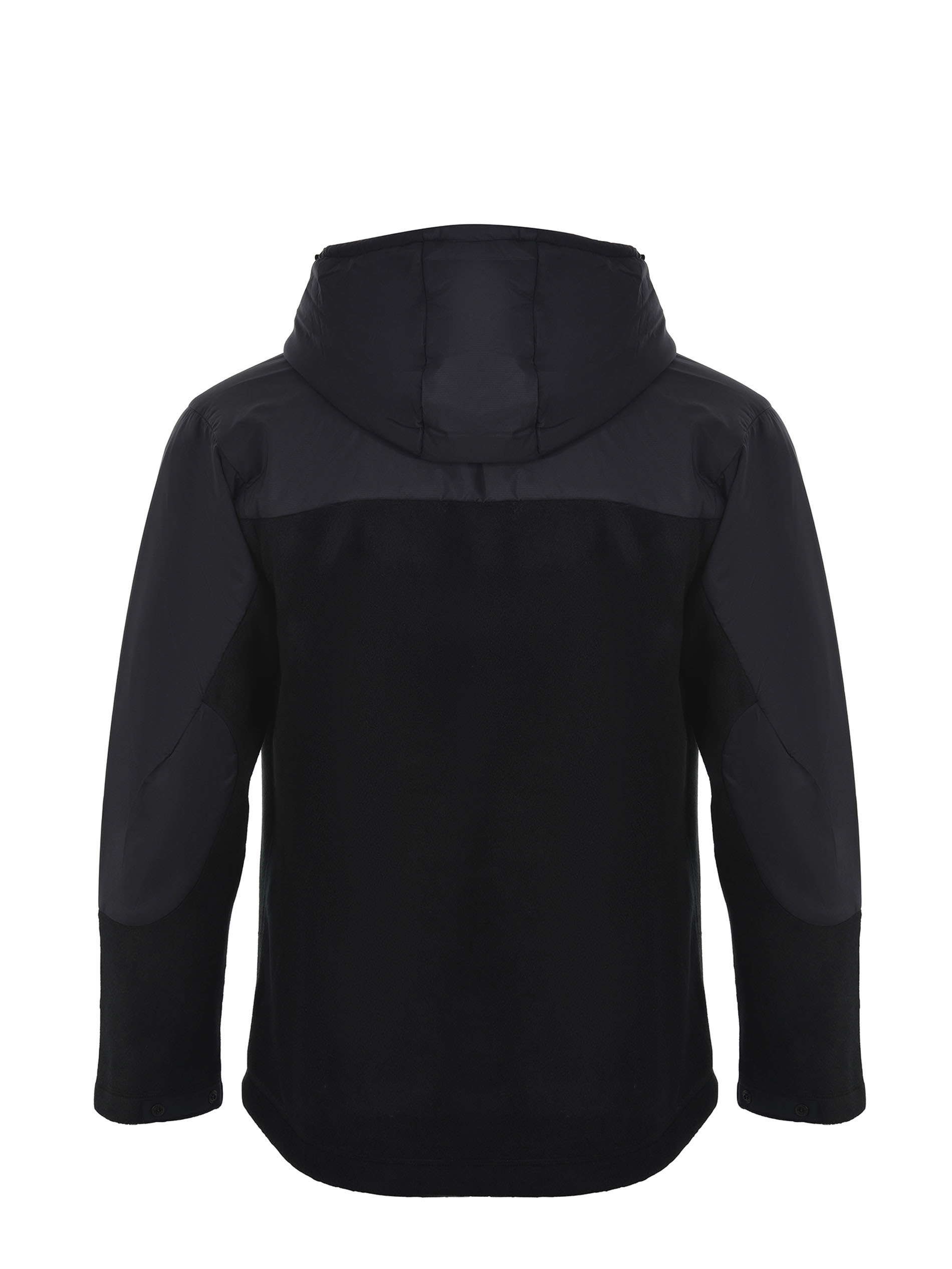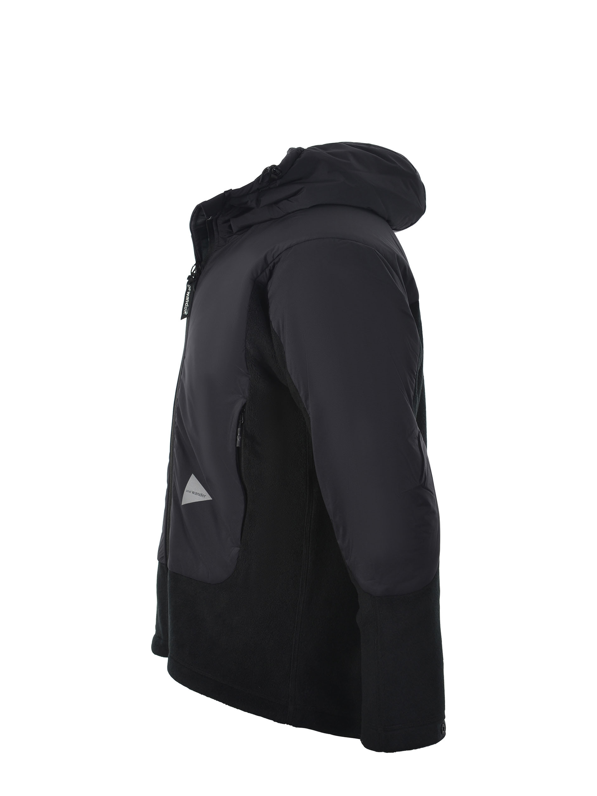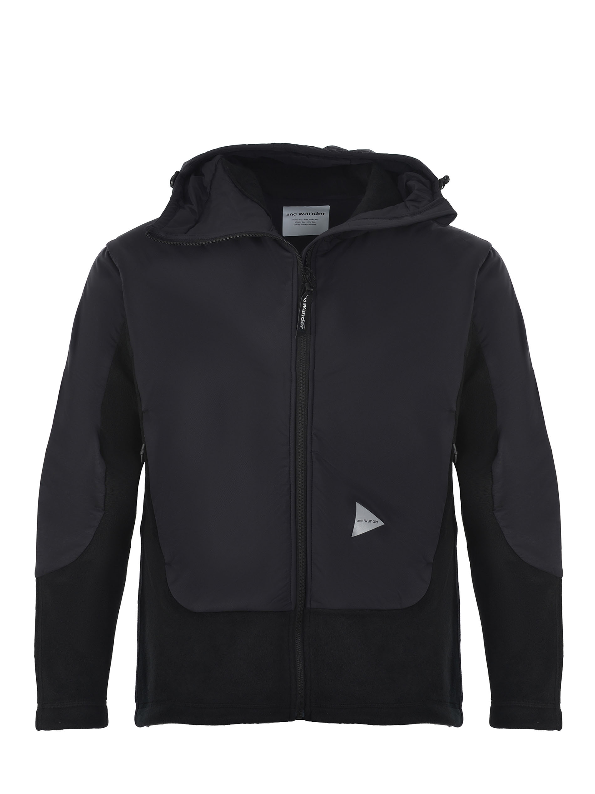 And Wander jacket in black nylon and fleece. High collar. Hood with drawstring. Front zip closure. Long sleeves. Front welt pockets with zip closure. Reflex logo print.
