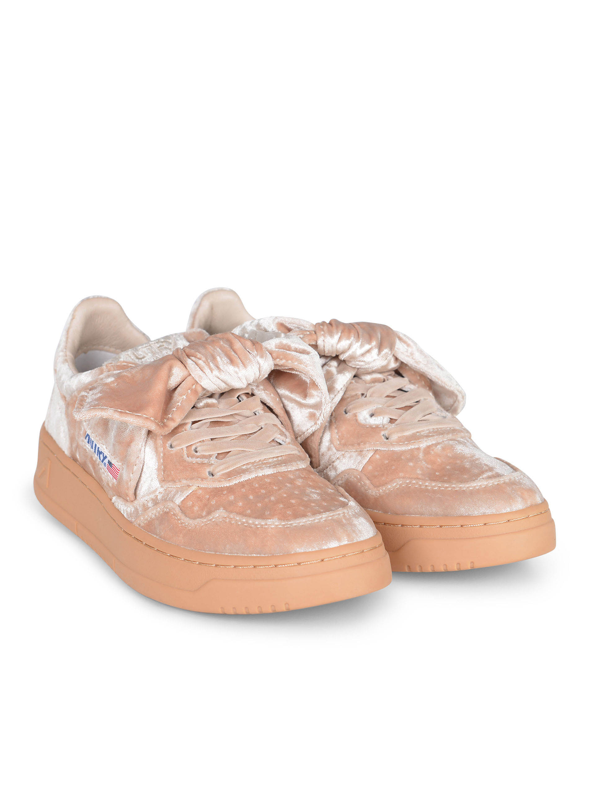 Autry "Medalist Low" sneakers made of light pink velvet.