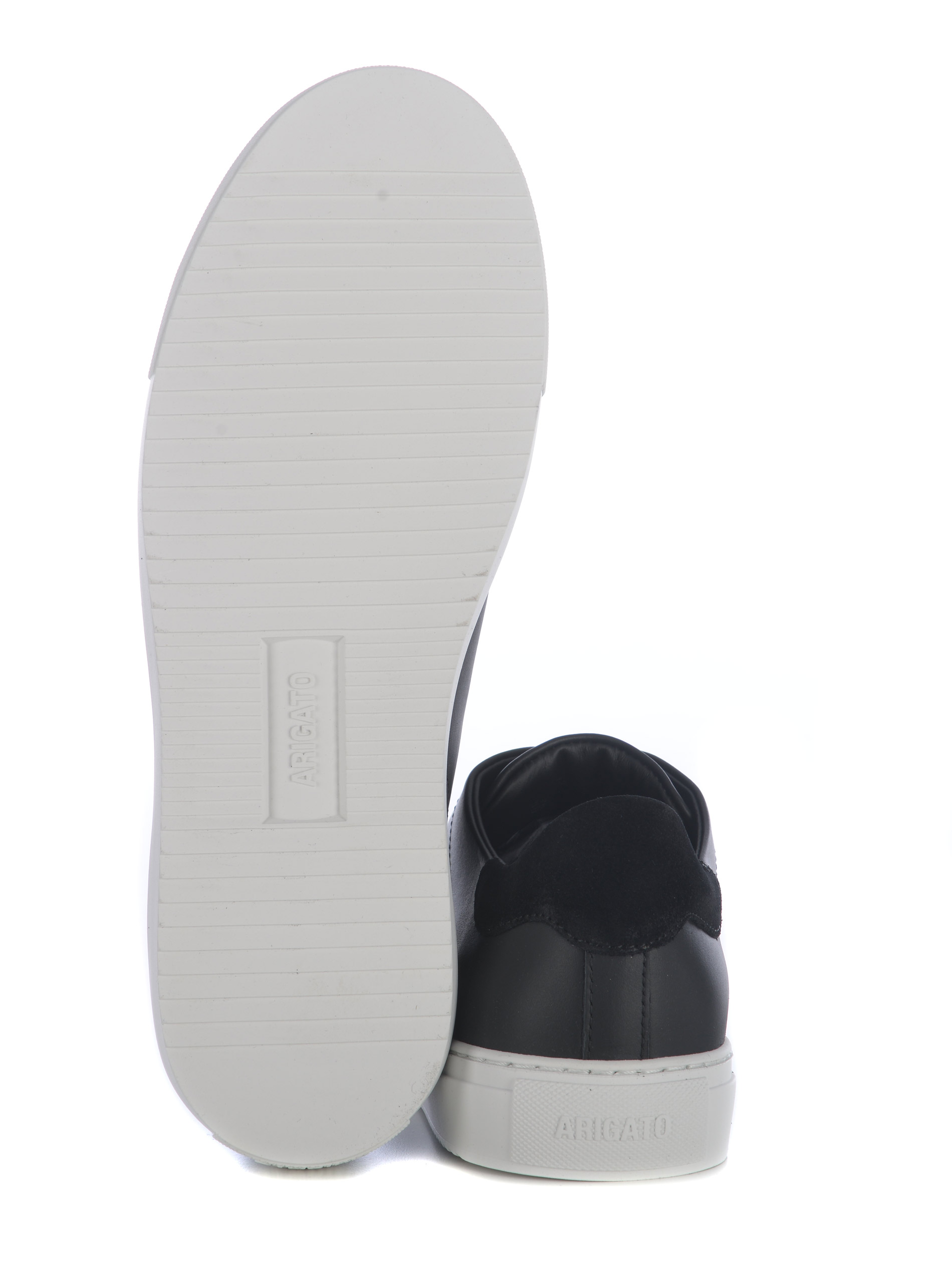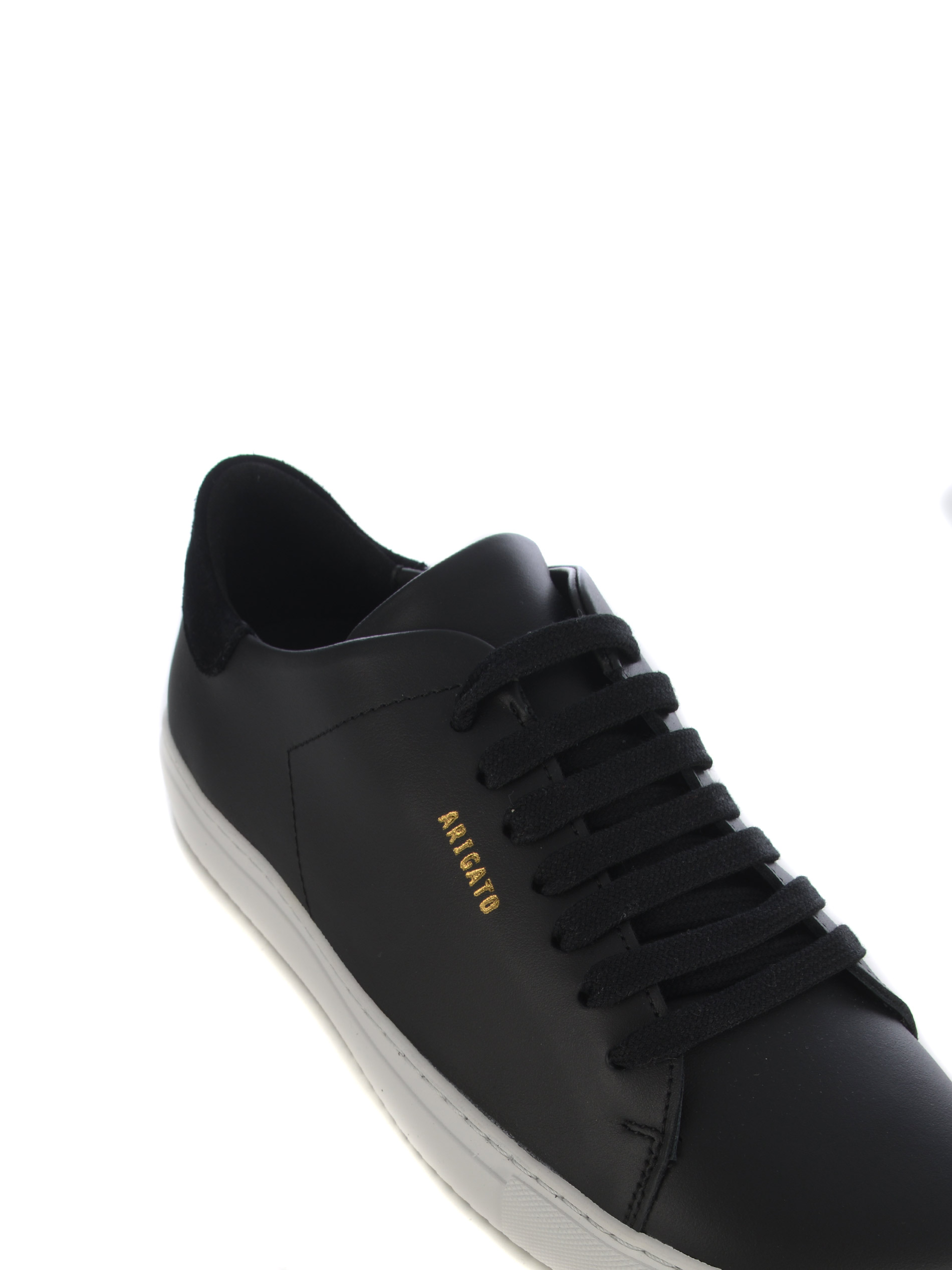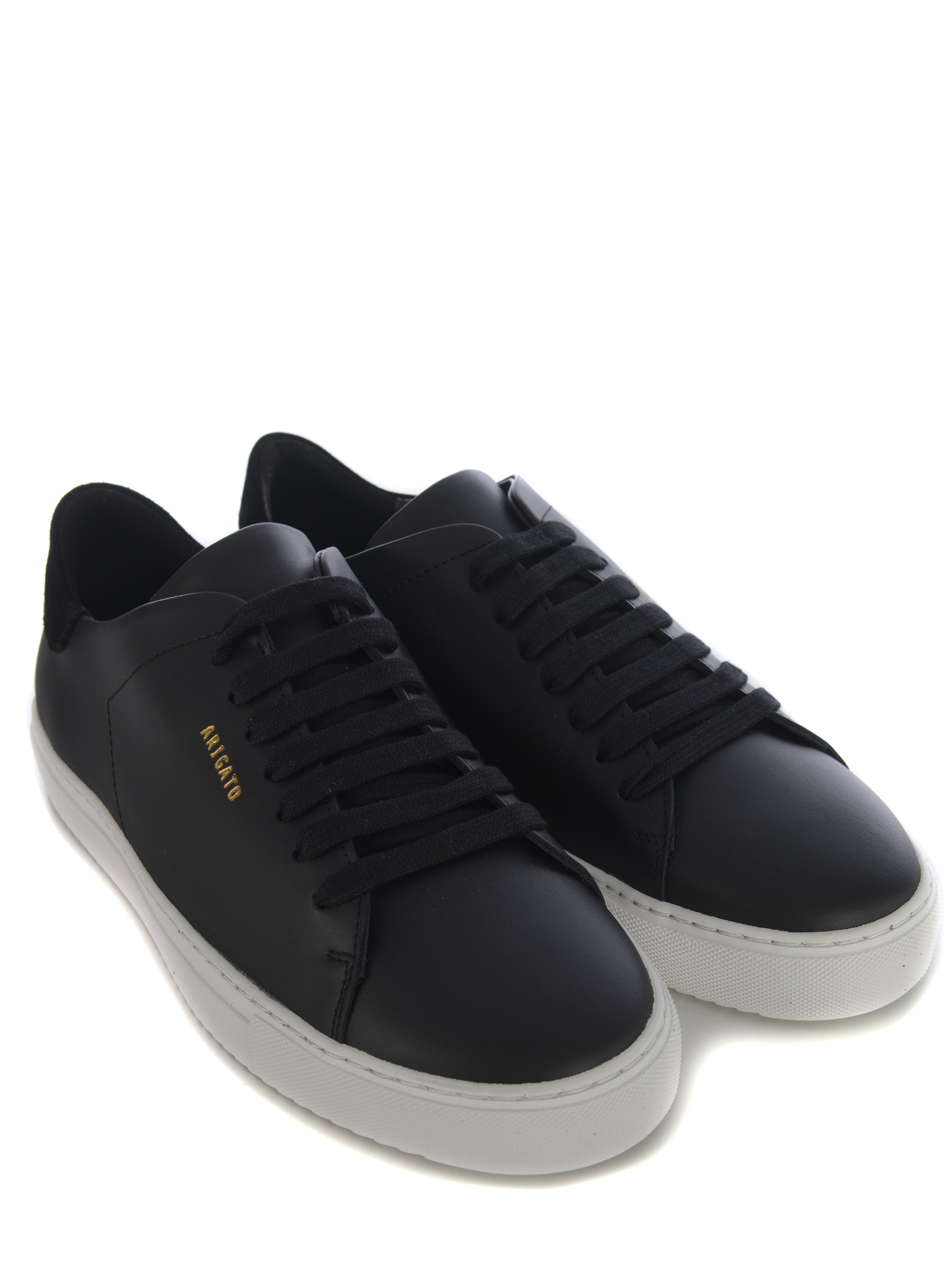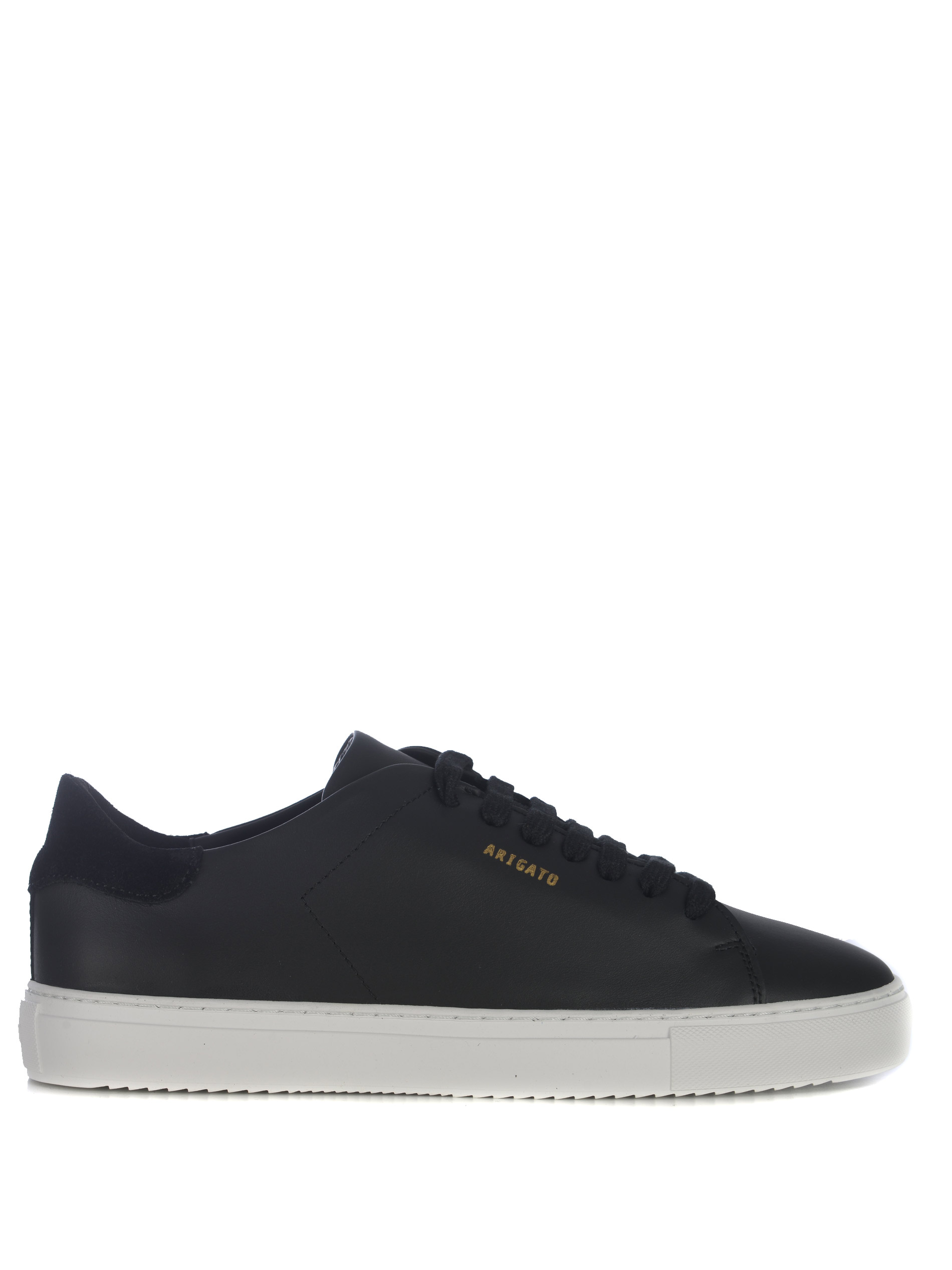 Sneakers Axel Arigato "Clean90" made of black leather. Tone-on-tone suede inserts. Round toe. Laced. Tone-on-tone laces. Contrasting gold engraved "Arigato" lettering on the side. Padded, removable insole. White rubber sole. Tone-on-tone logo lettering on the back. Sole height 3cm. Sole 100% rubber. 100% leather.