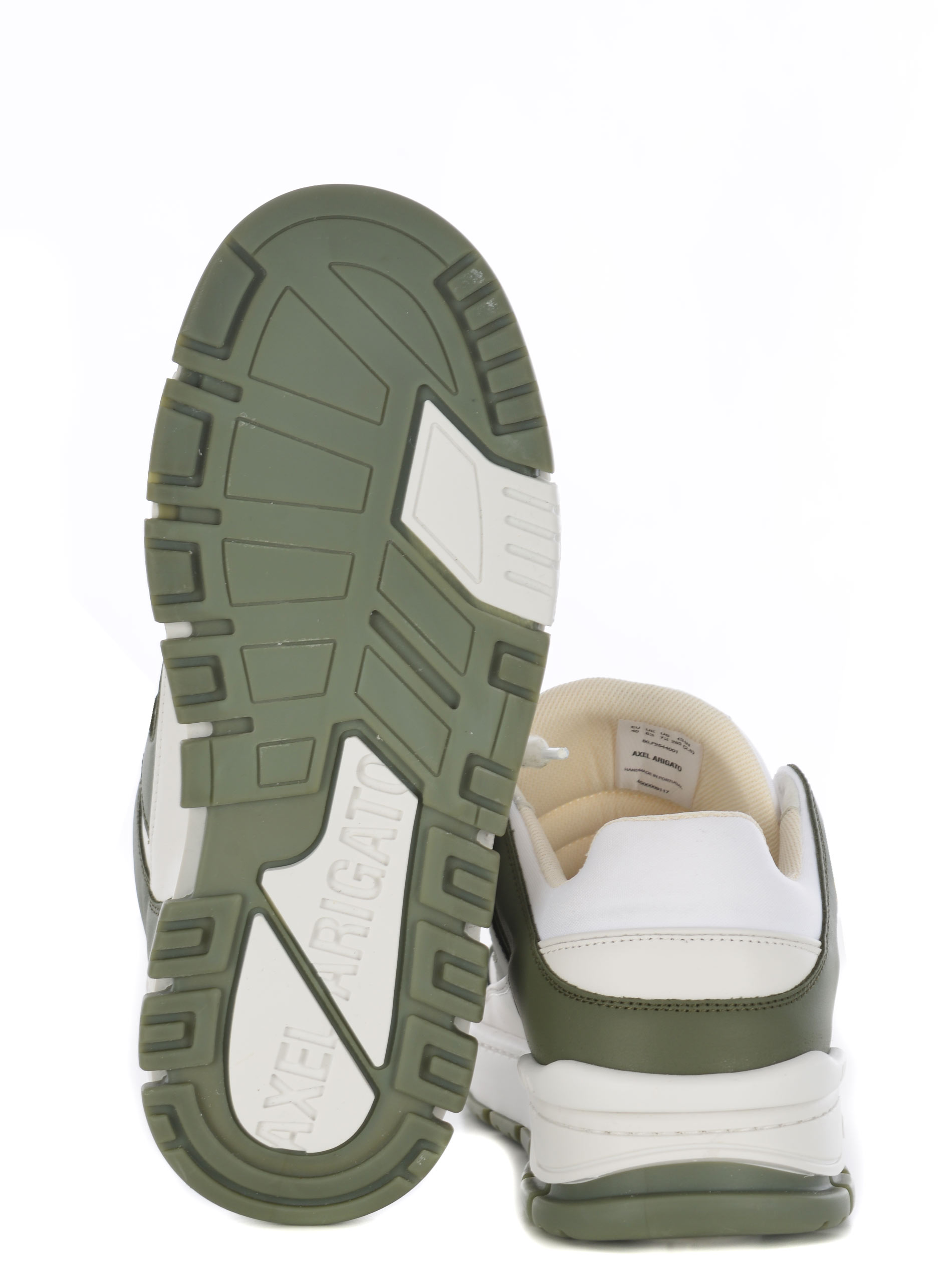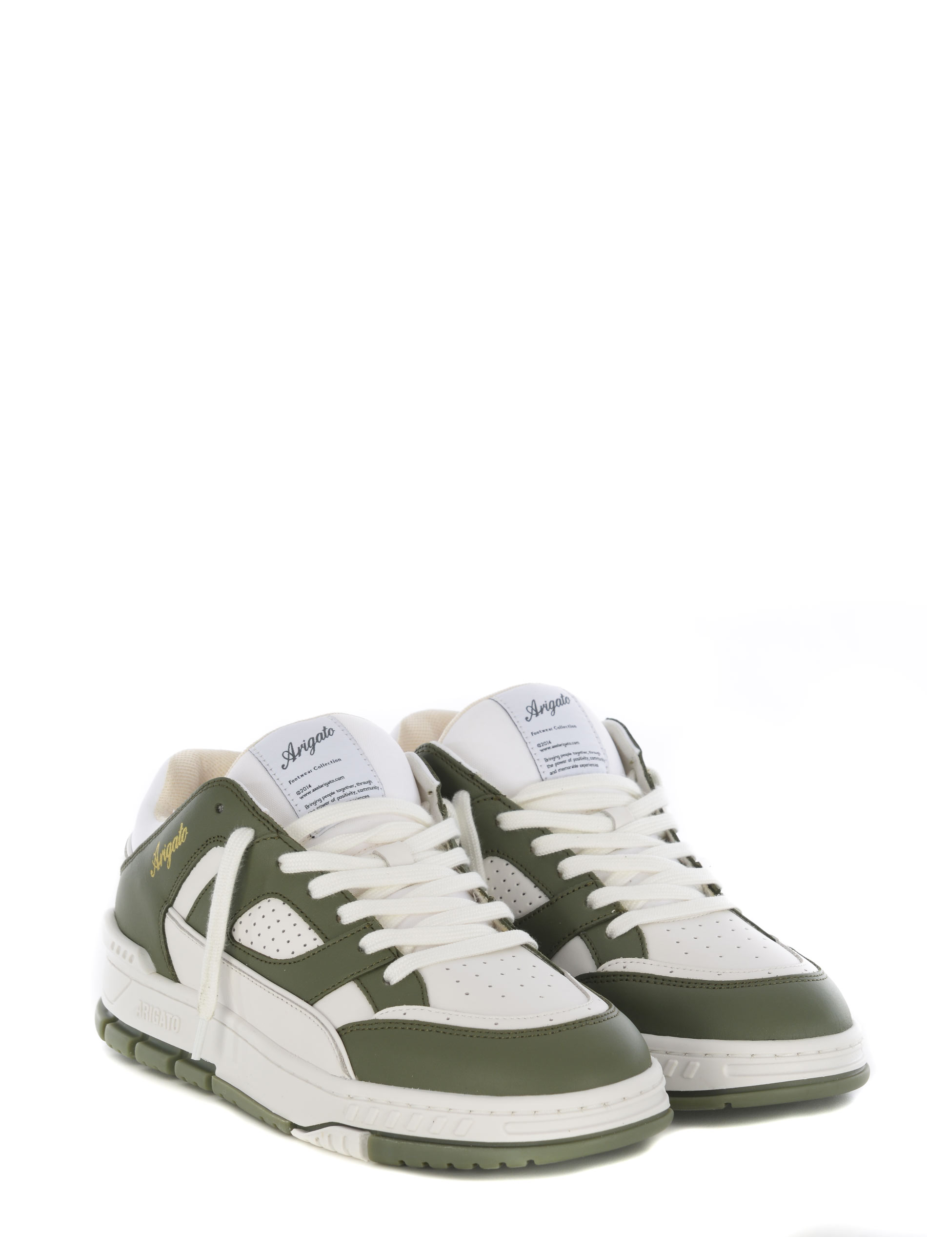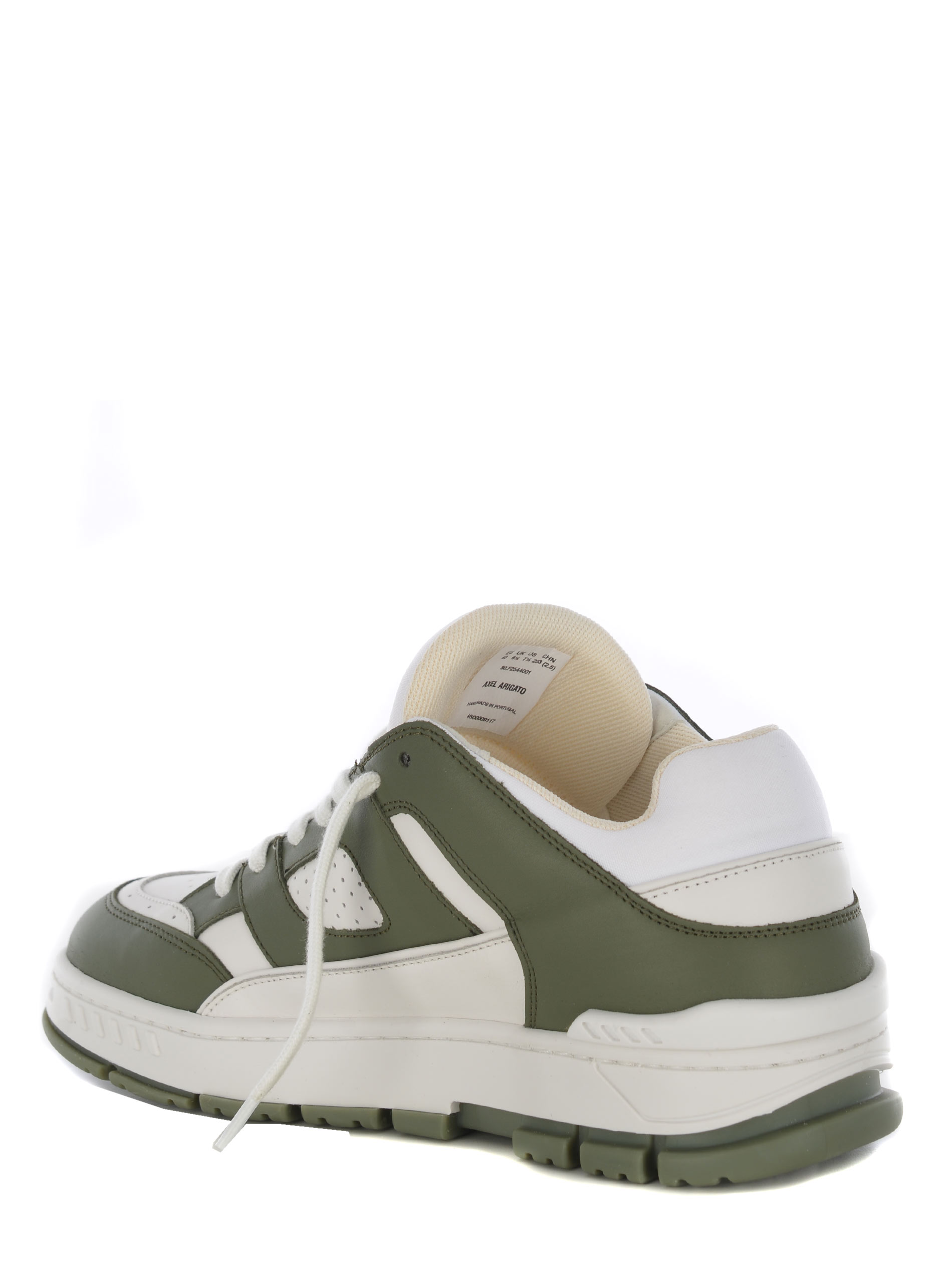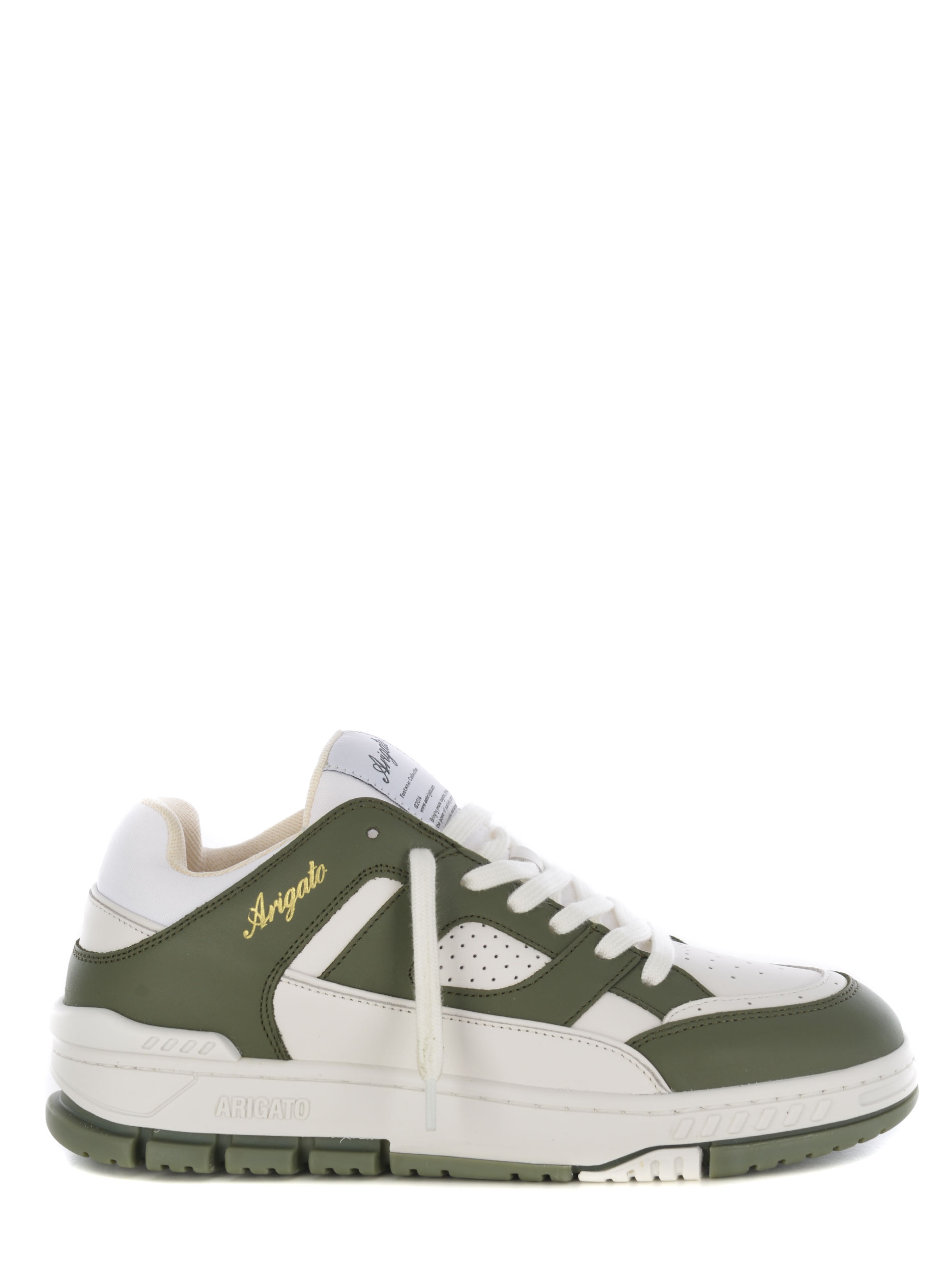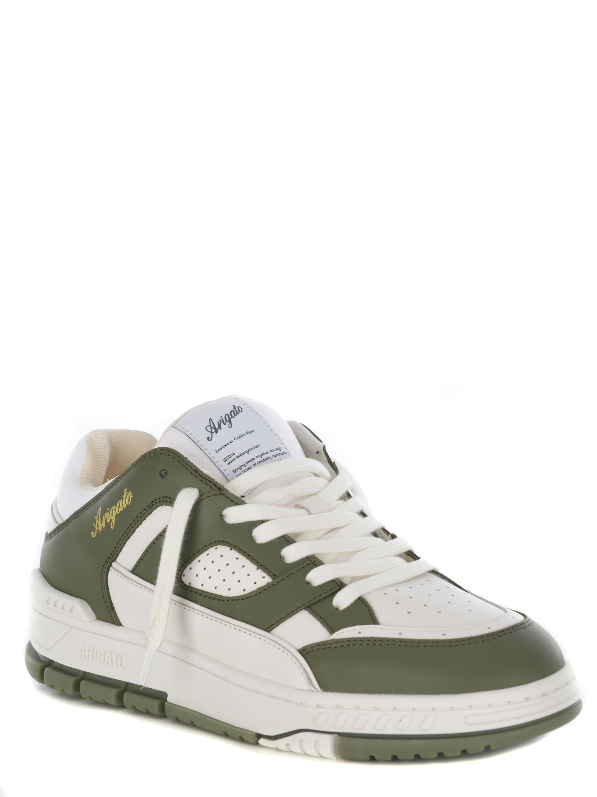 Sneakers Axel Arigato "AreaLo" made of white leather. Contrasting Military Green inserts. Round toe, breathable. Logo patch applied on the tongue. Laced. Tone-on-tone laces. "Arigato" lettering in Gold color, on the side. Padded, removable insole. Cream rubber sole. Tone-on-tone logo lettering on the side. Sole height 37mm. 100% Rubber sole. 100% Leather.