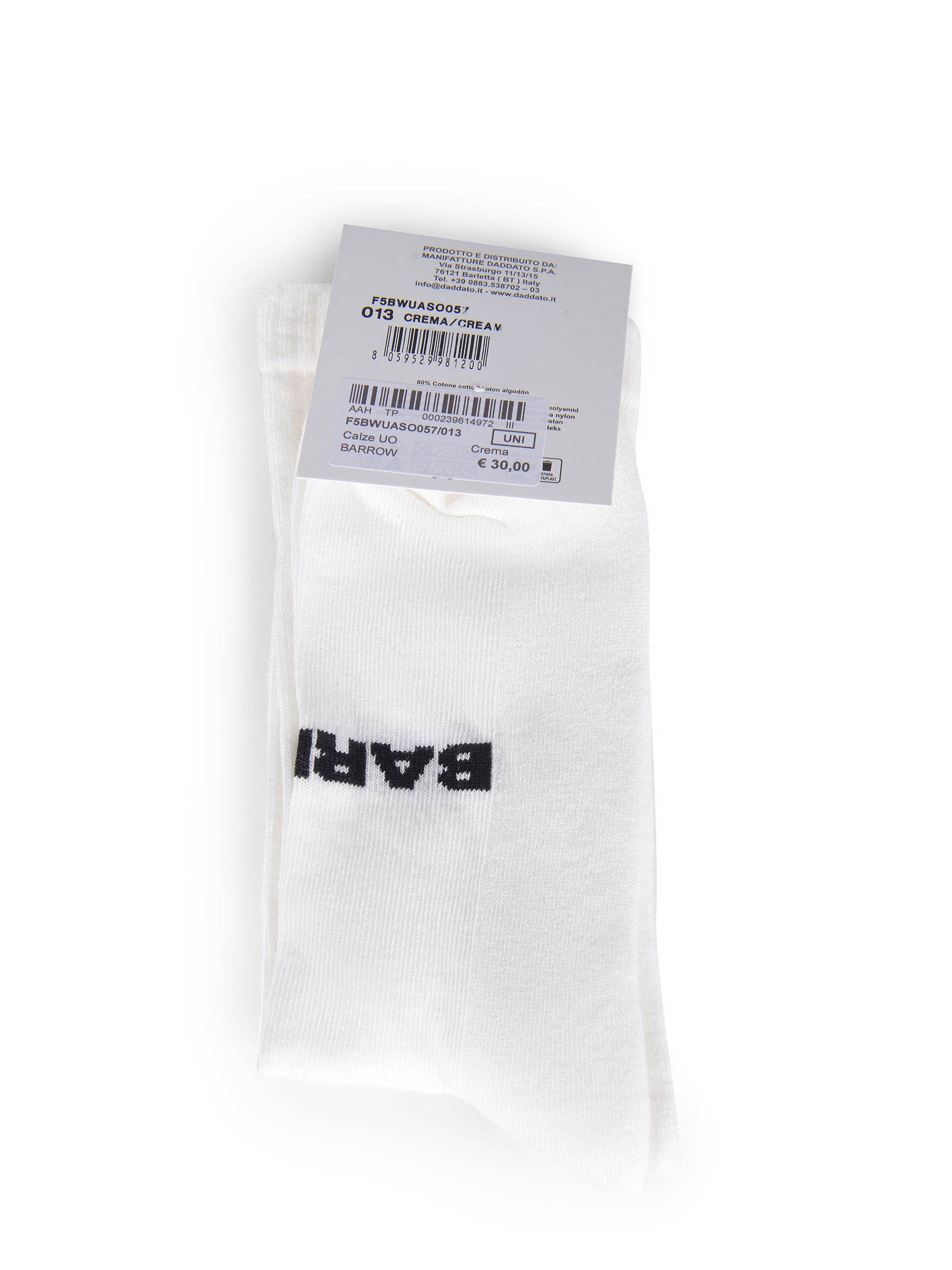 Barrow socks made of cream-colored cotton. Contrasting bear on the side. Logo lettering on the front. One size. 80% cotton, 17% polyamide, 3% elastane. Made in Italy