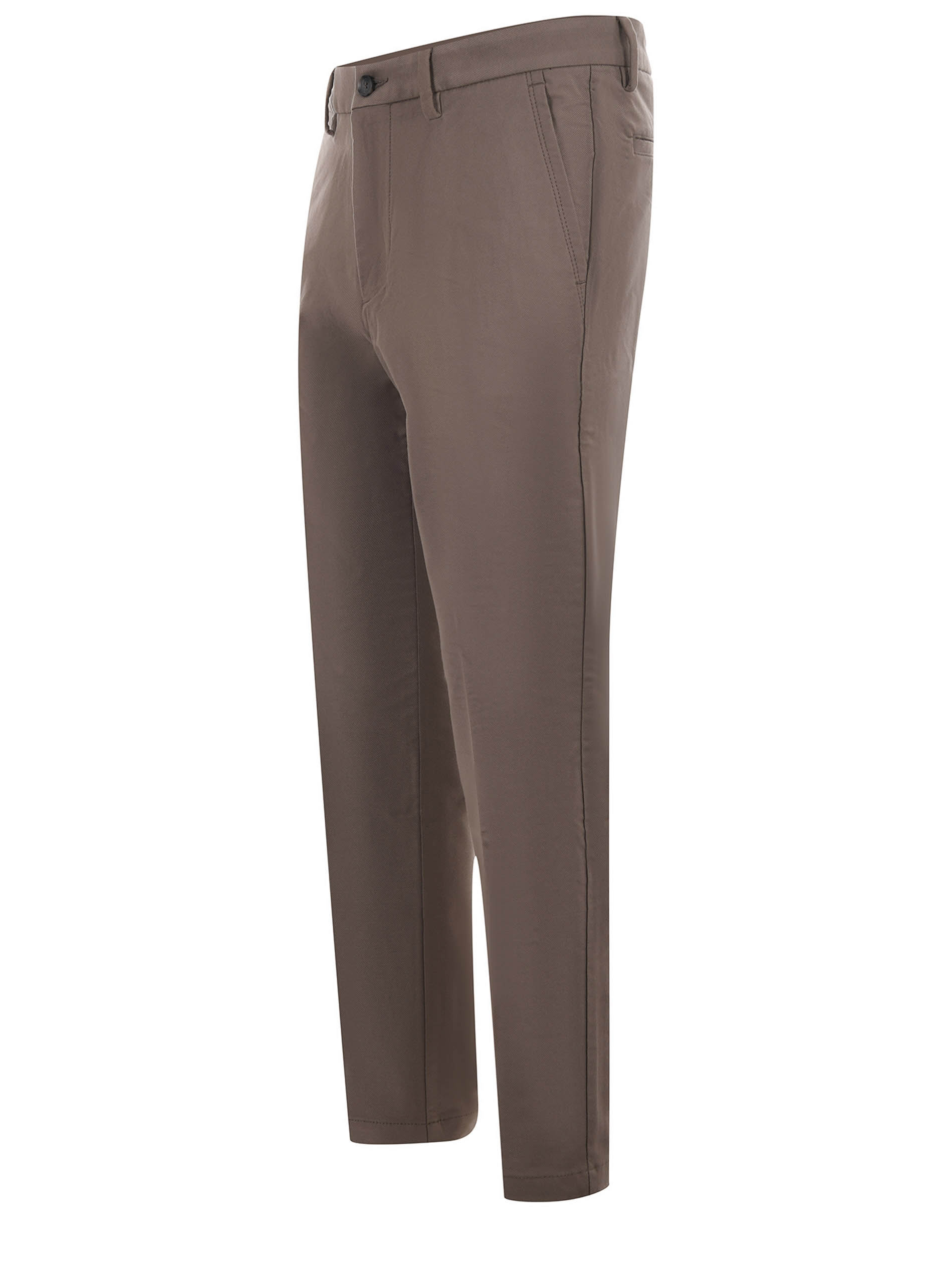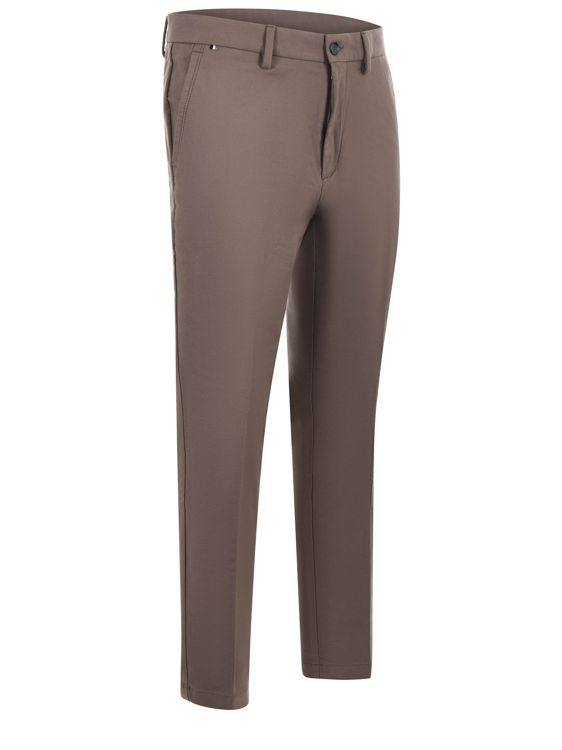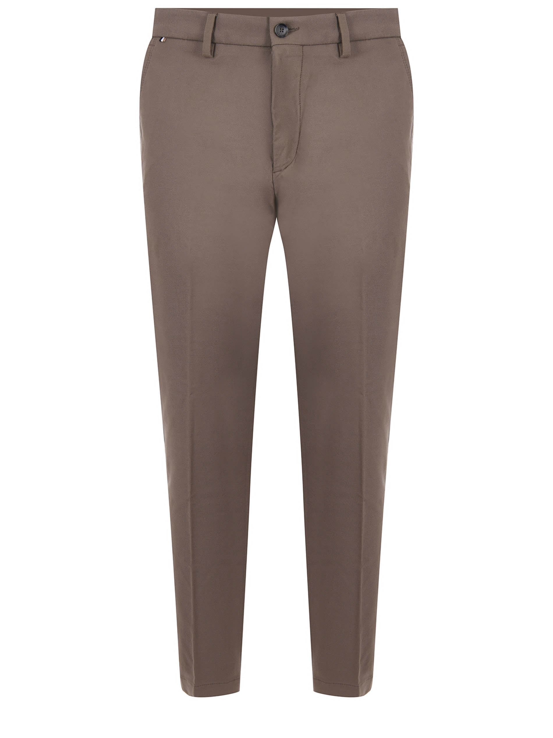 Boss cotton twill trousers. Slant pockets. Welt pockets on the back. Belt loops. Zip and button closure. Slim fit.