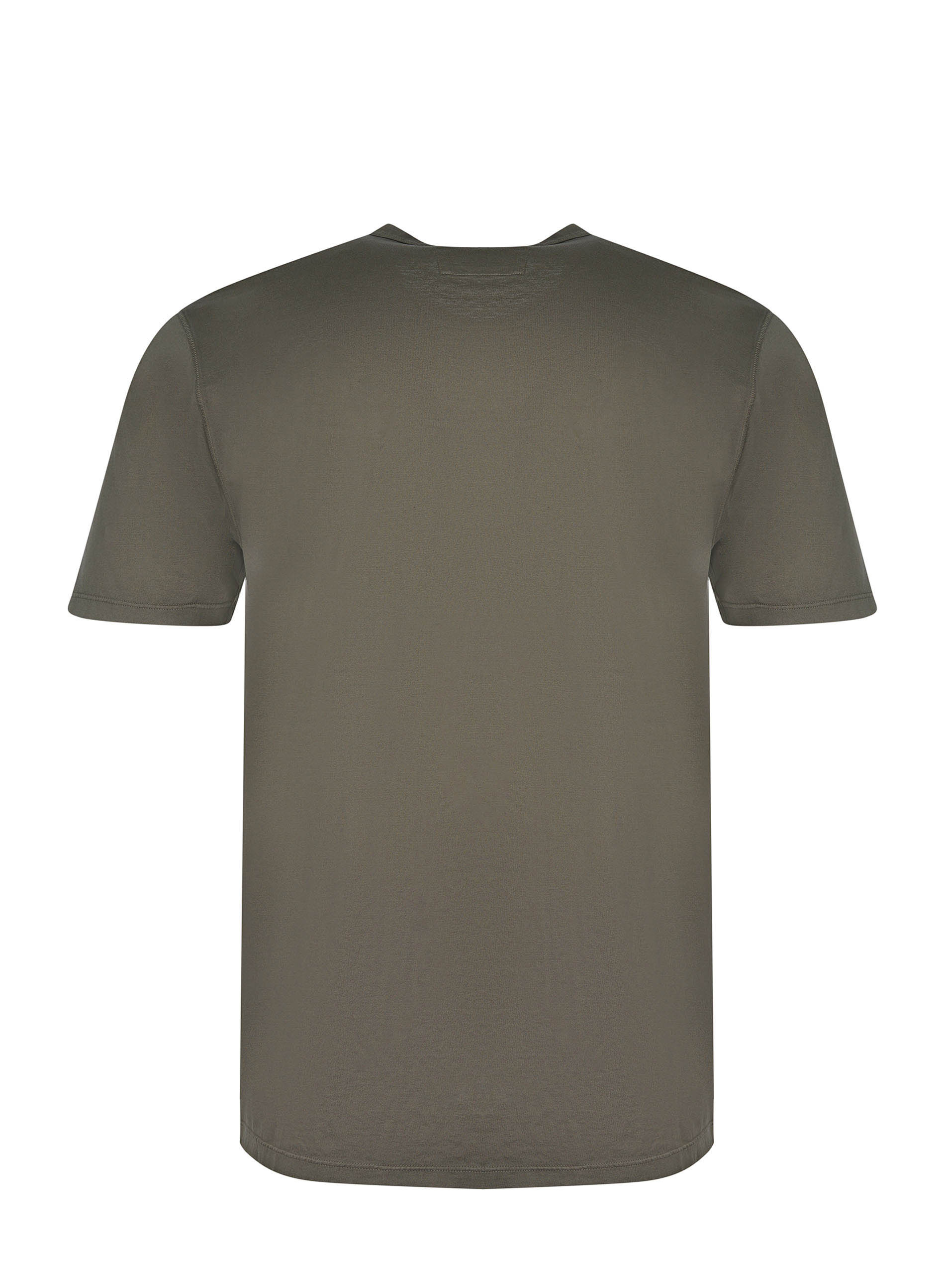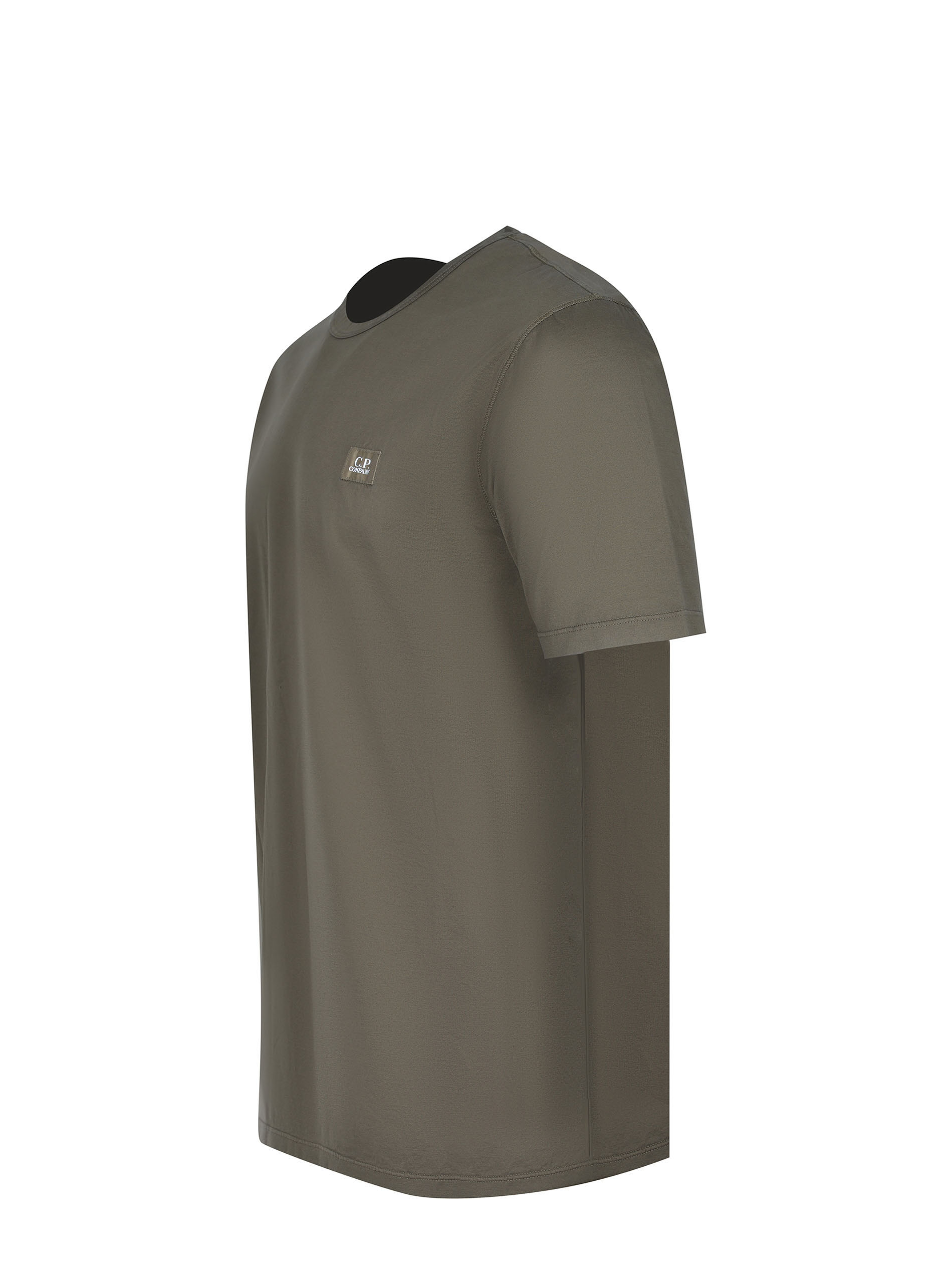 C.P. Company T-shirt made of cotton in Mud color. Crew neck. Short sleeves. Contrast logo patch on the chest. 100% cotton. Made in Italy