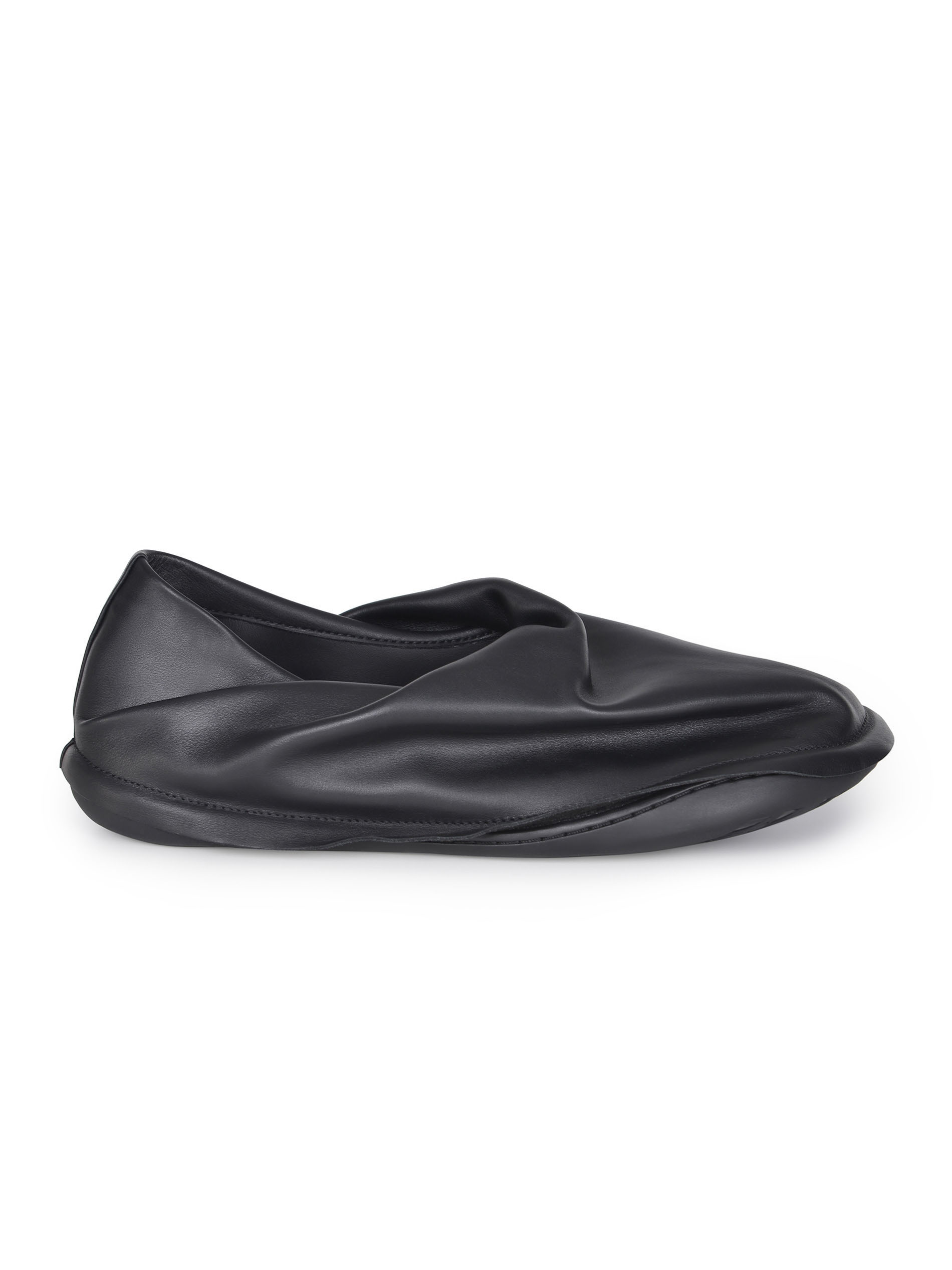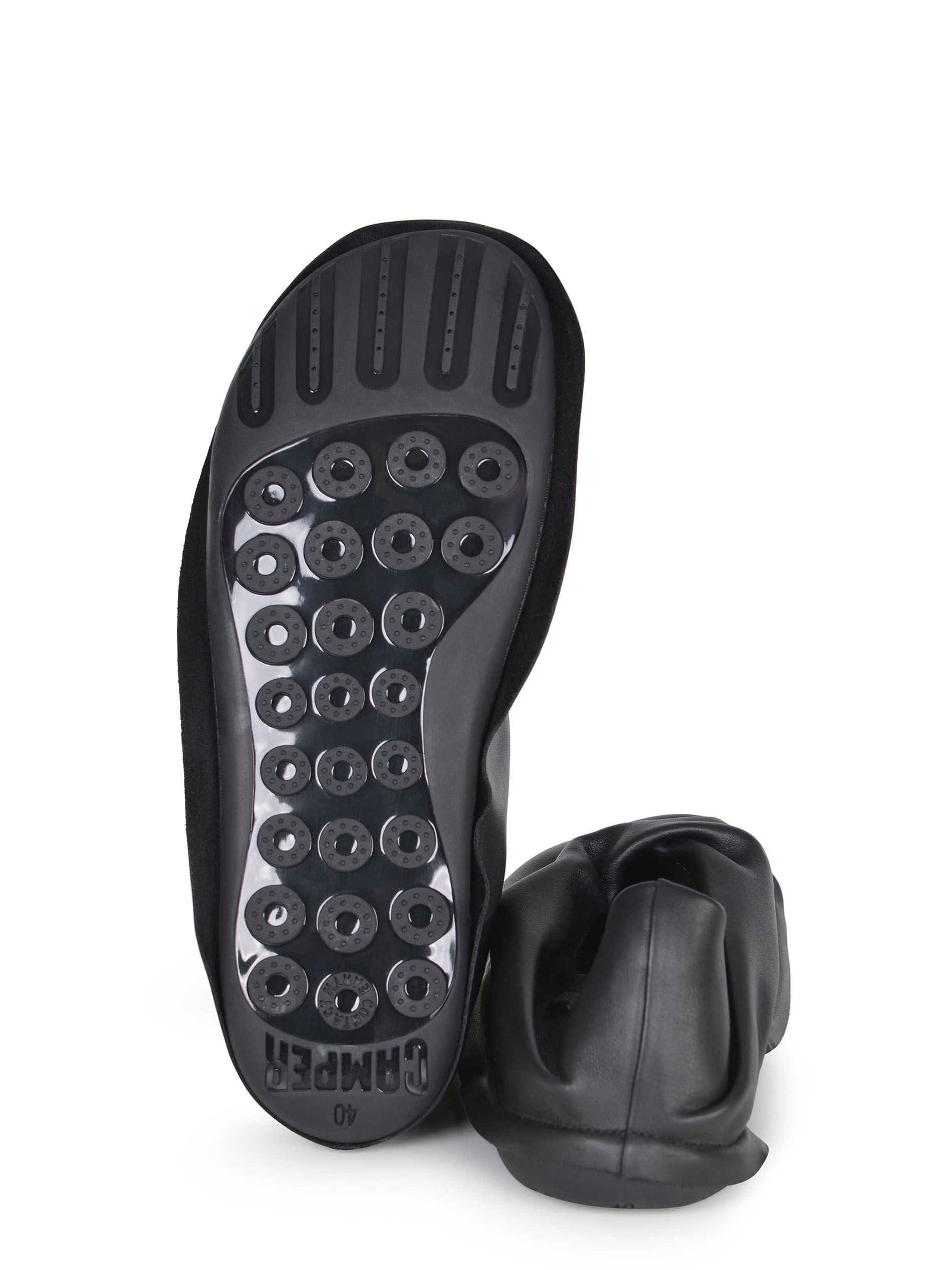 Camper shoes by Issey Miyake made of black calf leather. Draped effect. EVA insole. Removable anatomical footbed. 100% calf leather.