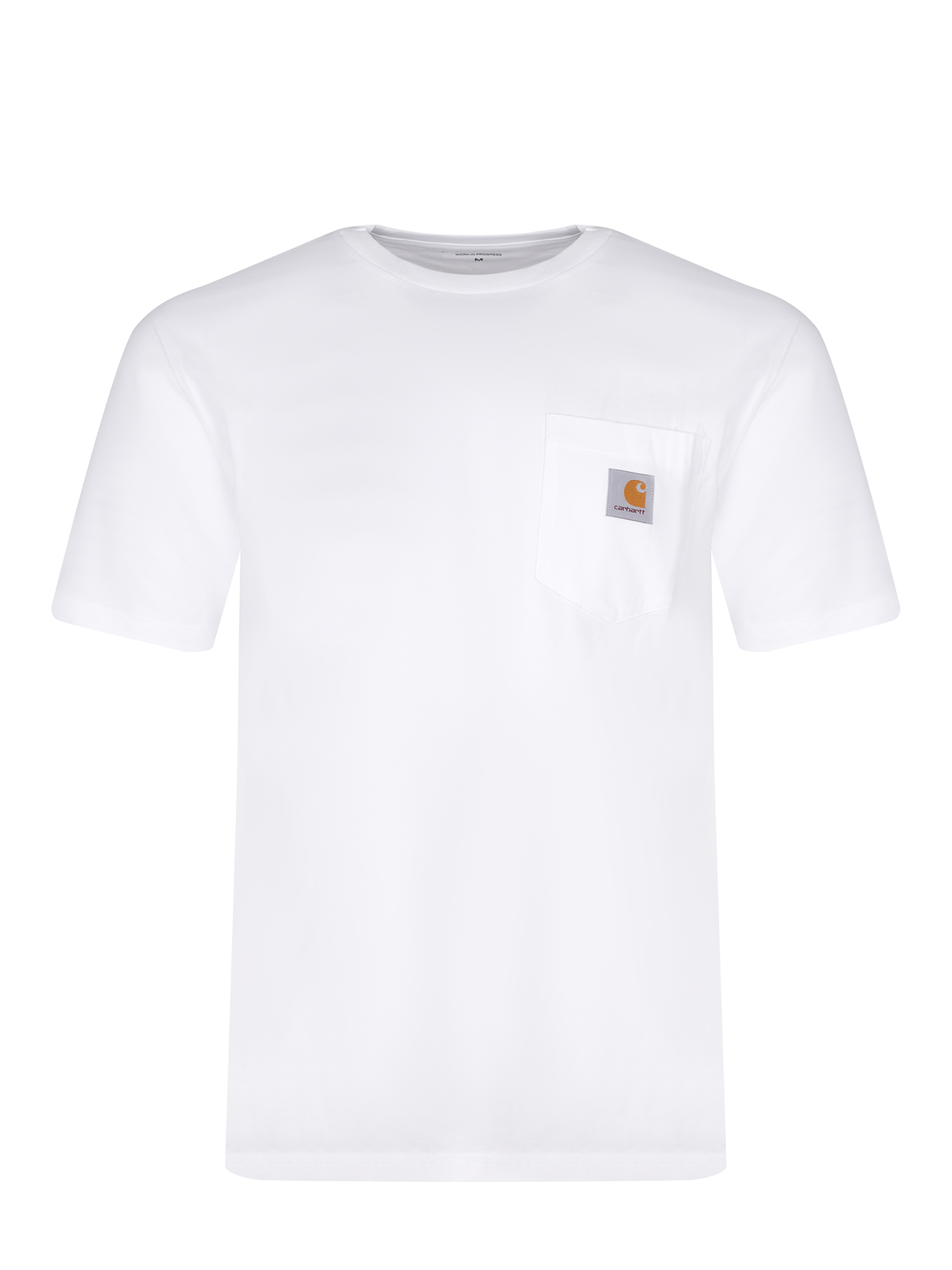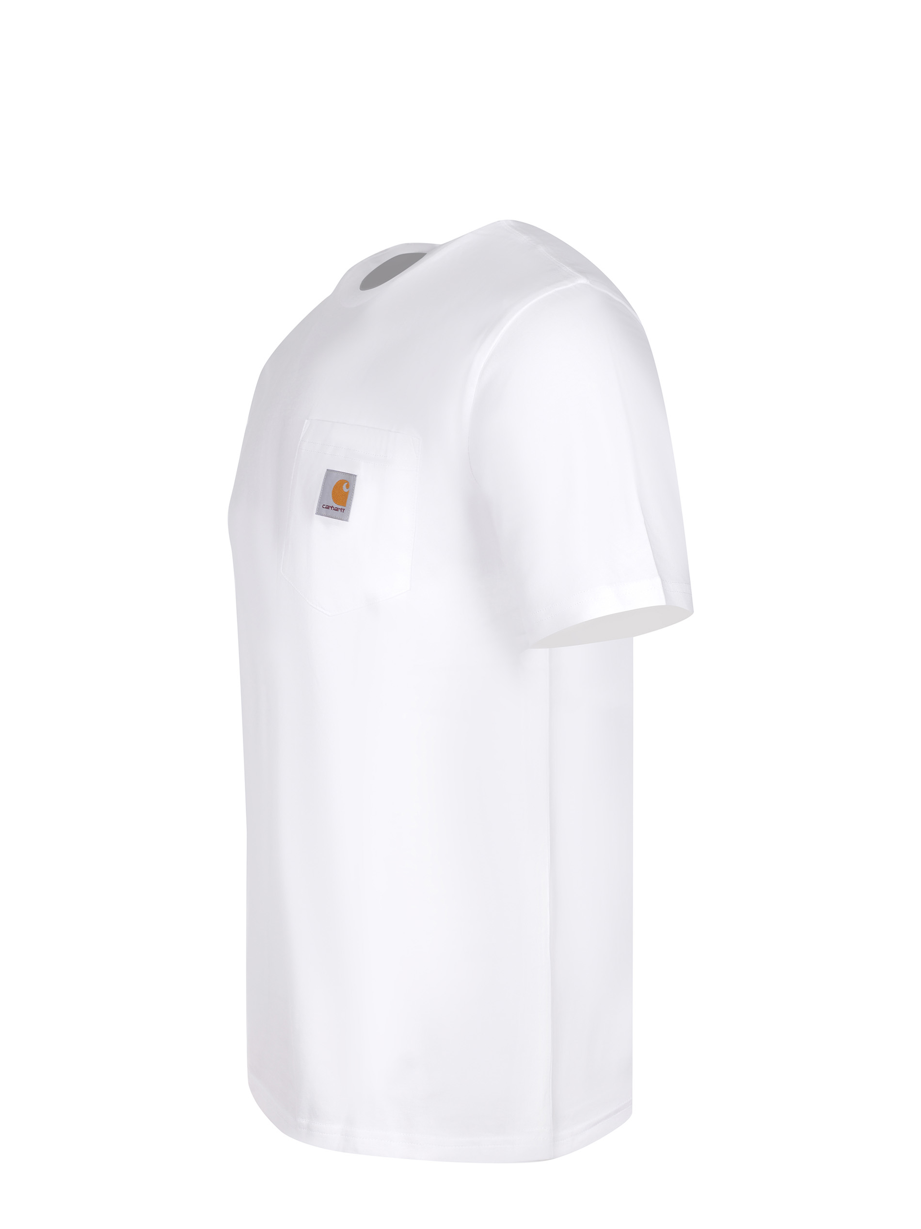 Carhartt T-shirt made of white cotton. Ribbed crew neck. Short sleeves. Chest pocket. Logo patch applied on the chest in contrast. 100% cotton