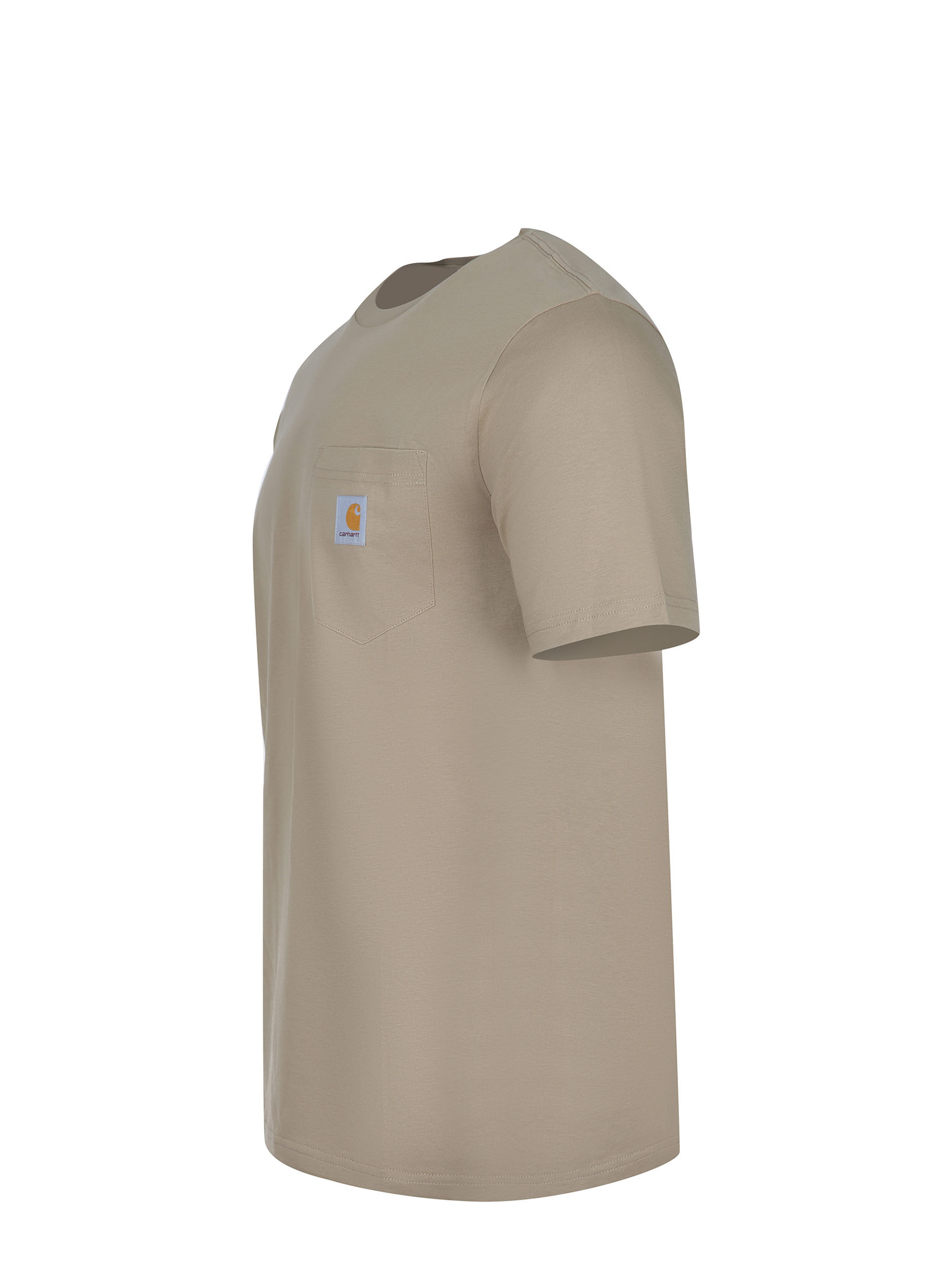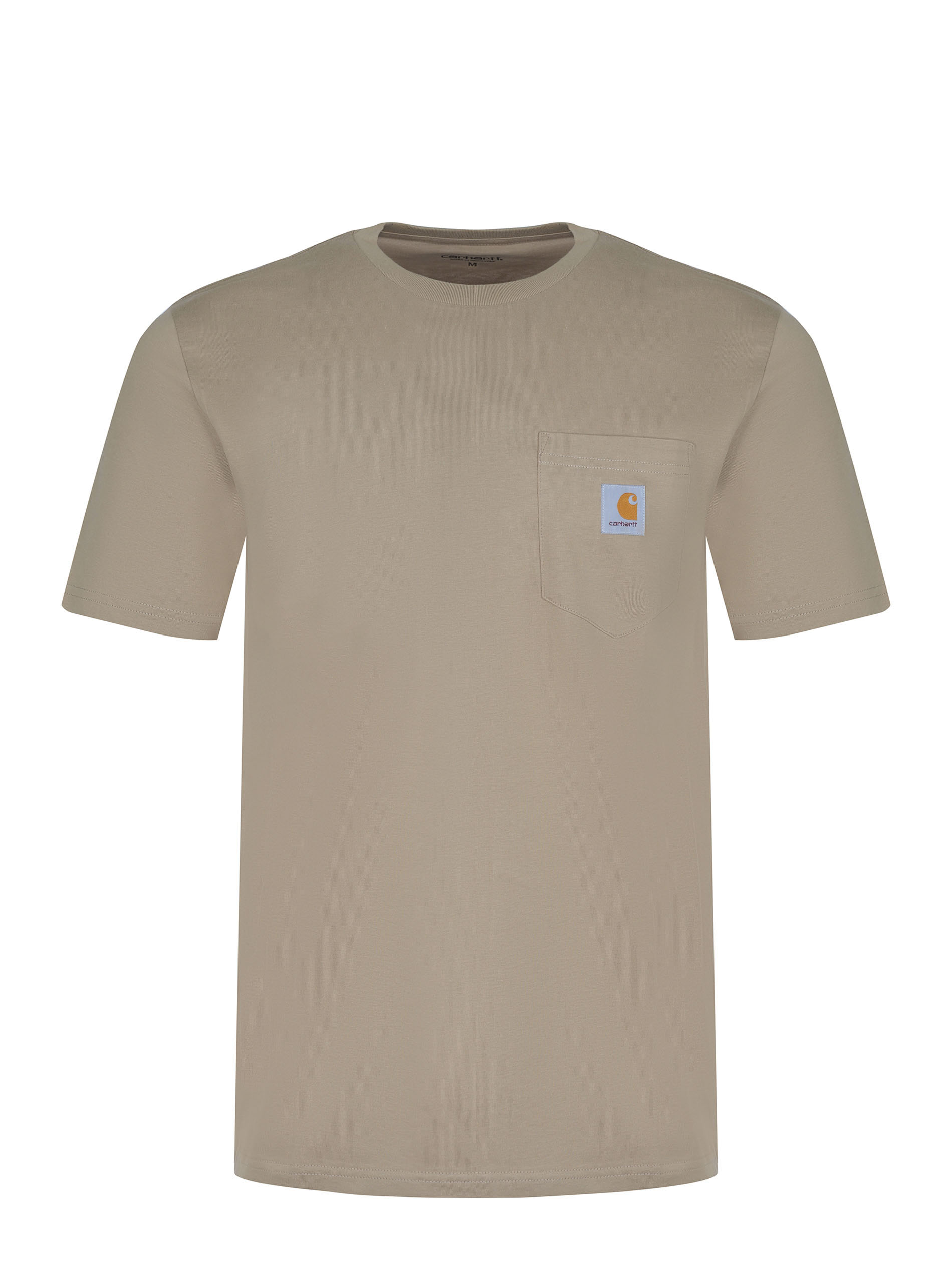 Carhartt T-shirt made of cotton in Sand color. Ribbed crew neck. Short sleeves. Chest pocket. Contrast logo patch applied on the chest. 100% cotton