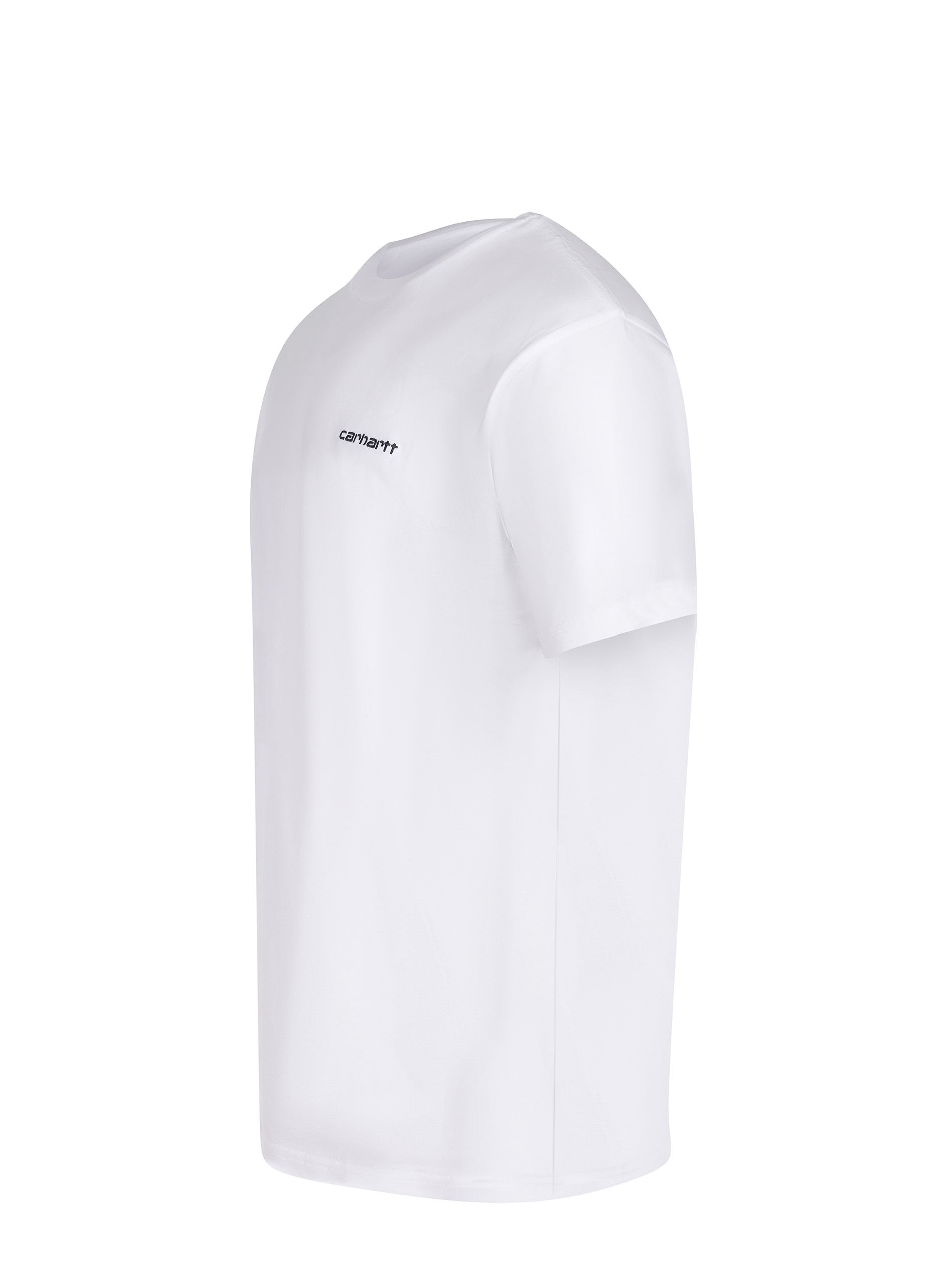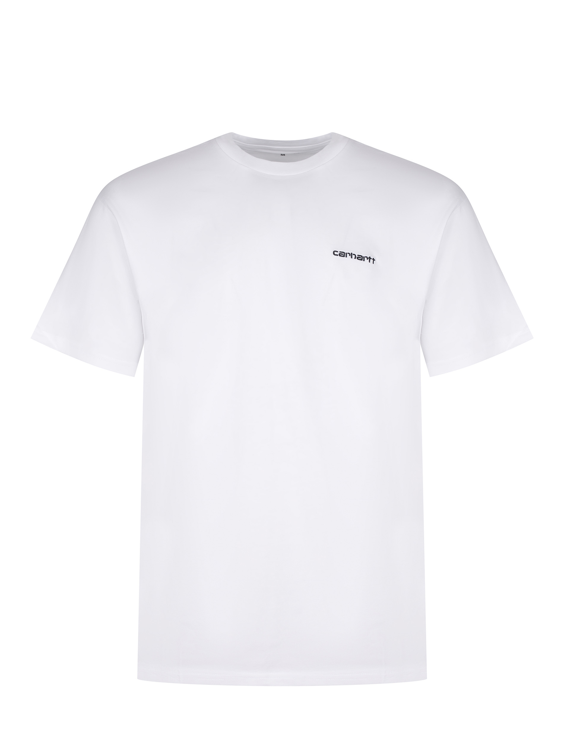 Carhartt T-shirt made of white cotton. Ribbed crew neck. Short sleeves. Contrasting logo lettering on the chest. 100% cotton