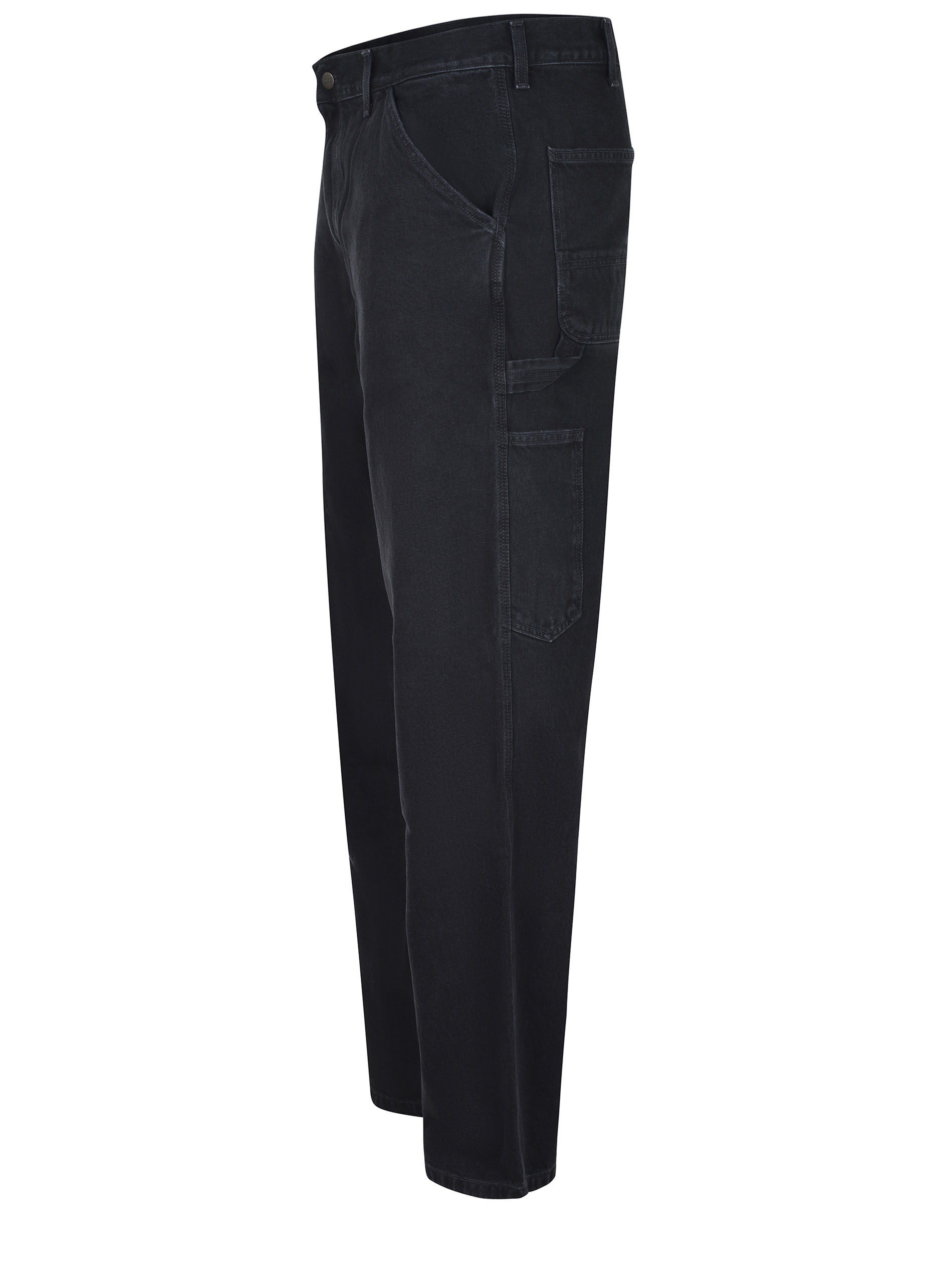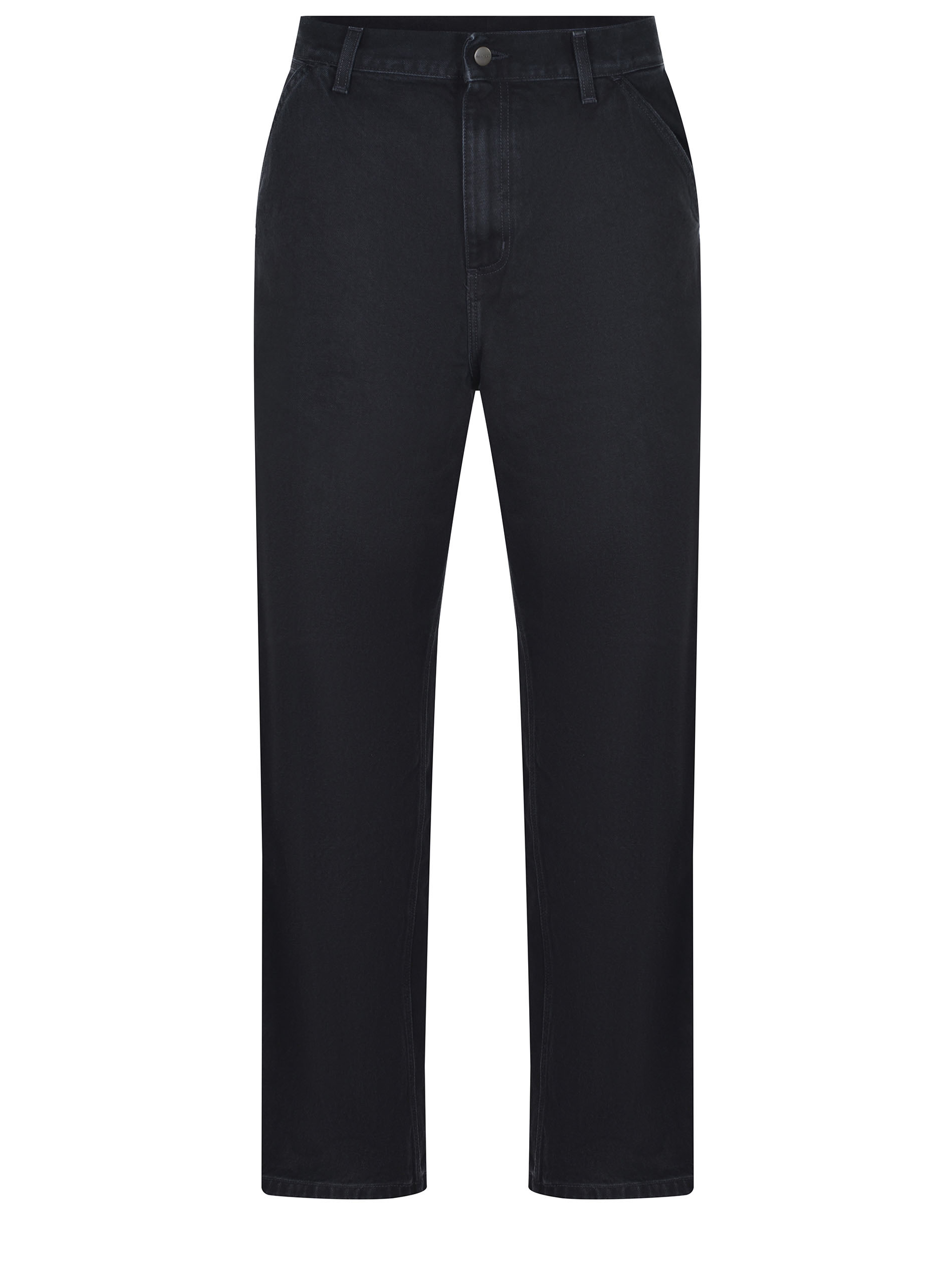 Carhartt jeans made of black denim. Carpenter style. Five pockets. Belt loops at the waist. Regular fit. Zip and button closure. Side pockets. Back pockets. Embroidered logo patch on the back pocket in contrast. 100% cotton.