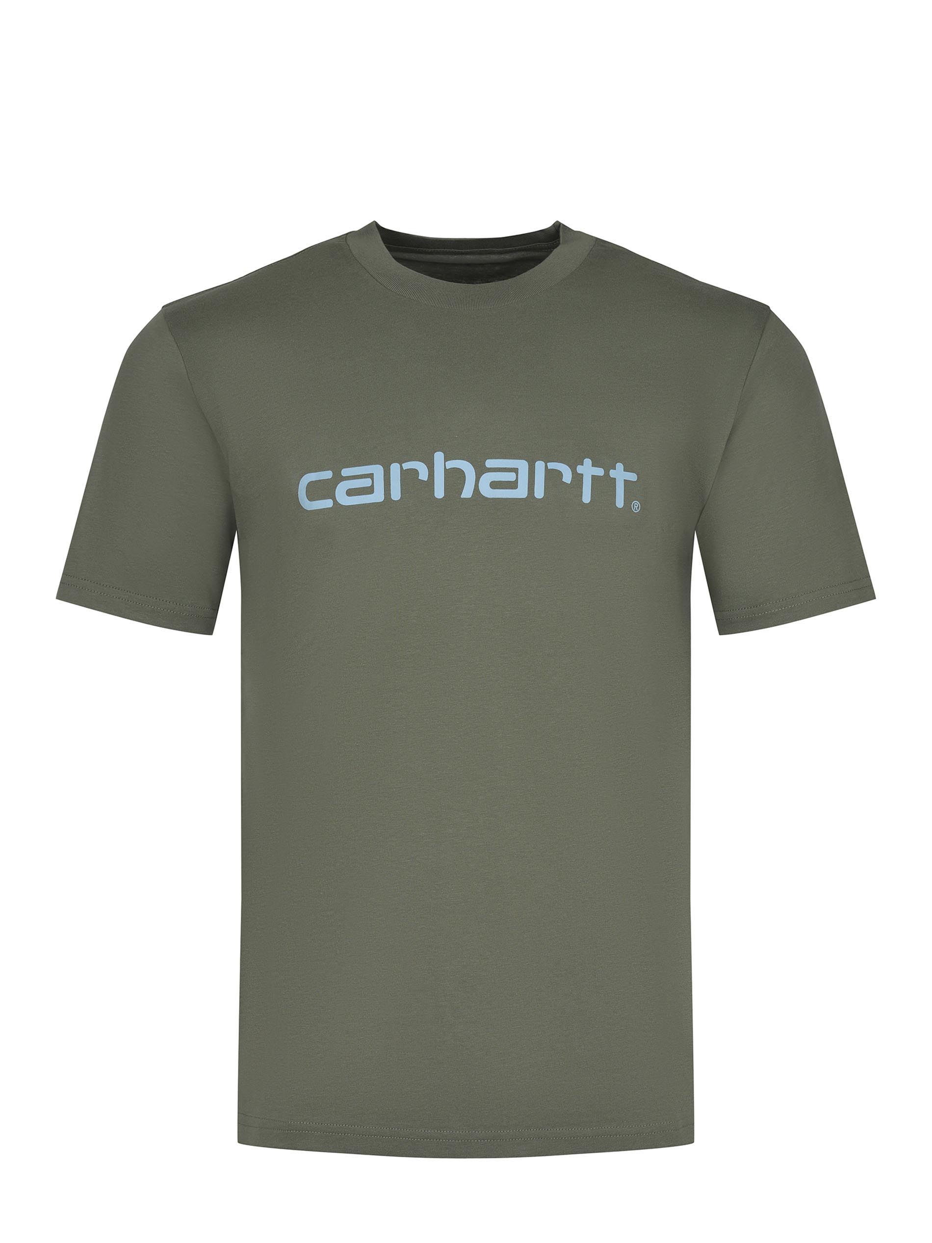 Carhartt T-shirt made of cotton in military green.Ribbed crew neck.Short sleeves.Contrasting logo lettering printed on the chest.100% cotton