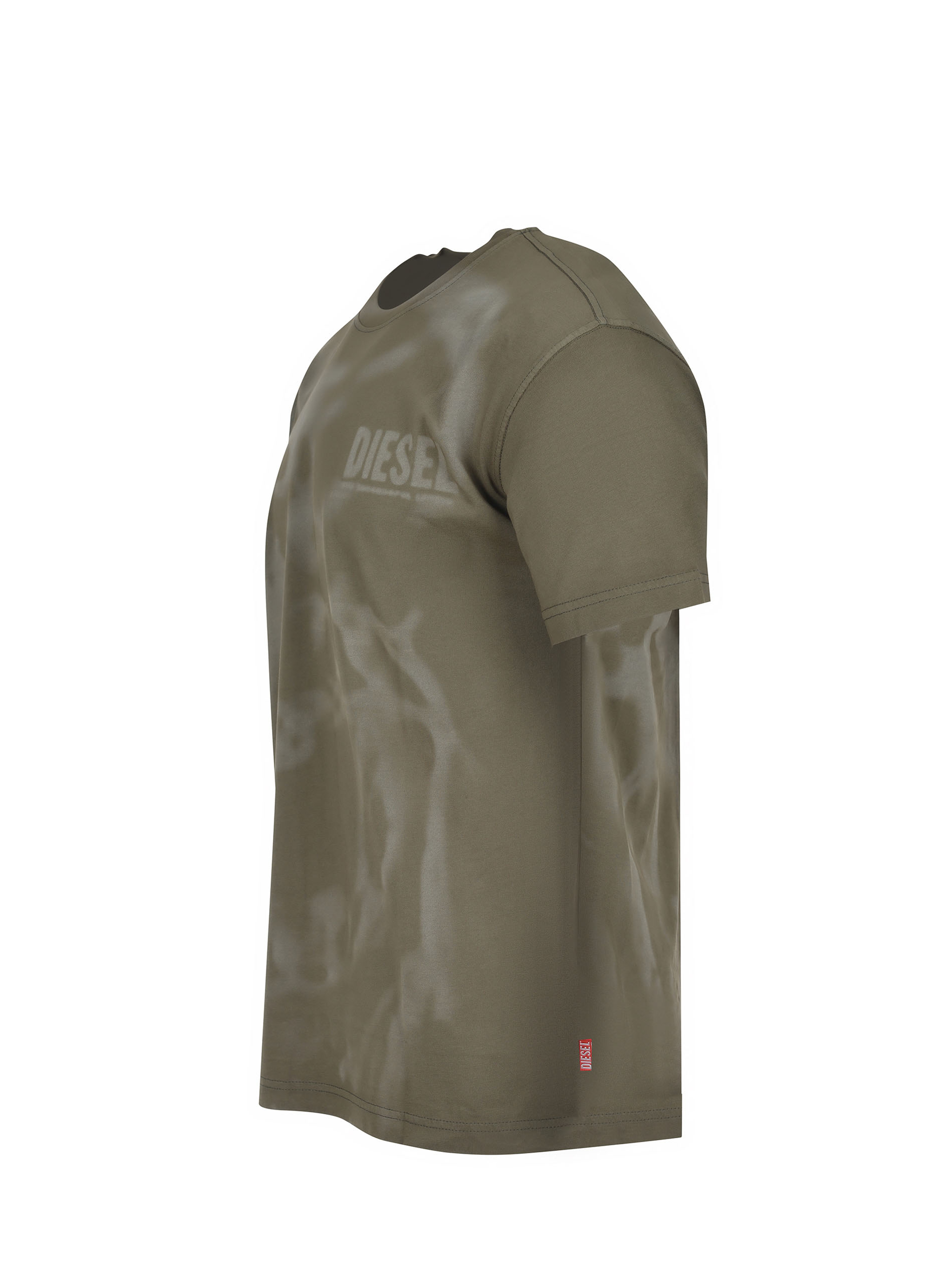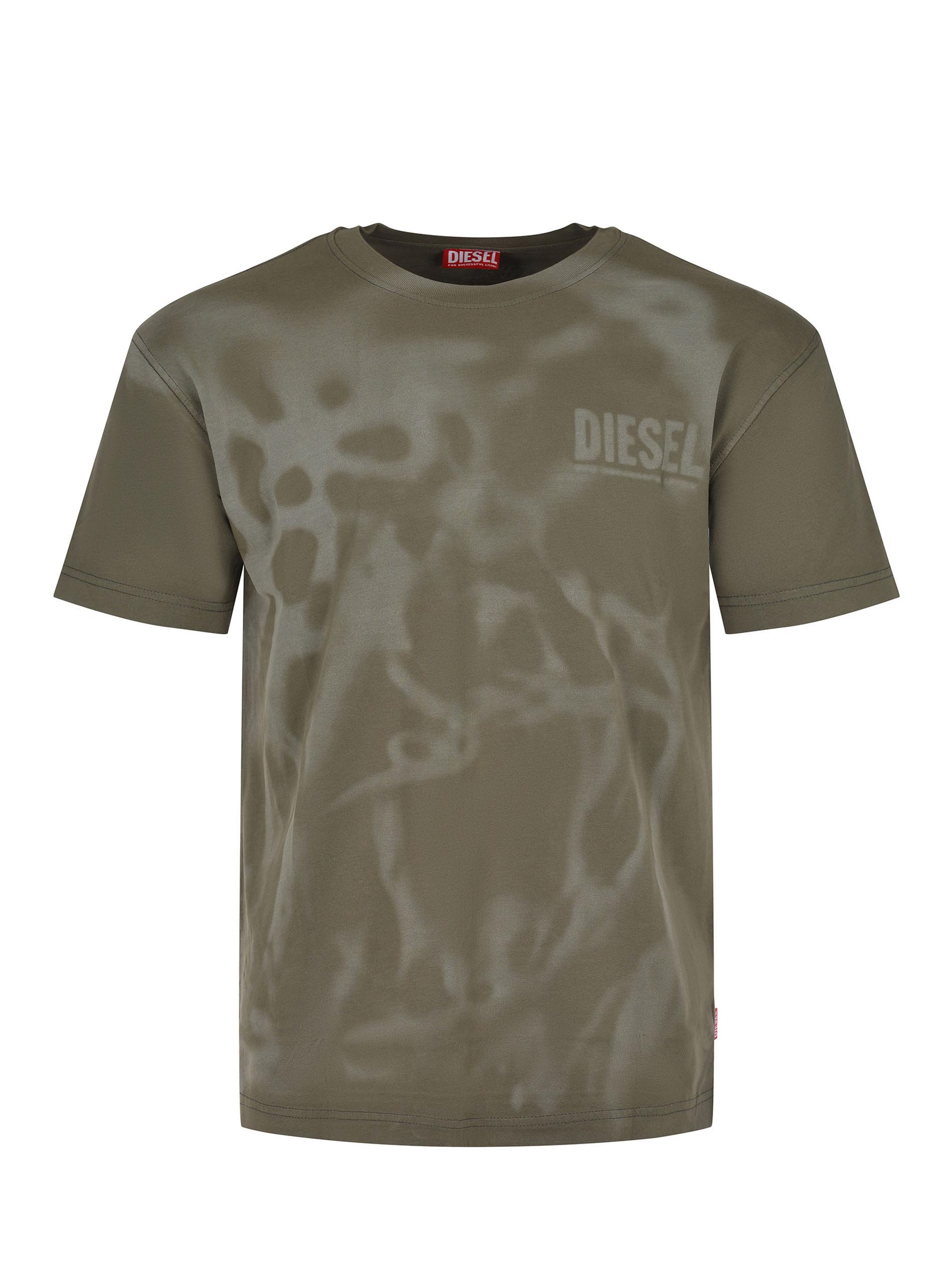 Diesel T-shirt made of khaki-colored cotton.Washed effect.Ribbed crew neck.Short sleeves.Contrasting logo lettering on the chest.100% cotton