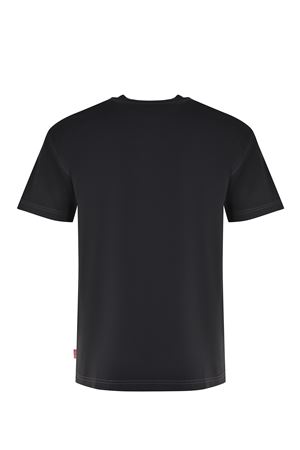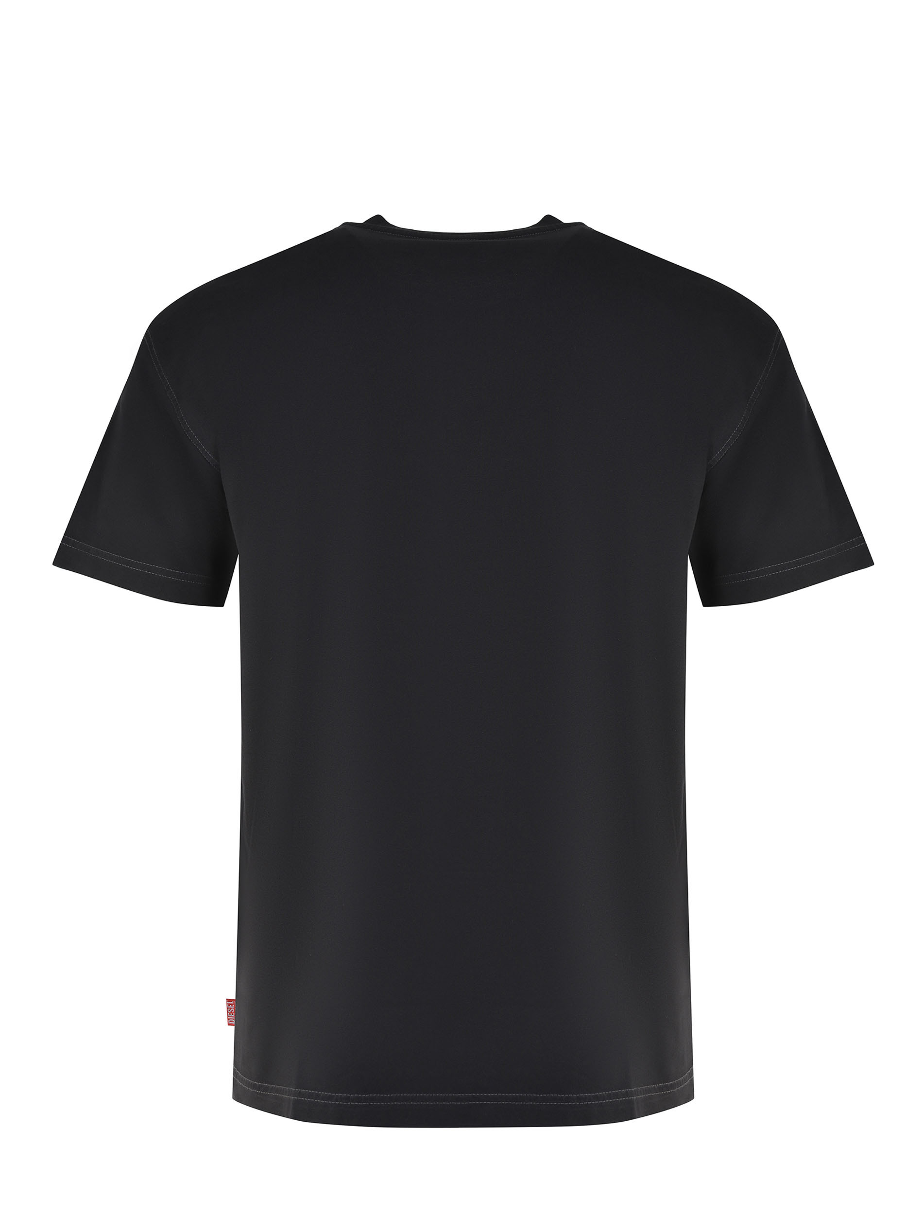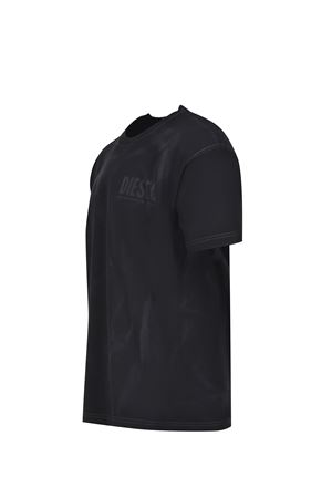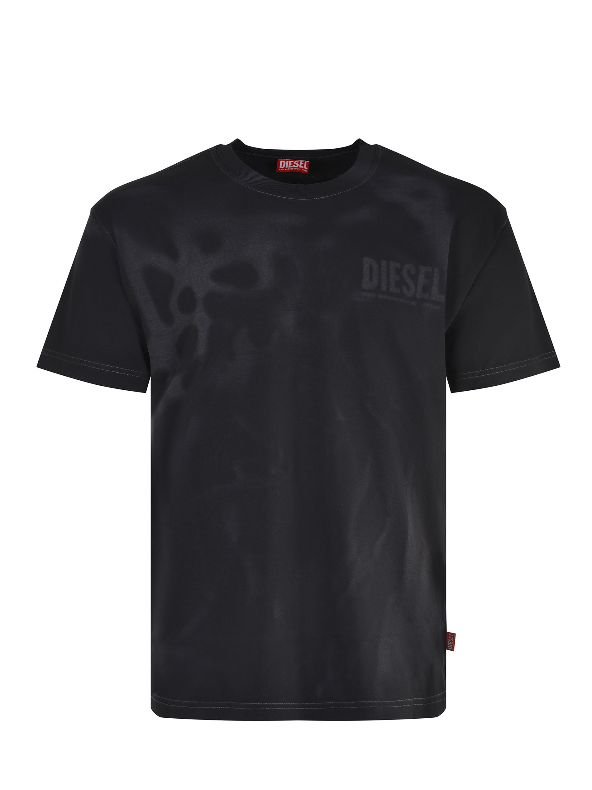 Diesel T-shirt made of black cotton. Washed effect. Ribbed crew neck. Short sleeves. Contrast logo lettering on the chest. 100% cotton