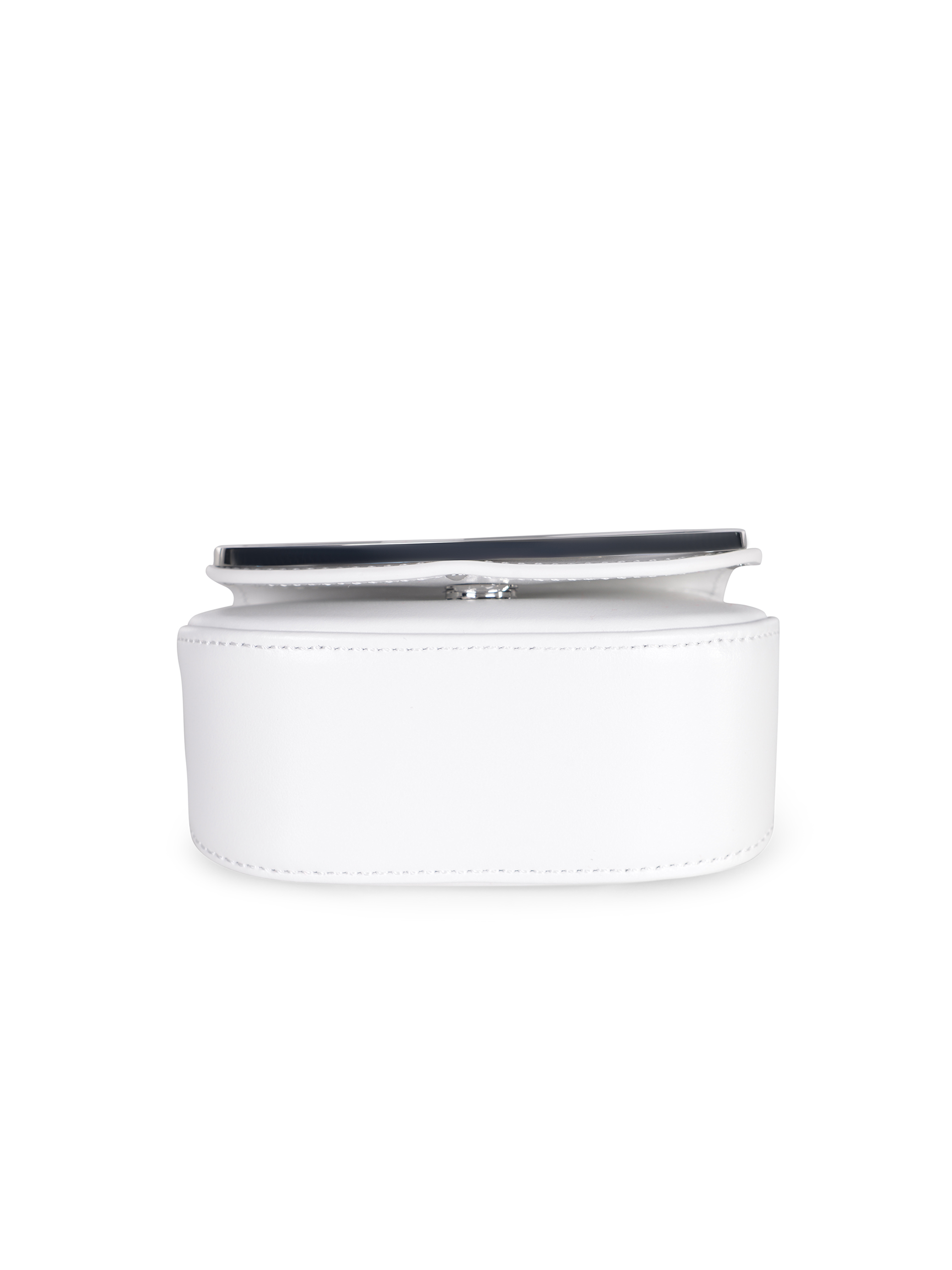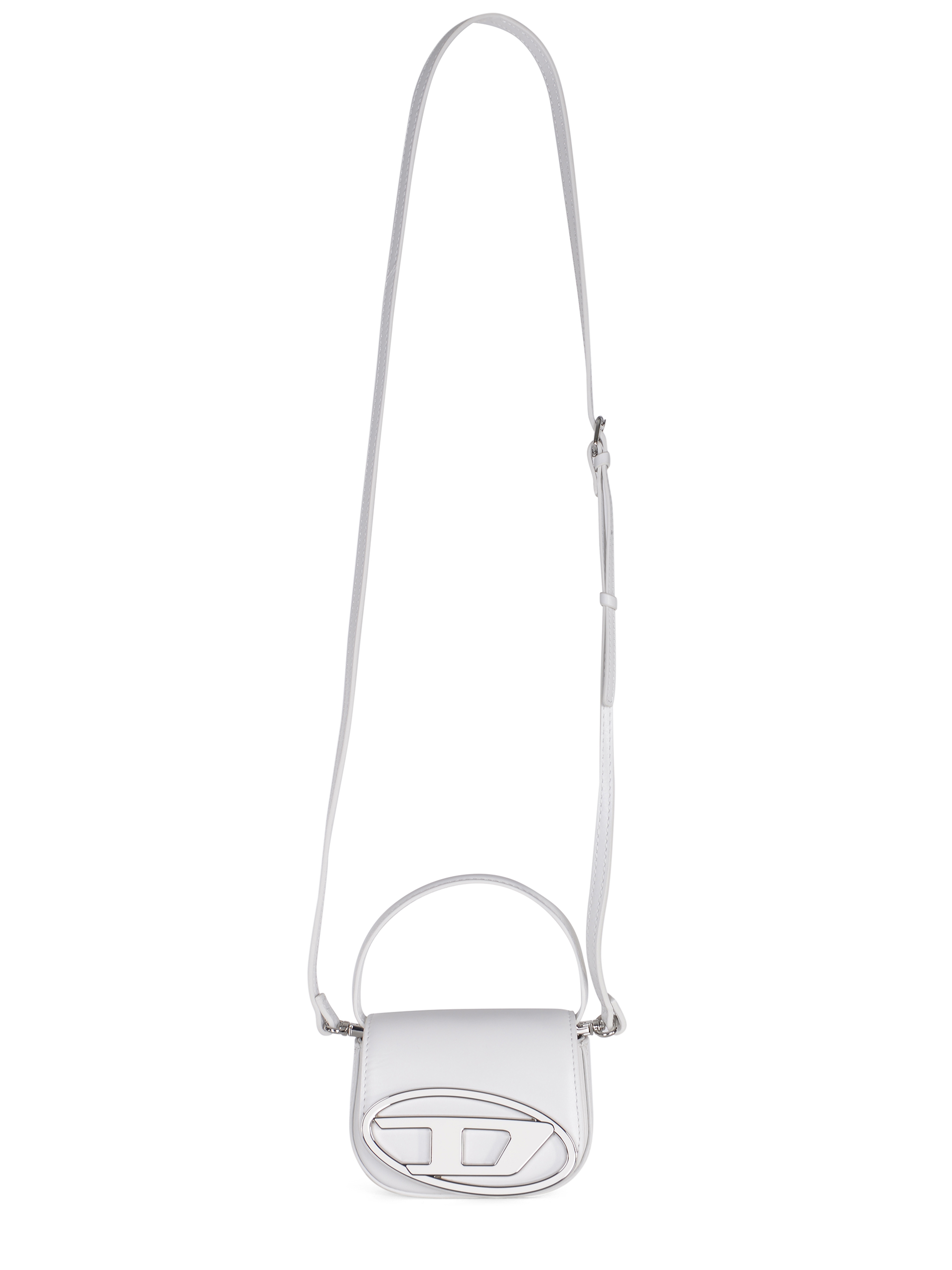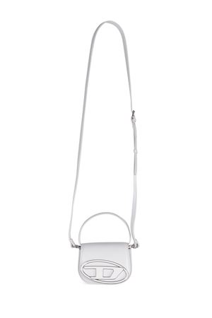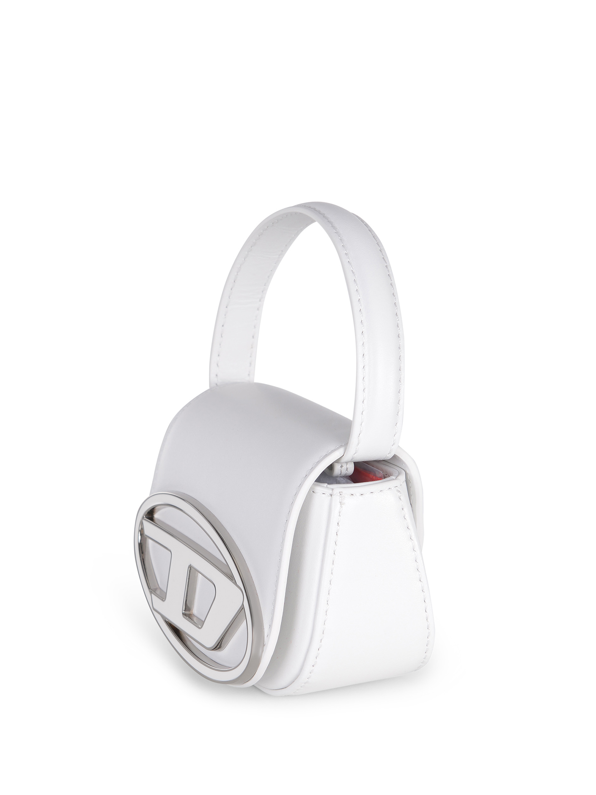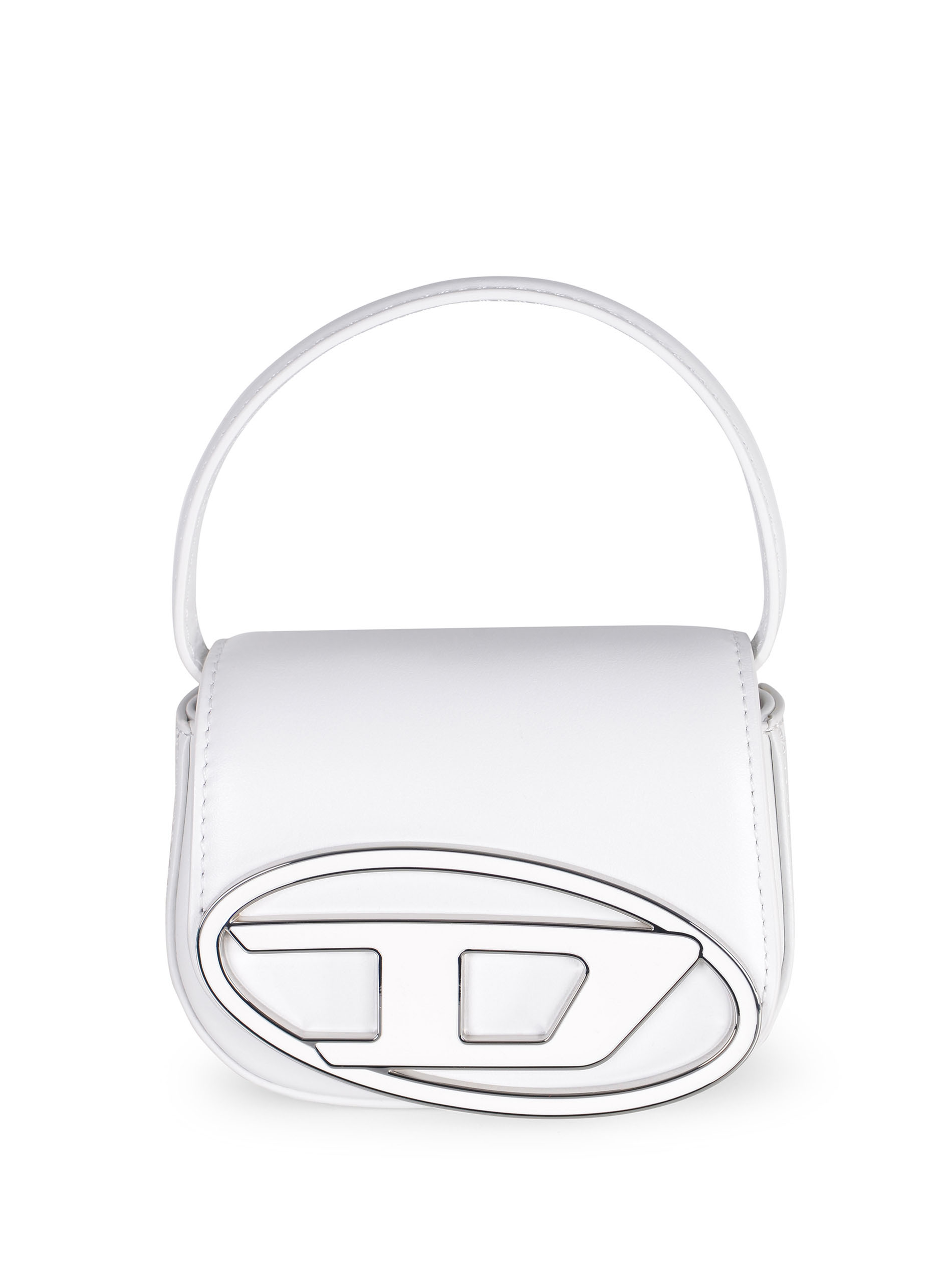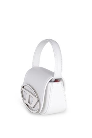 Diesel "1DR XS" bag made of white leather. Silver metal accents. Top handle.