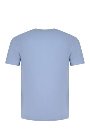 Dondup T-shirt made of sky blue cotton. Ribbed crew neck. Short sleeves. Contrasting logo lettering printed on the chest. 100% cotton Made in Italy