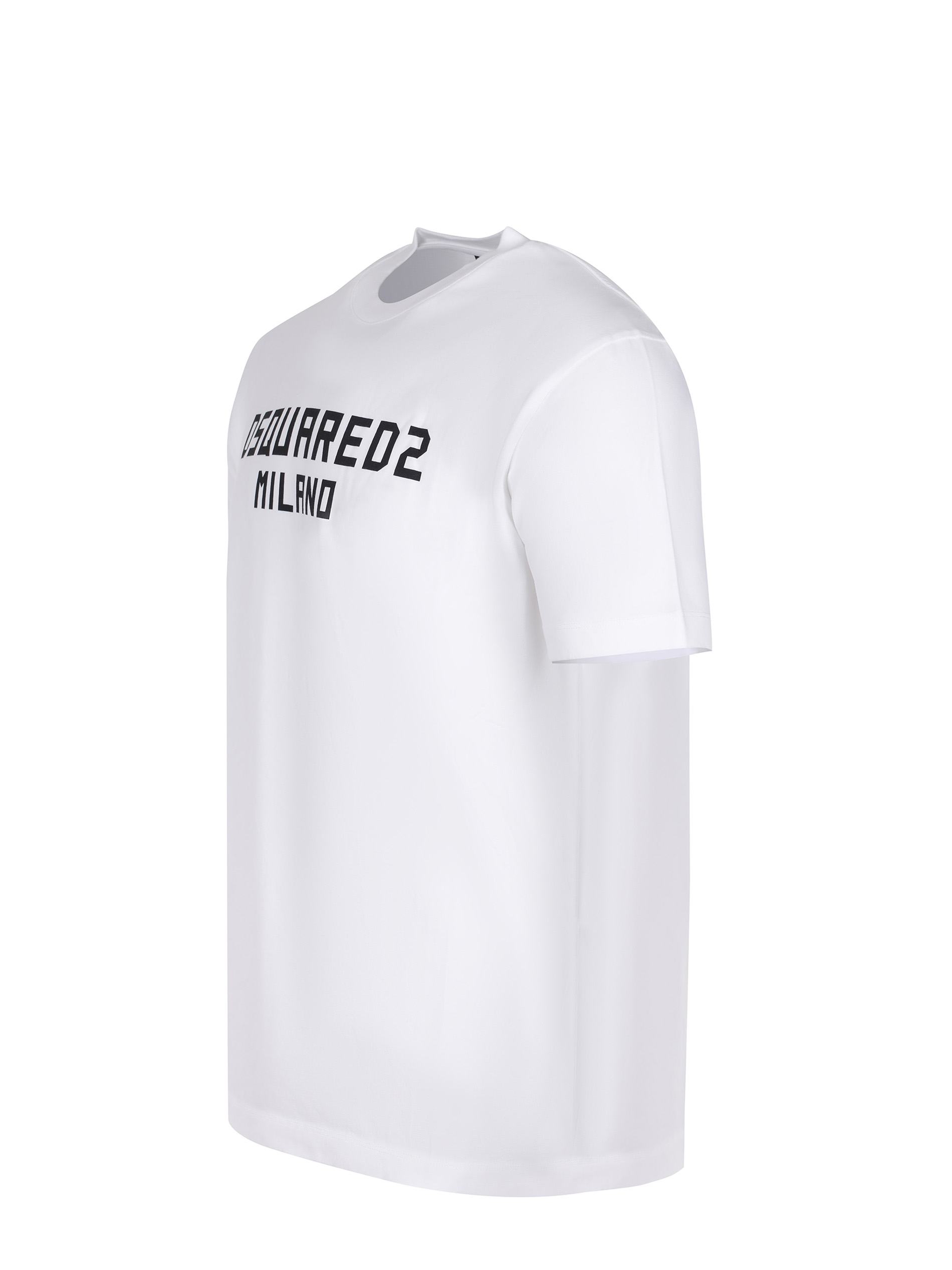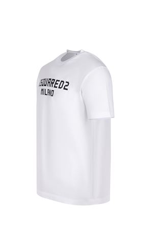 Dsquared2 T-shirt made of white cotton. Ribbed crew neck. Short sleeves. Contrasting logo lettering on the chest. 100% cotton