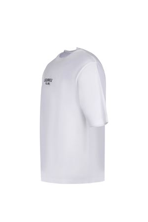 Dsquared2 T-shirt made of white cotton. Ribbed crew neck. Short sleeves. Contrasting logo lettering on the chest. 100% cotton