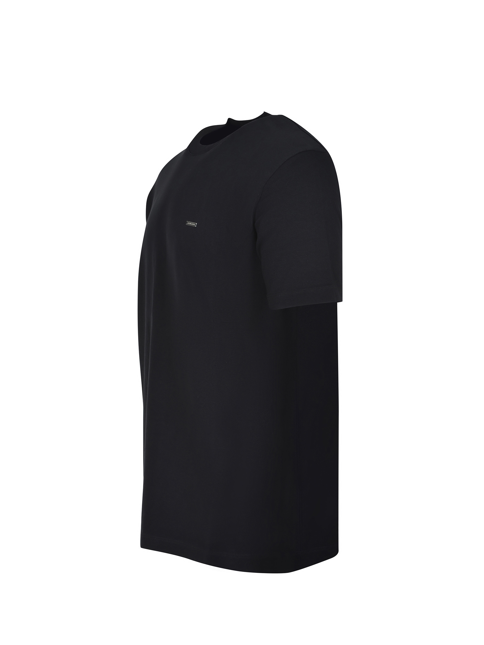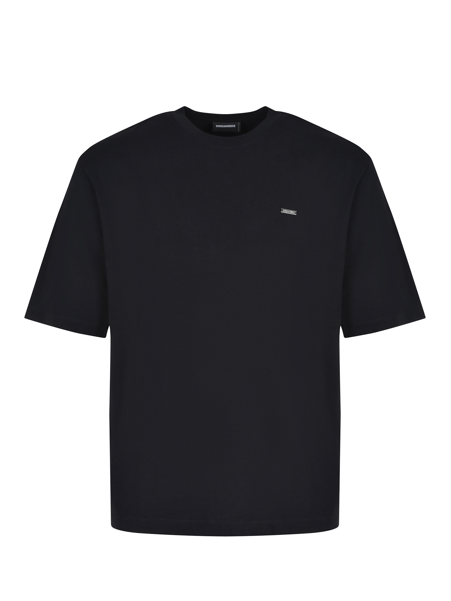 Dsquared2 T-shirt made of black cotton. Short sleeves. Ribbed crew neck. Silver logo plate applied on the chest. 100% cotton