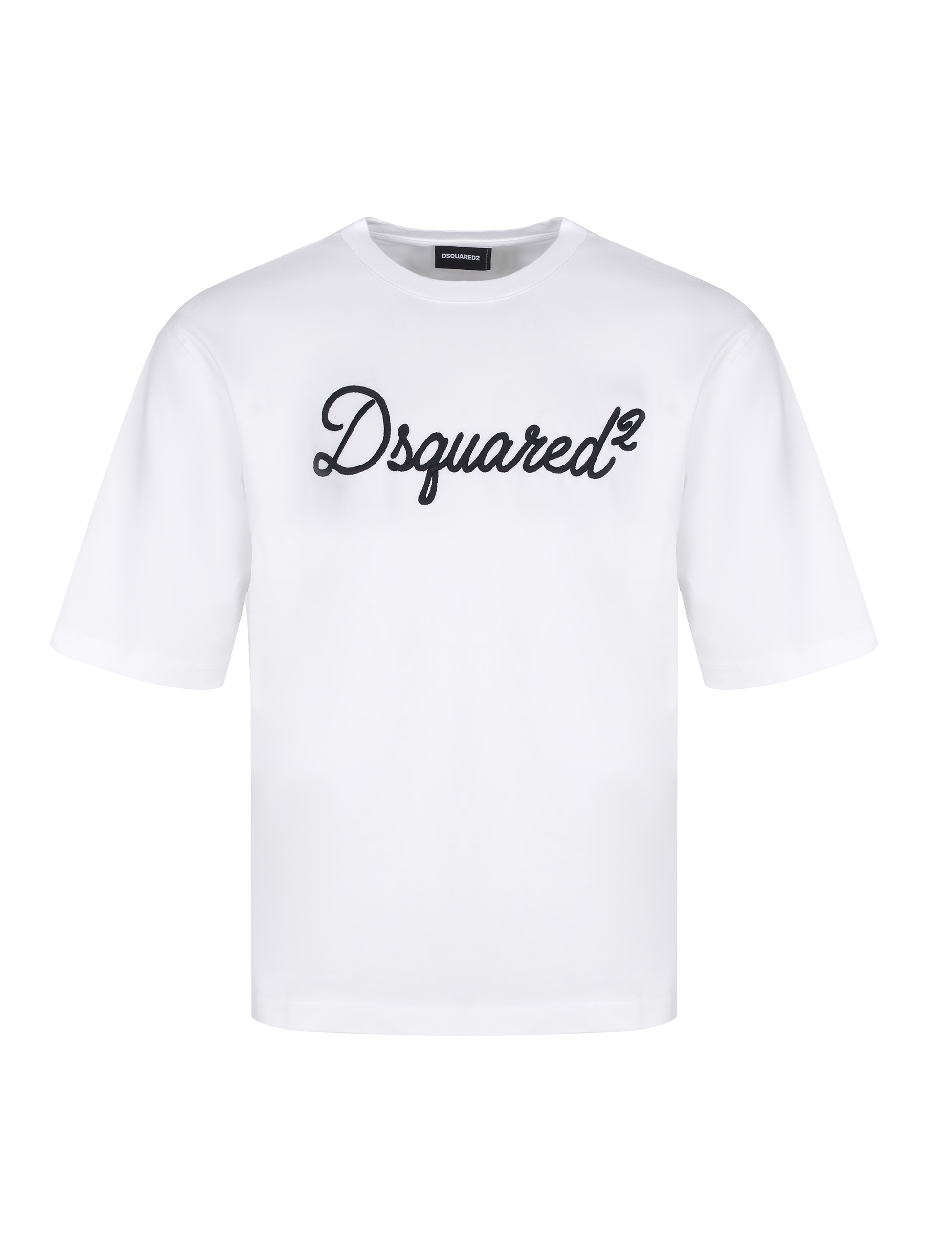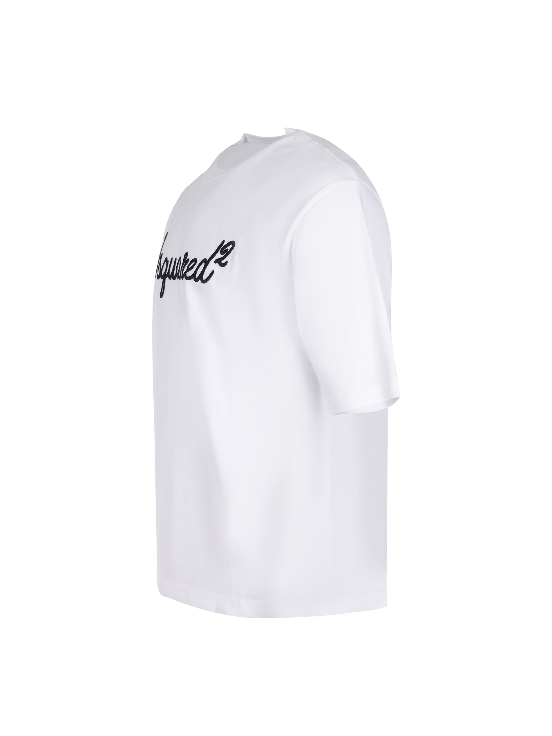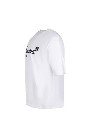 Dsquared2 T-shirt made of white cotton. Ribbed crew neck. Short sleeves. Contrasting embroidered logo lettering on the chest. 100% cotton