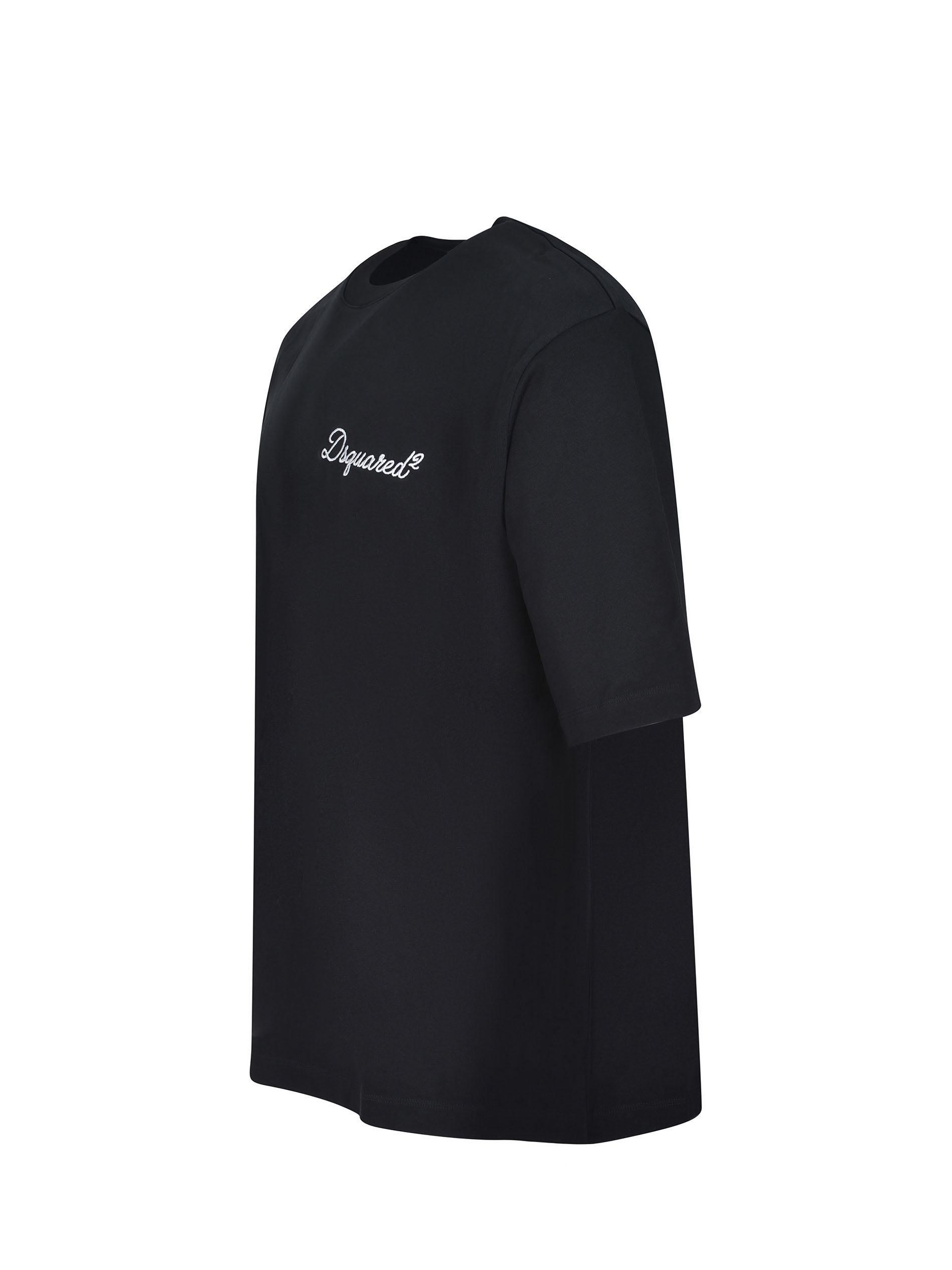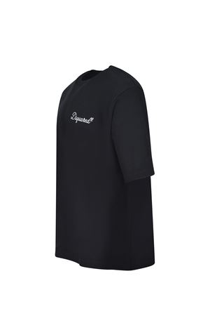 Dsquared2 T-shirt made of black cotton. Ribbed crew neck. Short sleeves. Embroidered logo lettering on the chest in contrasting color. 100% cotton