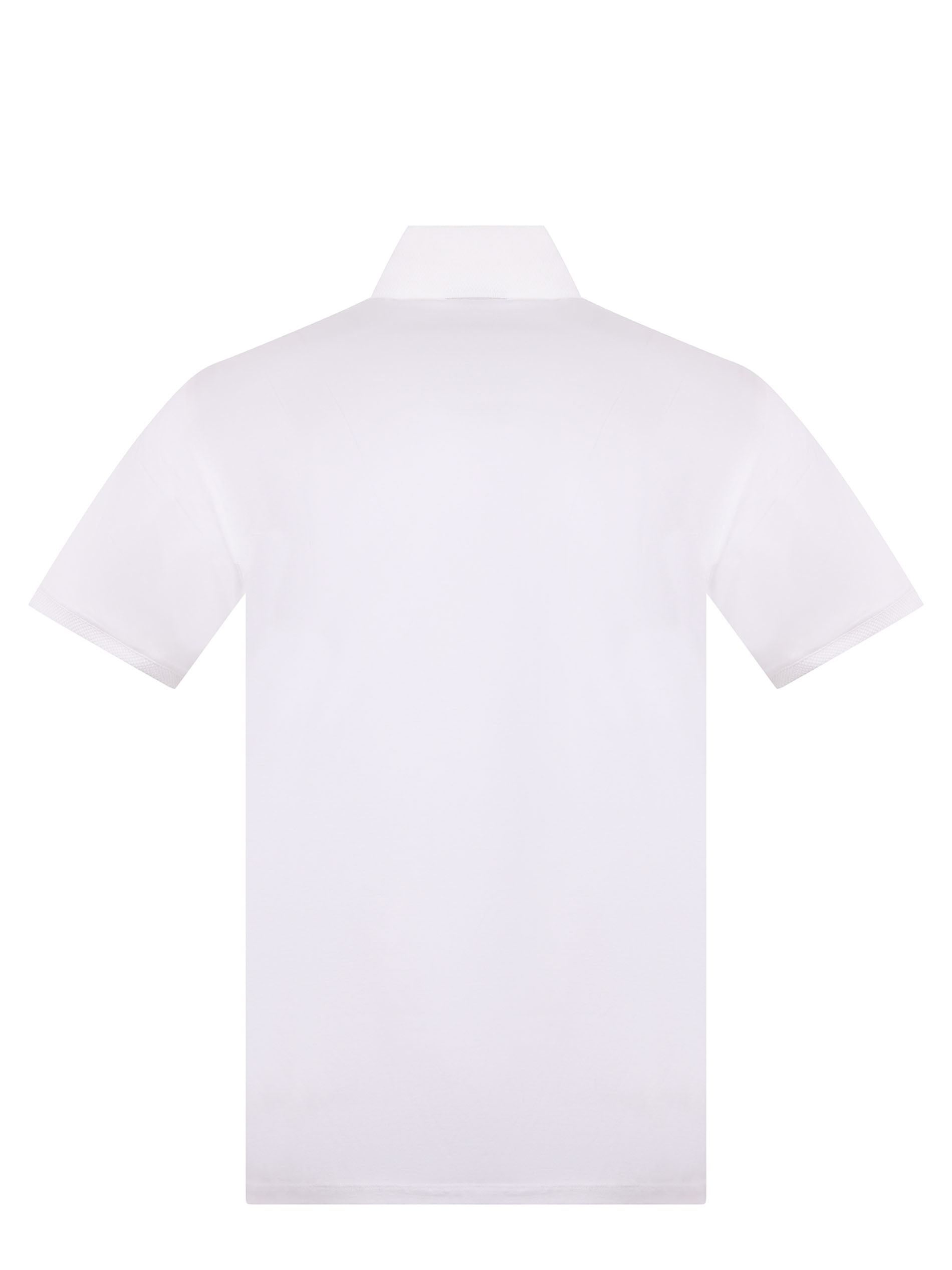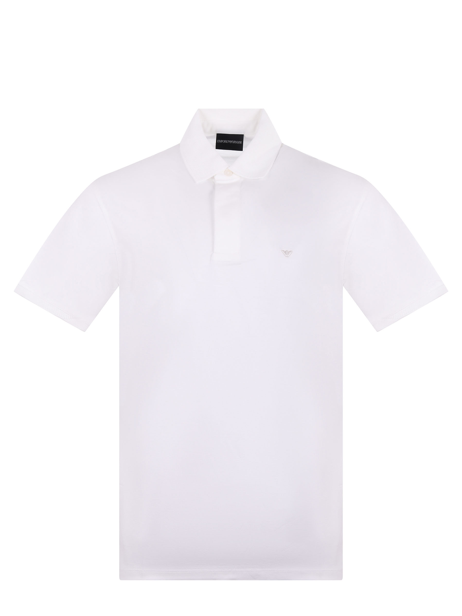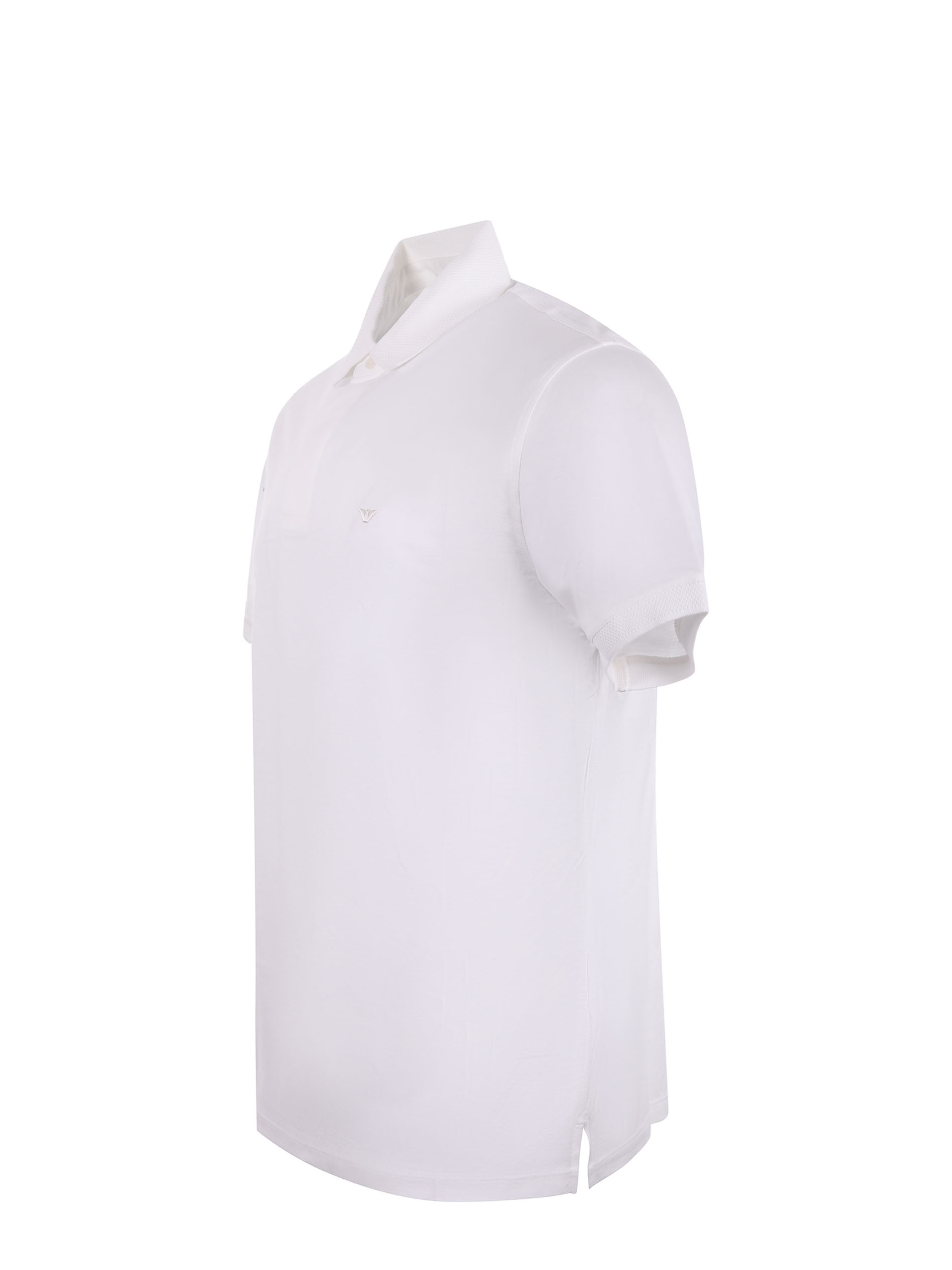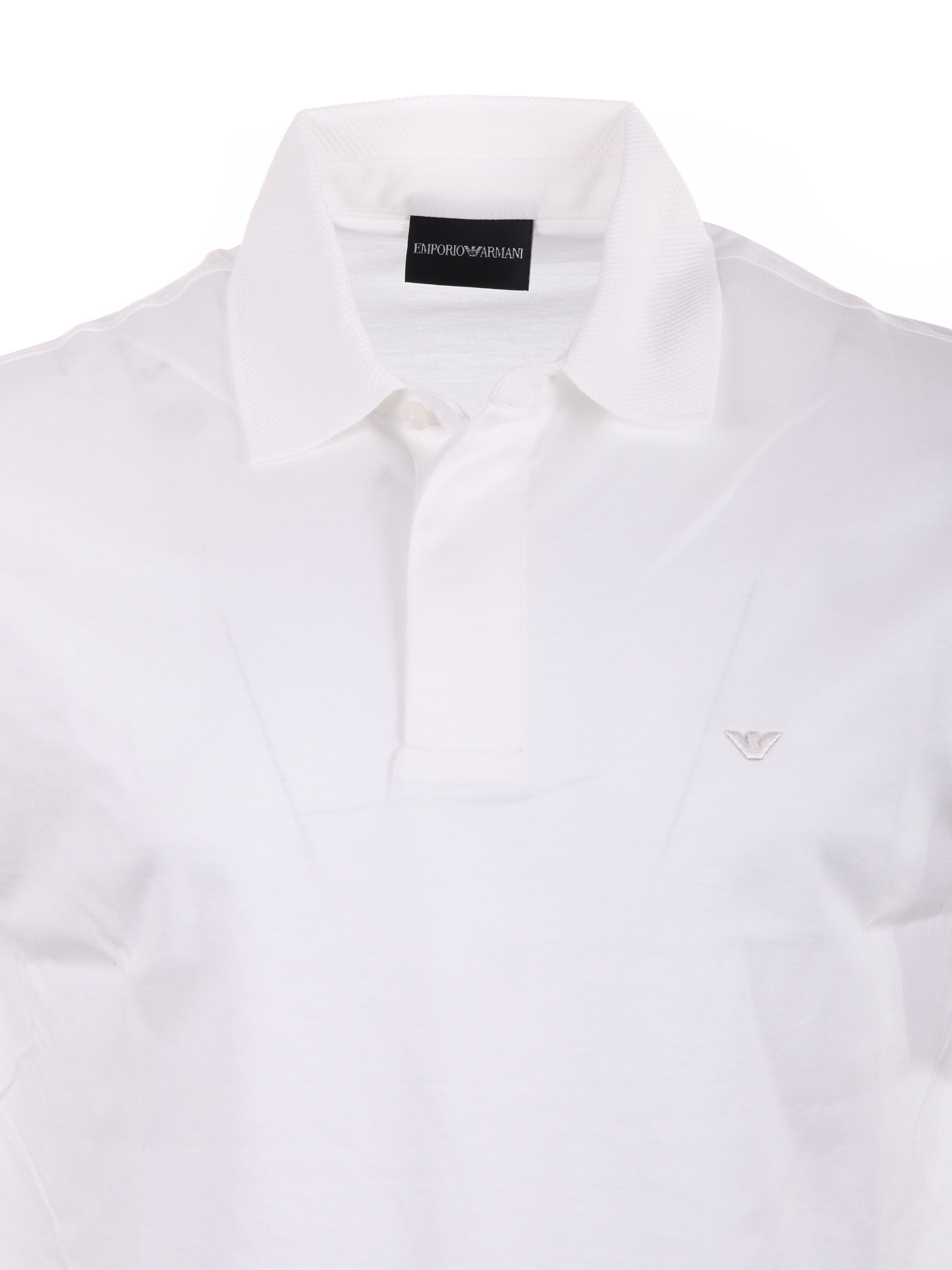 Emporio Armani polo shirt in milky white lyocell and cotton. Classic macro pique collar. Buttons. Side slits at the bottom. Short sleeves with macro pique details.
