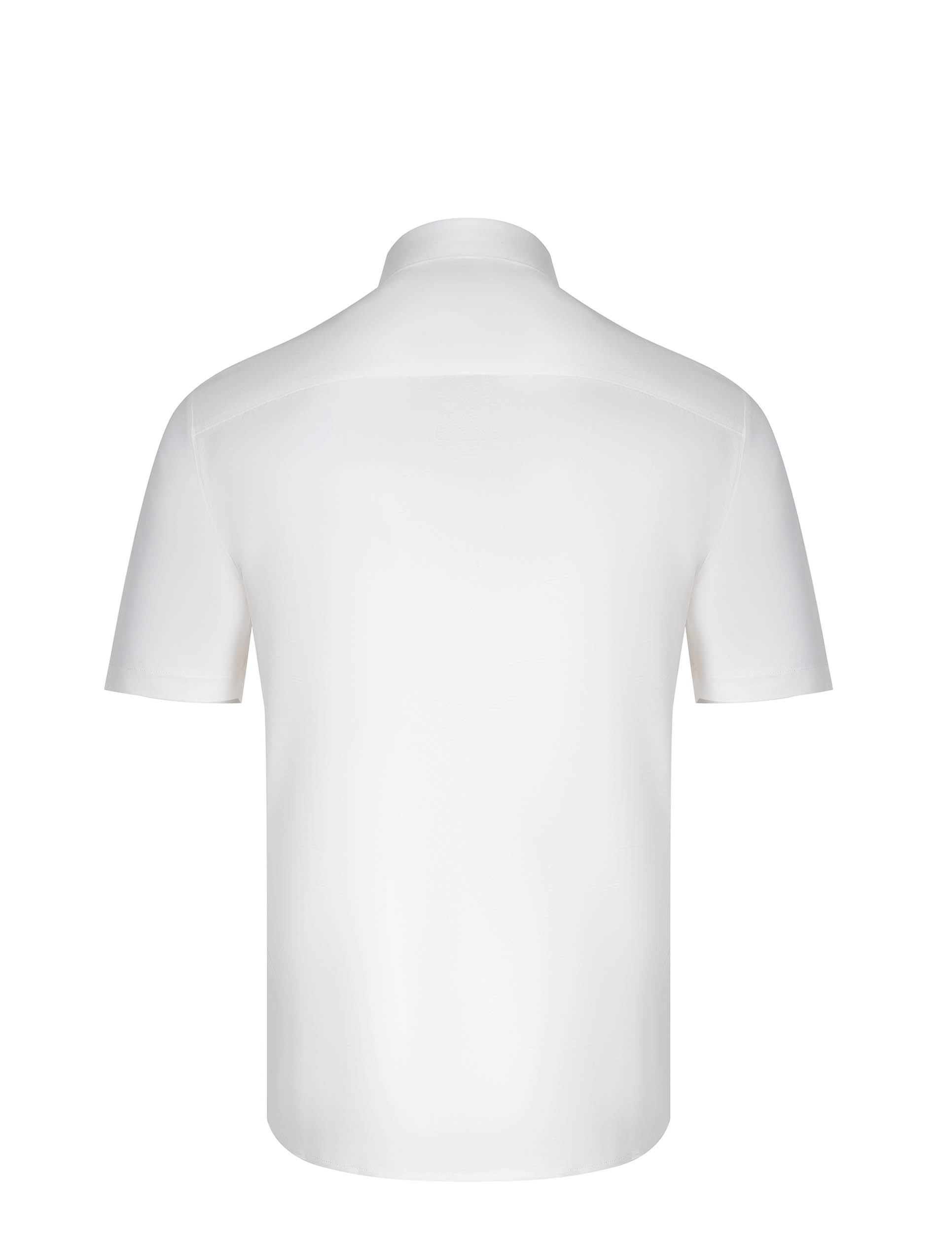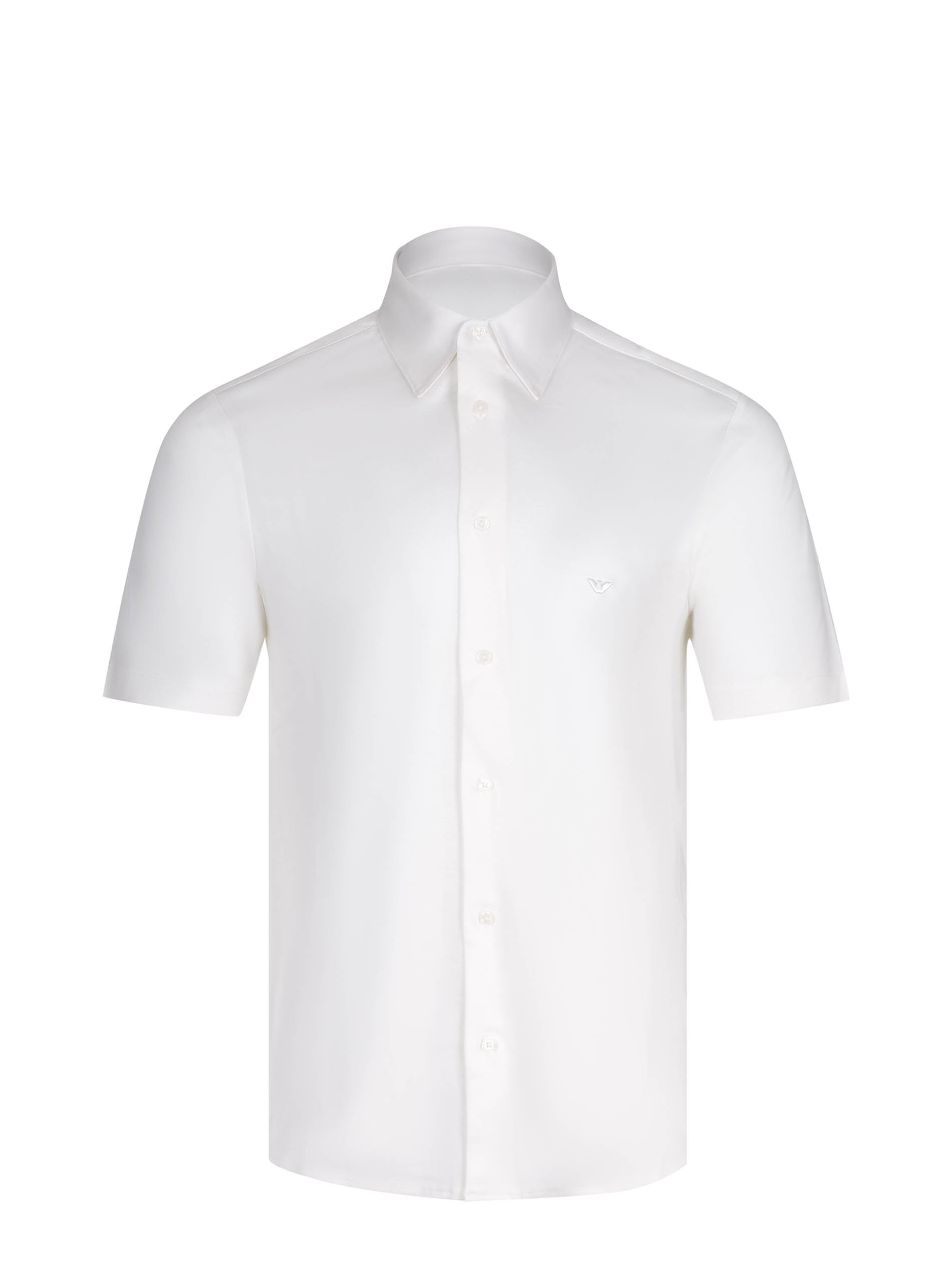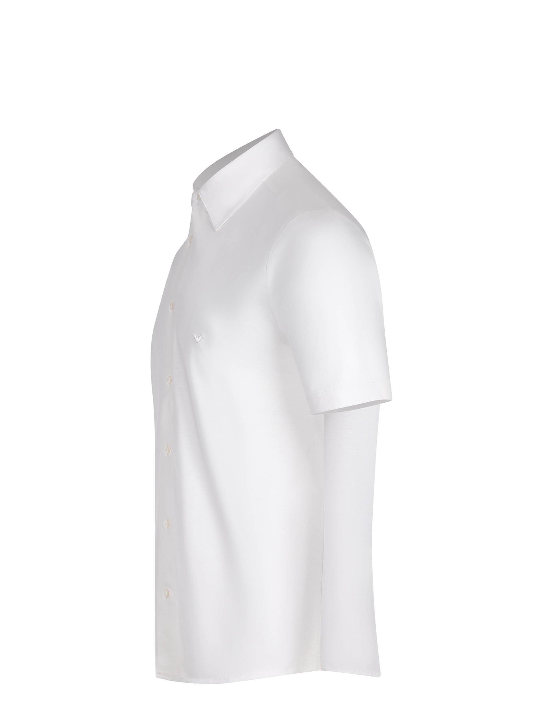 Emporio Armani shirt made from a white cotton blend. Classic collar. Front button closure. Short sleeves. Tone-on-tone embroidered logo monogram on the chest. 70% lyocell 30% cotton