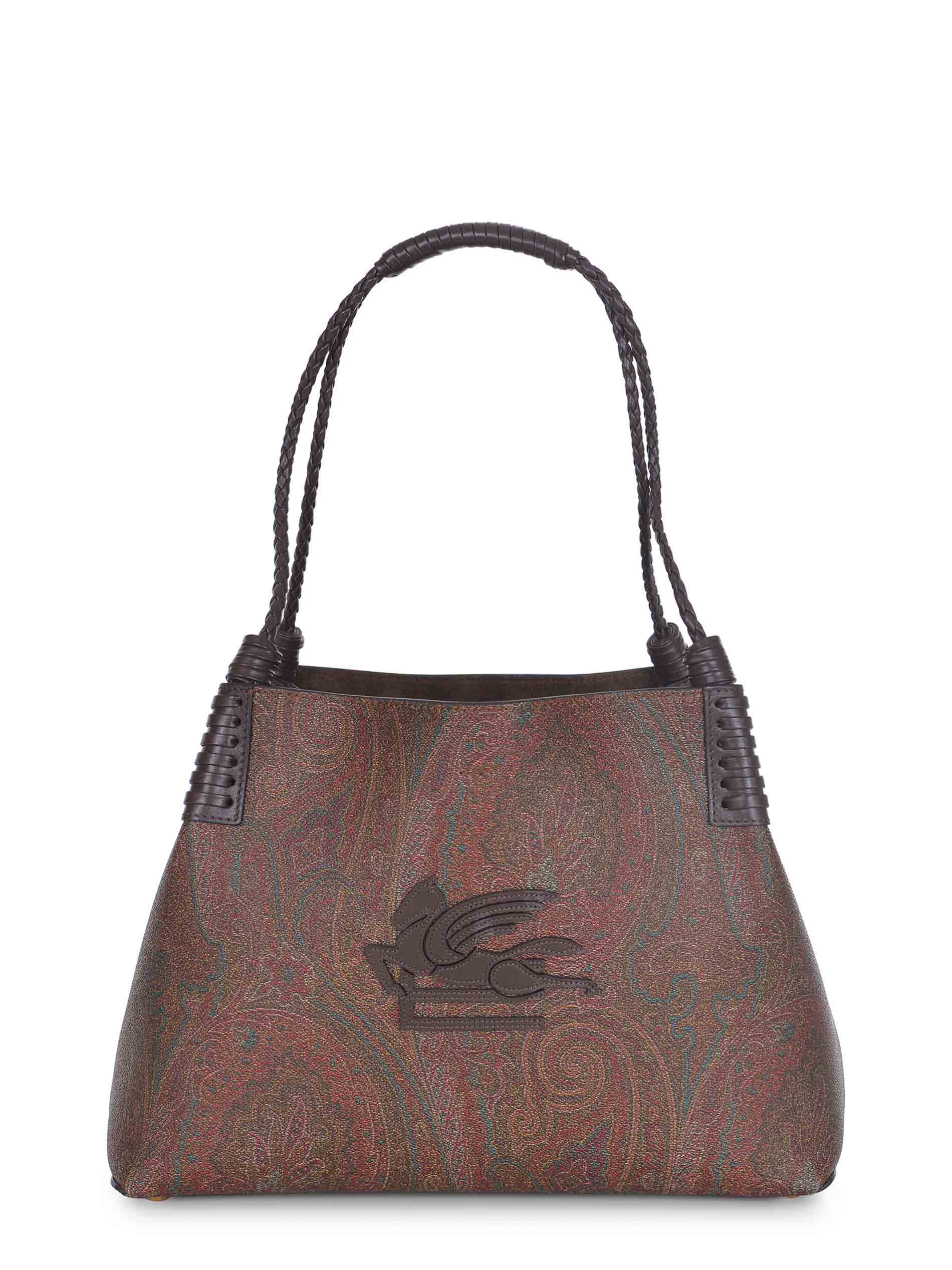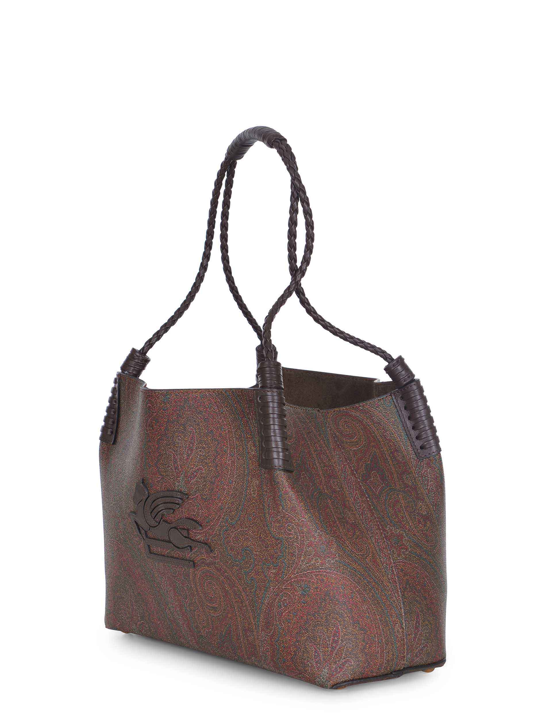 Shopping bag "Libra" made of paisley jacquard coated leather with a matte grain and lined in canvas. Interior in brown suede leather.
