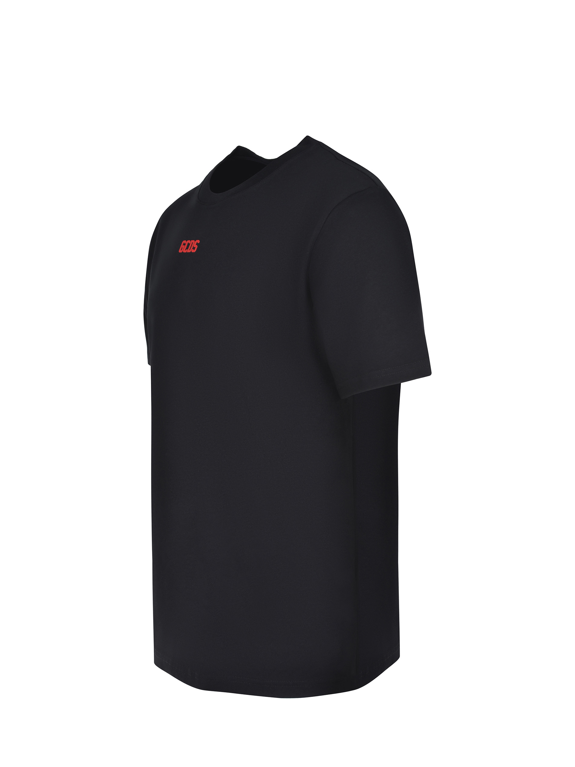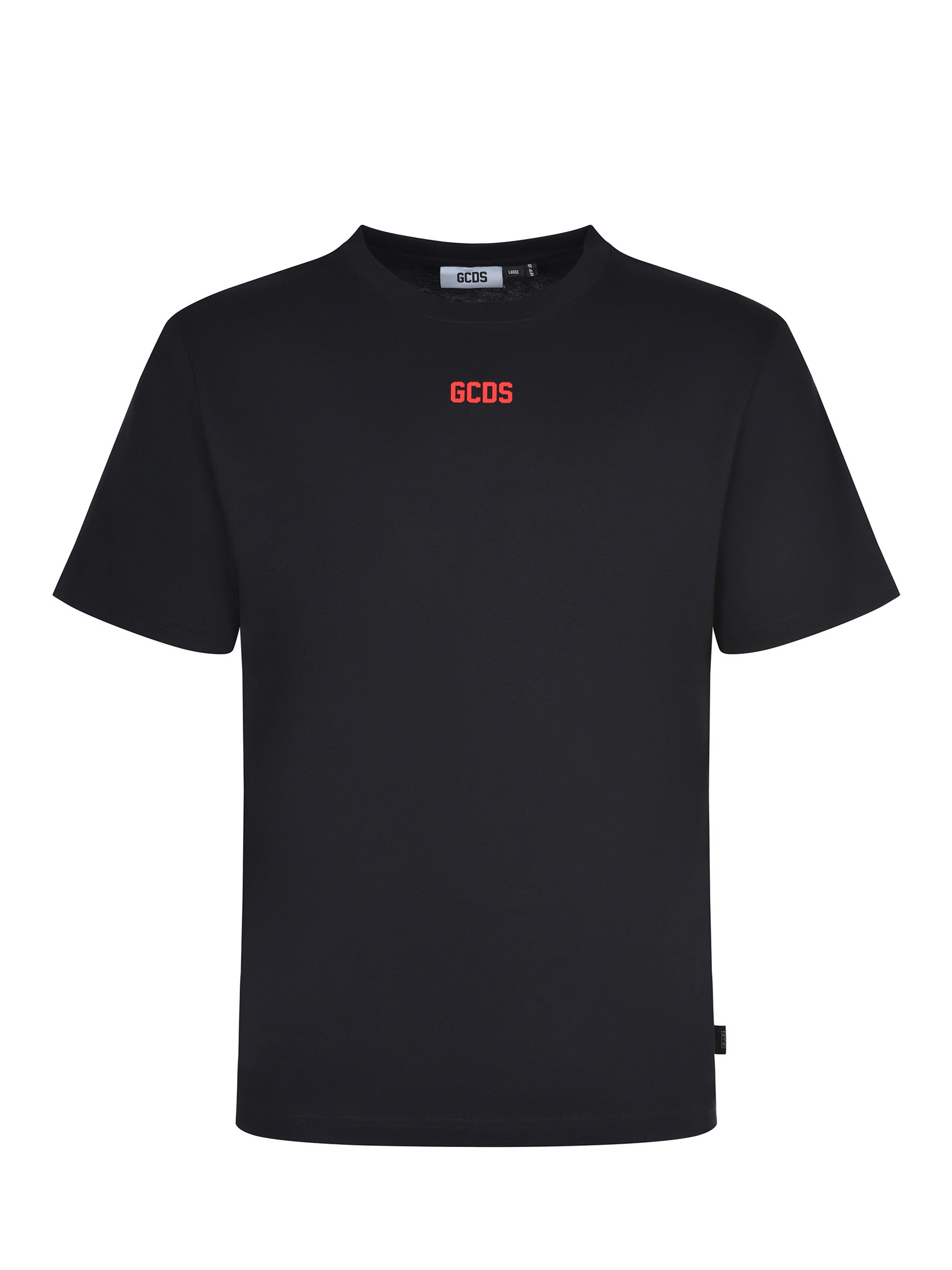 GCDS T-shirt made of black cotton. Ribbed crew neck. Short sleeves. Contrast logo lettering on the chest. 100% cotton