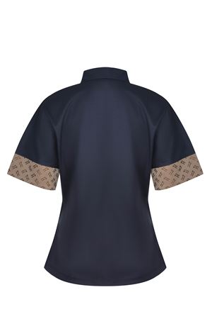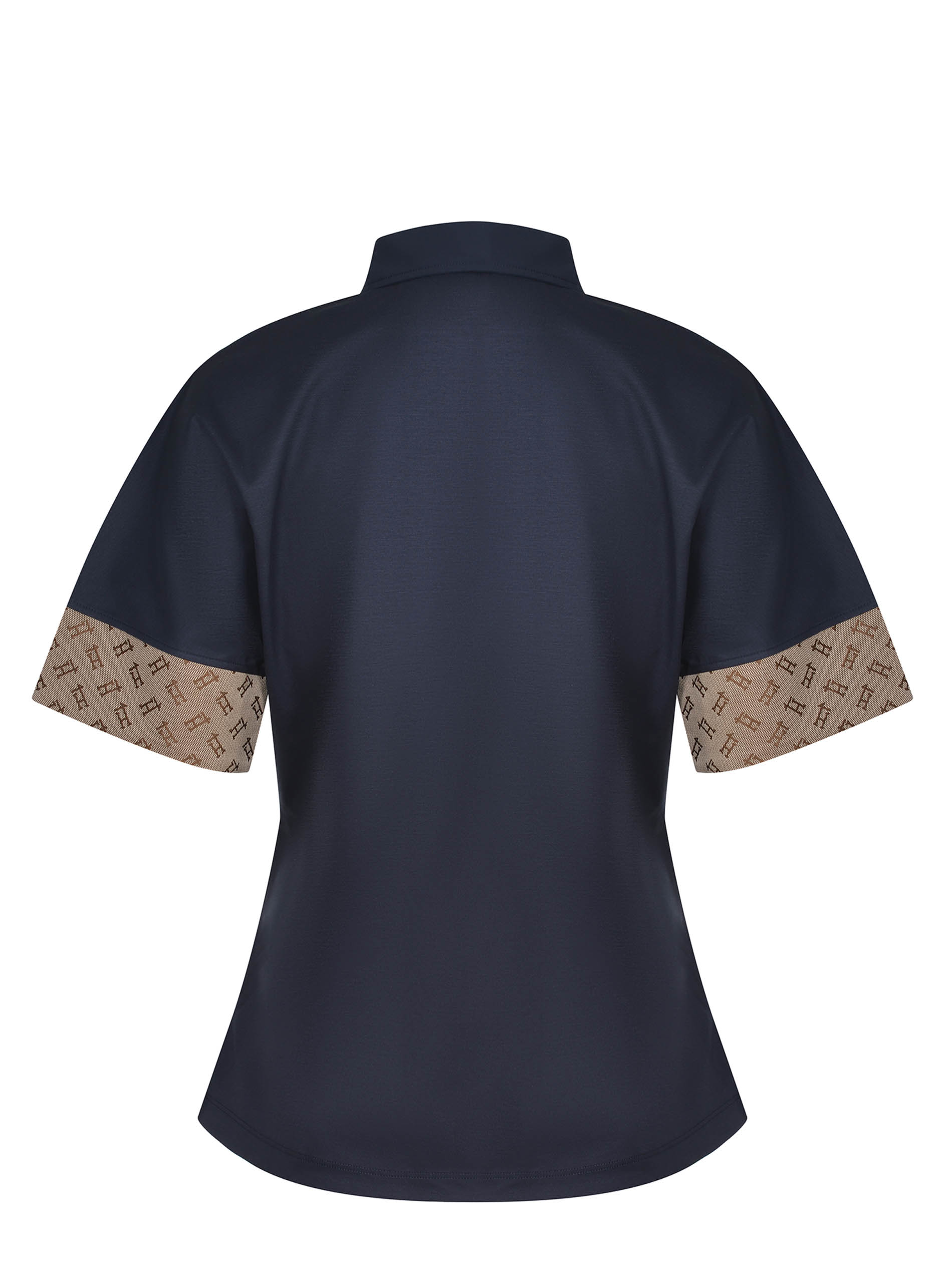 Short sleeves. Contrast logo details on the sleeves.