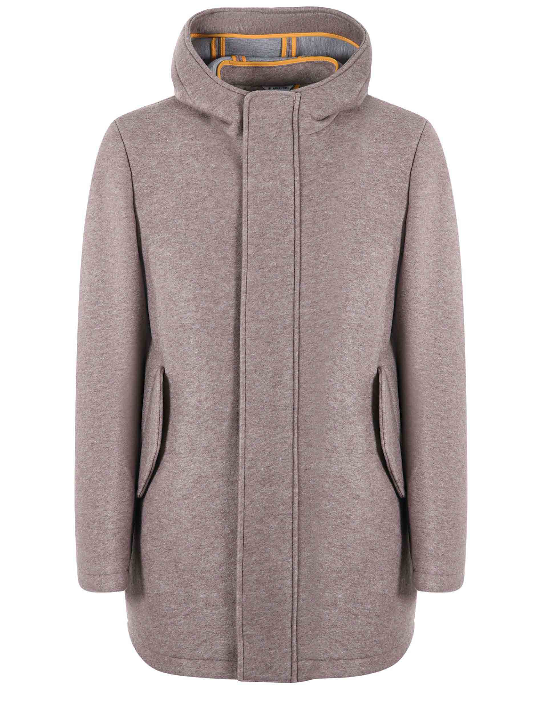 Manuel Ritz jacket in felt-effect wool cloth. Hood. Pockets with flap and snap button. Double slider zip and snap buttons. Internal pocket. Unlined with contrasting stitching.
