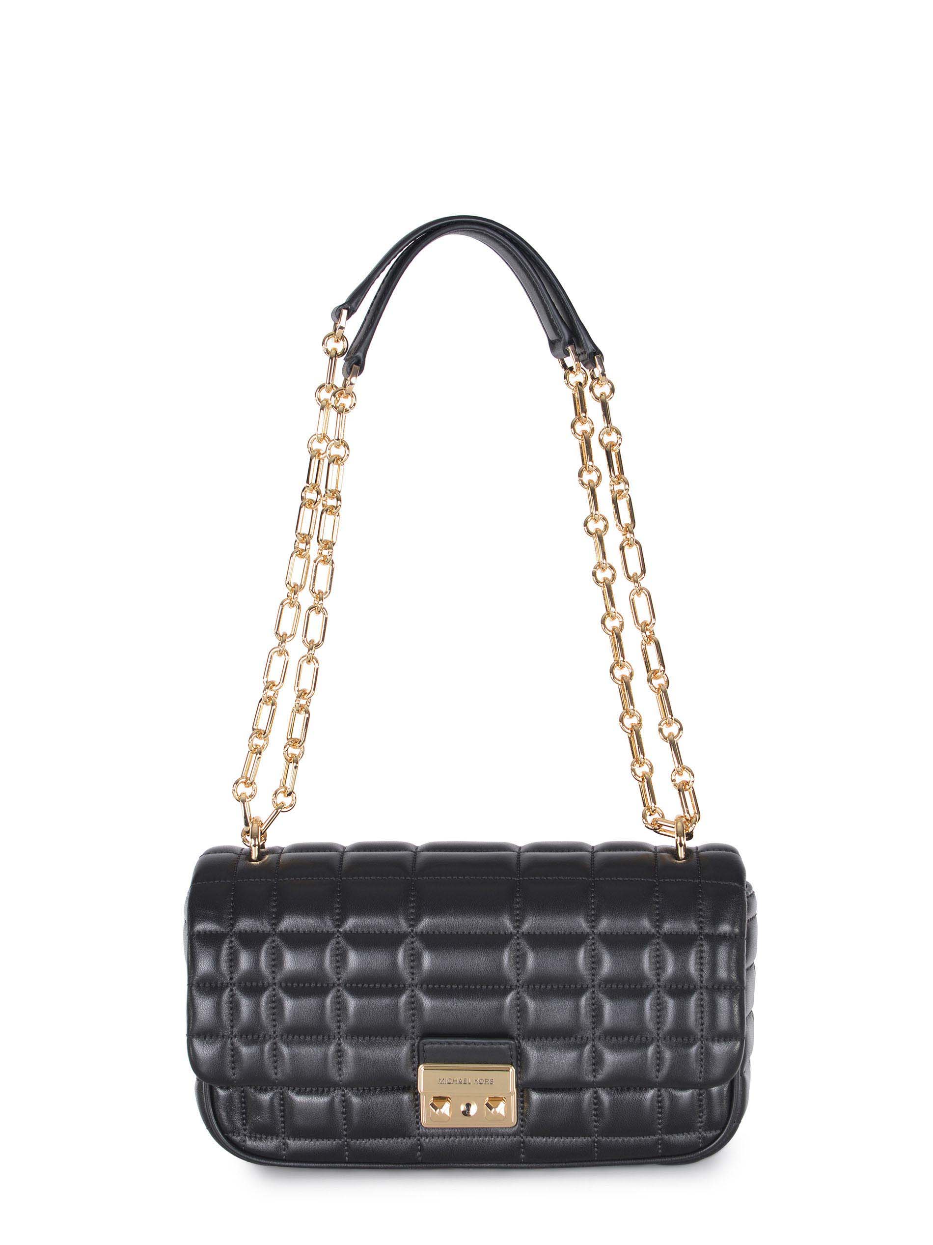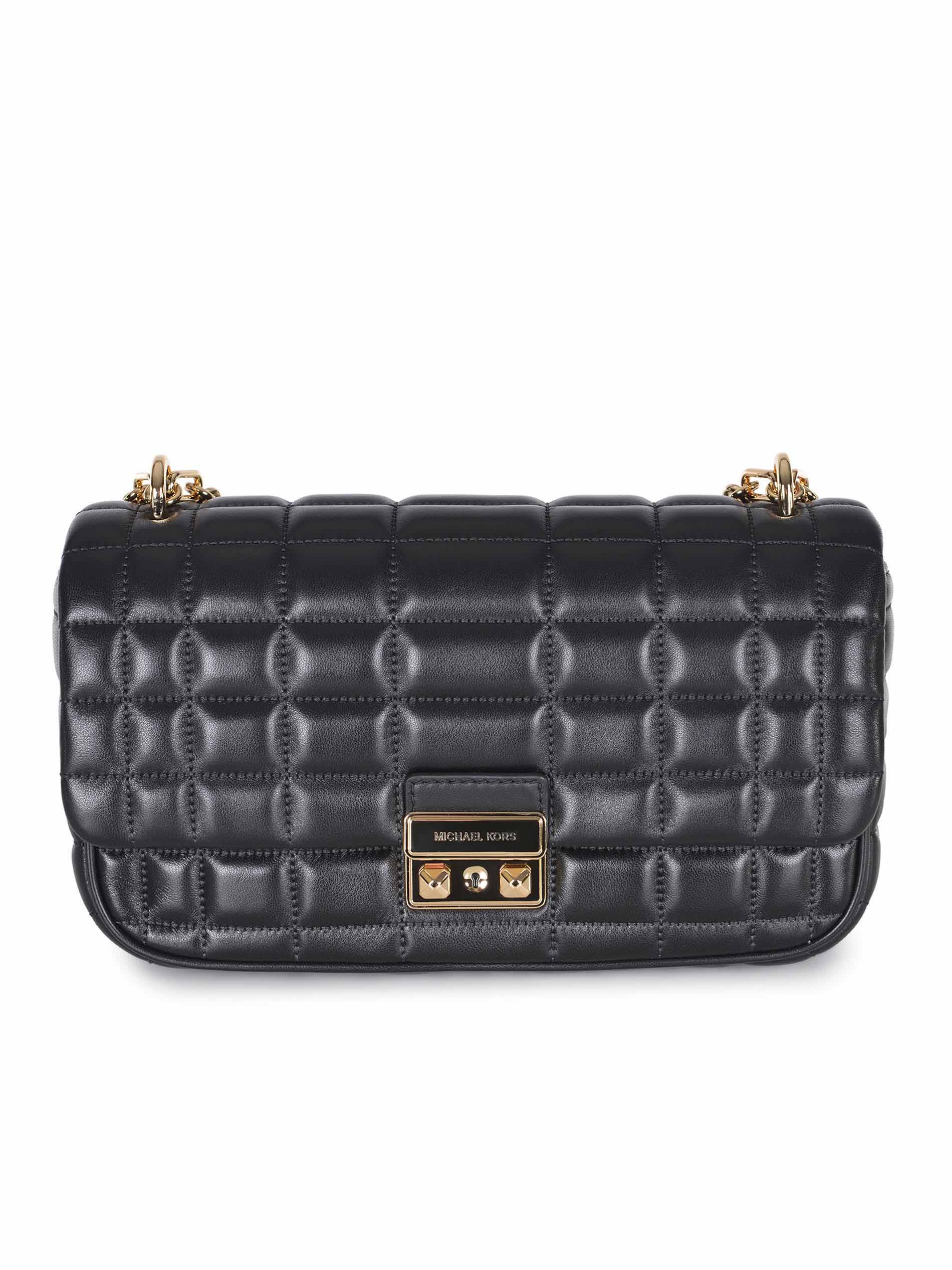 Michael Kors bag made of black leather. Quilted. Details and logo lettering in gold-colored metal. Internal wall pocket. Snap button closure. Adjustable shoulder strap: 29.2-52.1 cm Length: 25.4 cm Height: 14 cm Depth: 7.6 cm 100% leather