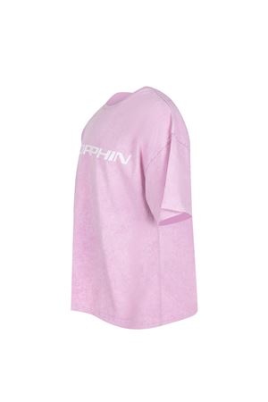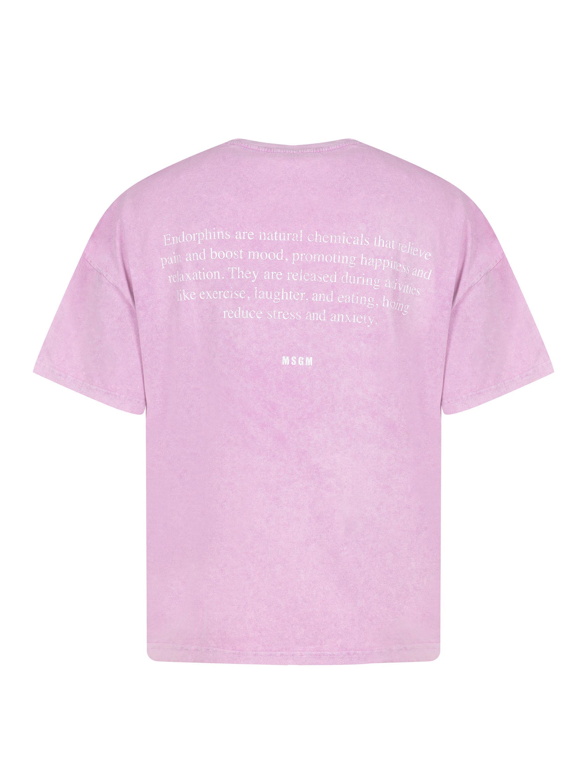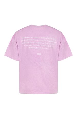 MSGM T-shirt made of pink cotton. Washed effect. Ribbed crew neck. Short sleeves. Contrasting print on the chest. Contrasting logo lettering on the back. 100% cotton