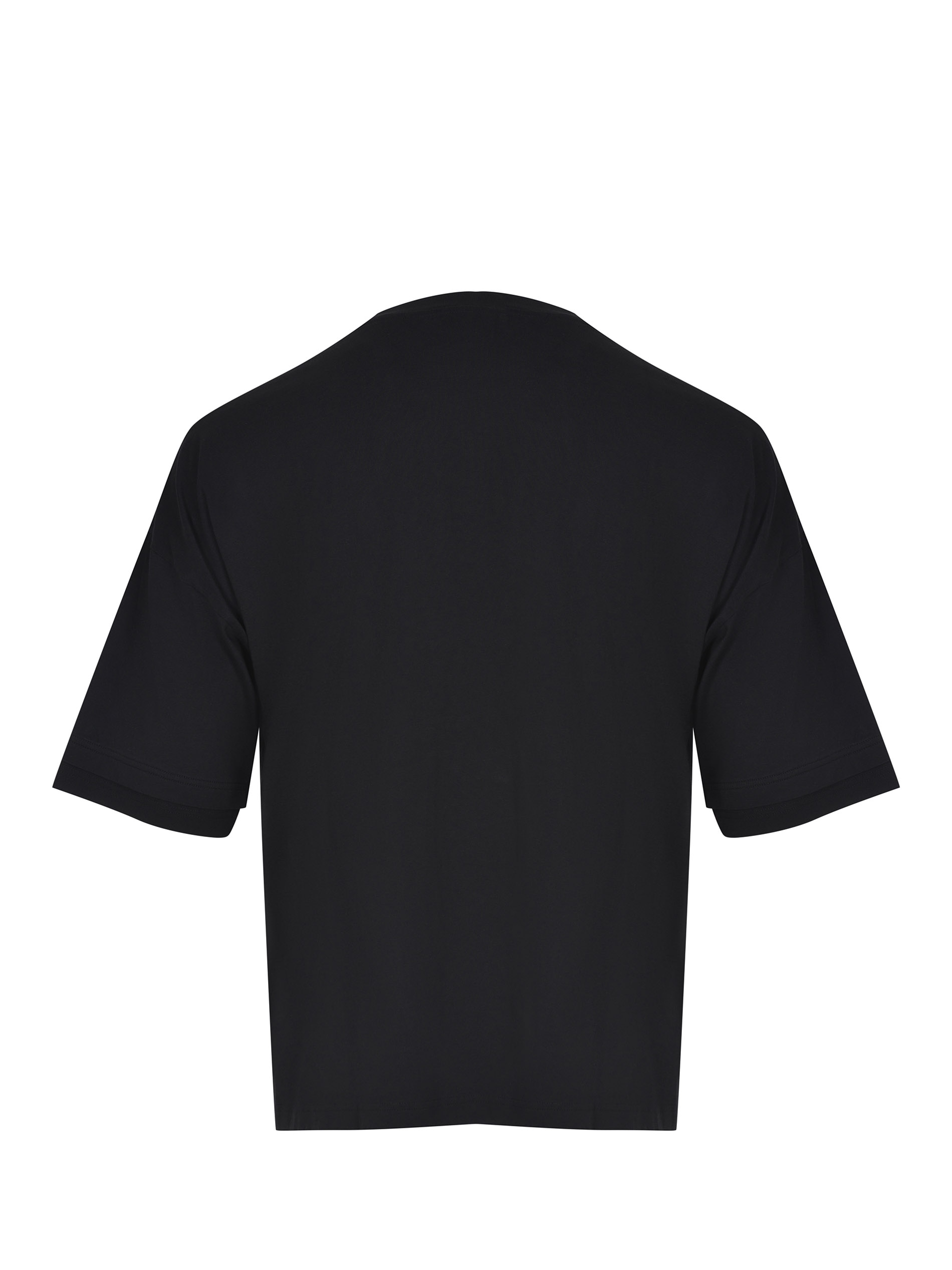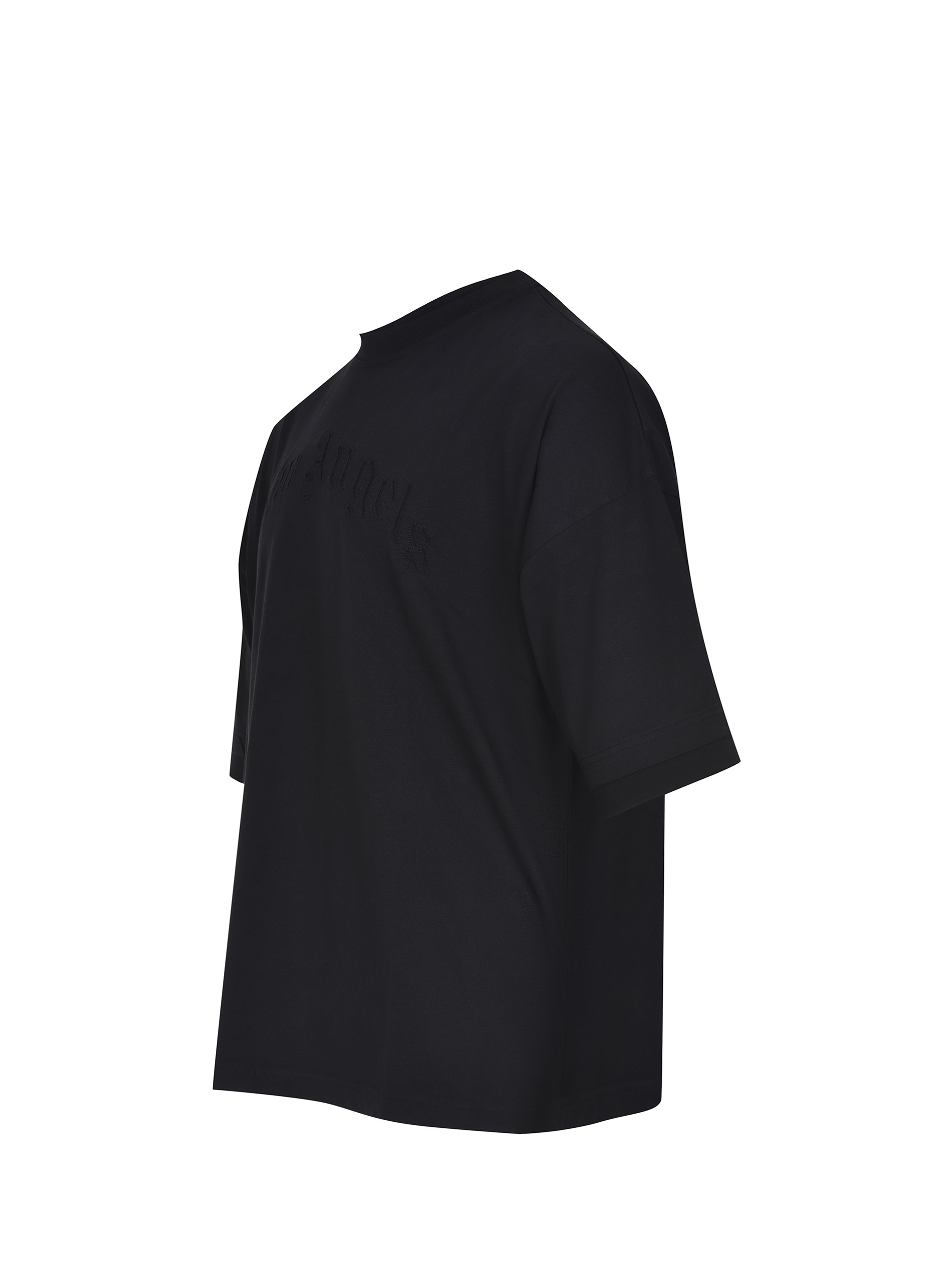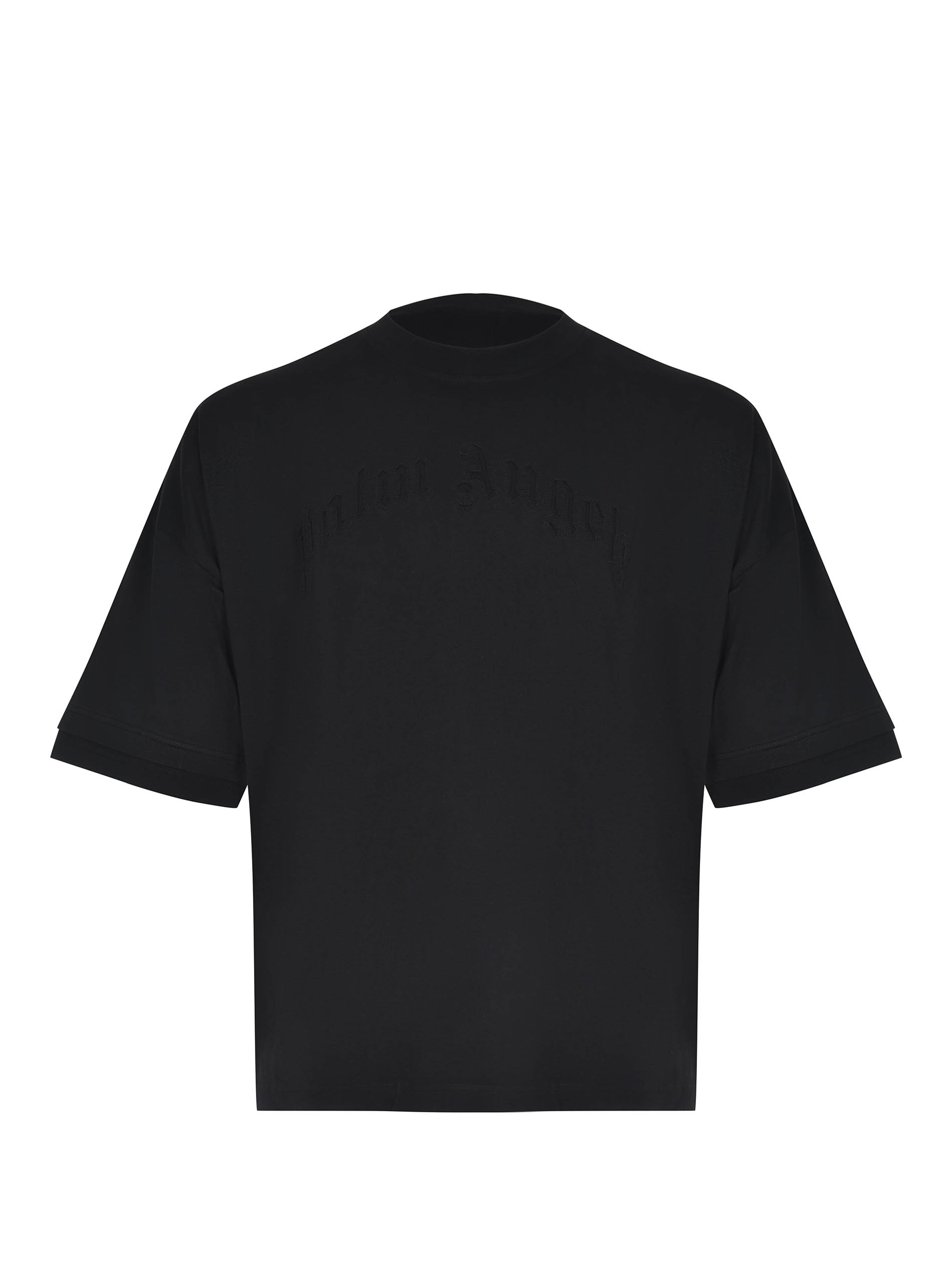 Palm Angels T-shirt made of black cotton. Ribbed crew neck. Wide short sleeves. Tone-on-tone embroidered logo lettering on the chest. 100% cotton