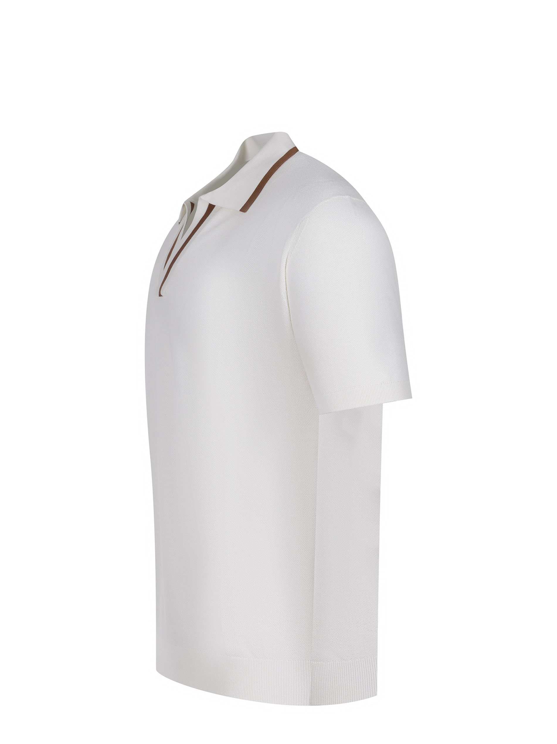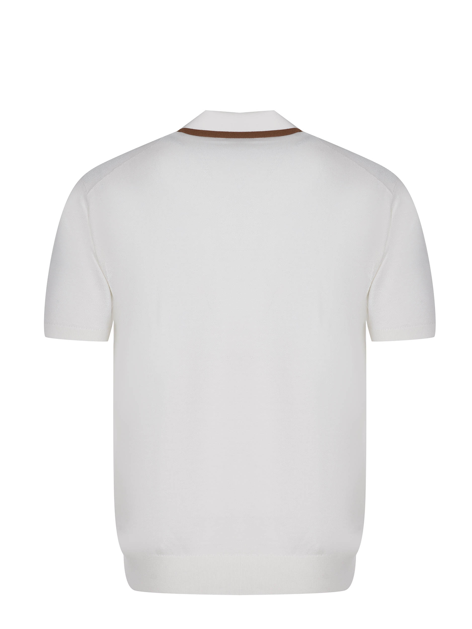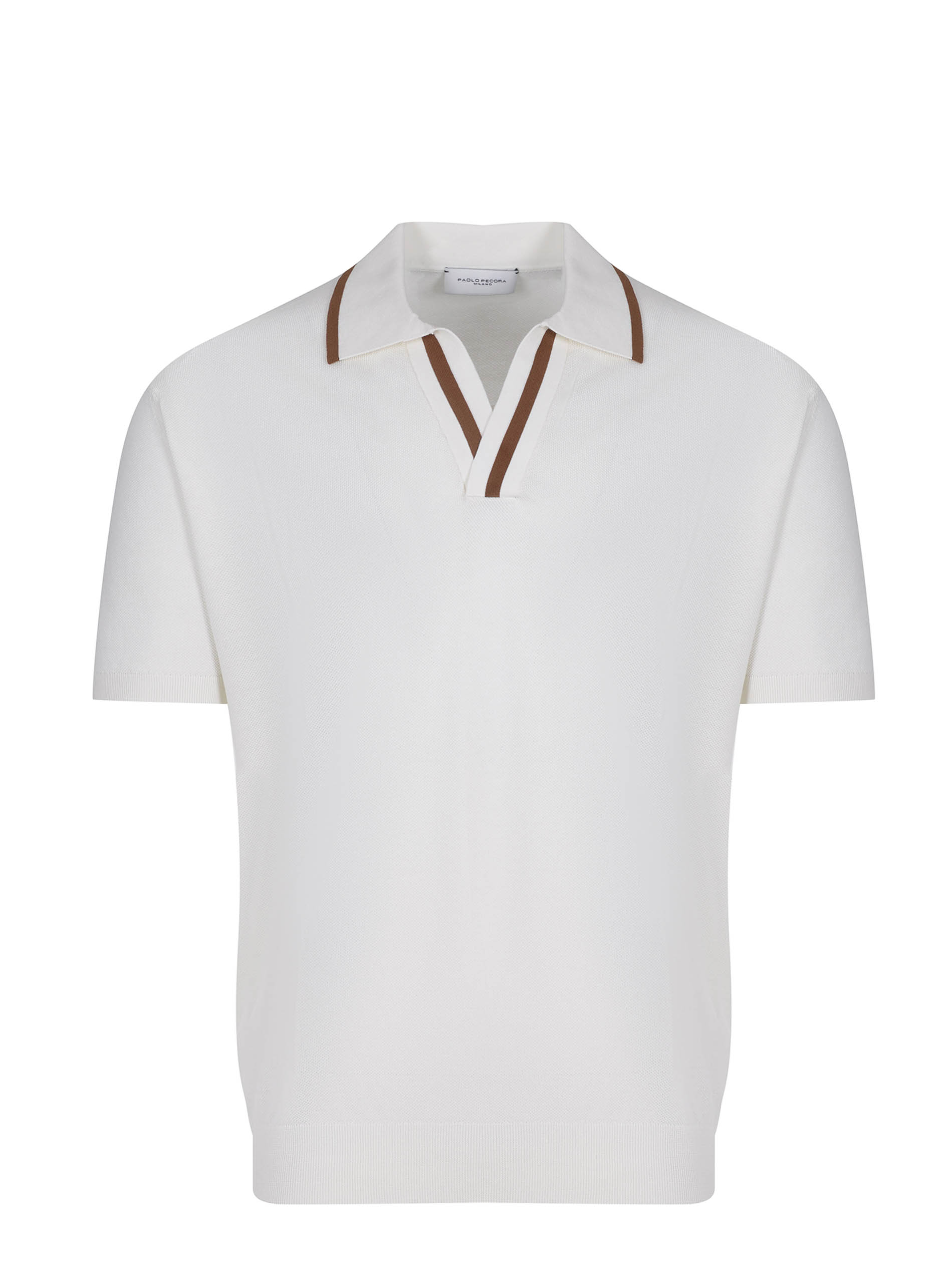 Paolo Pecora polo made of white cotton. Classic collar. V-neck. Contrasting finishes. Short sleeves. Ribbed hem. 100% cotton