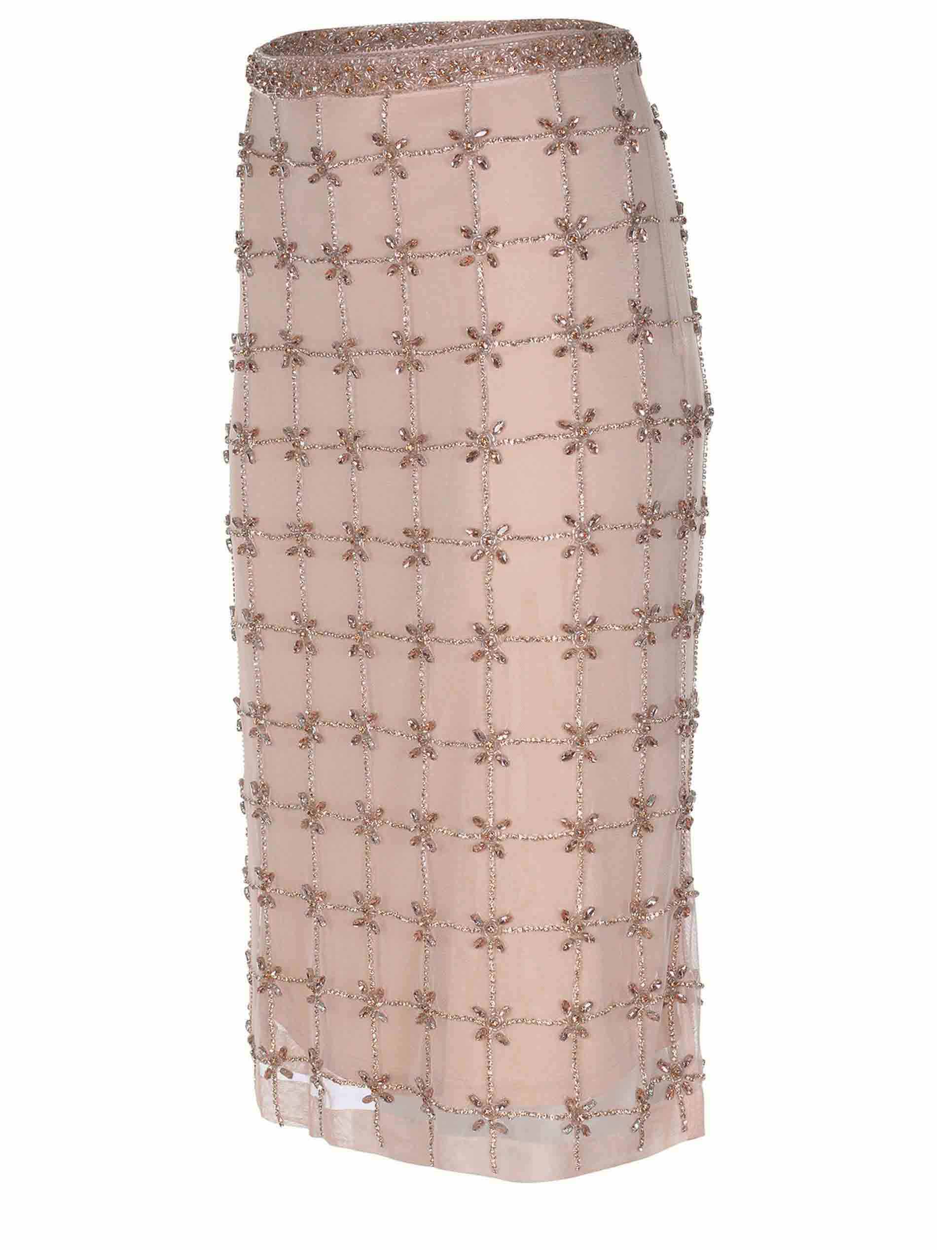 Pinko "New Carrieri" skirt made of pink tulle. Embroidery with contrasting rhinestones all over. Side closure with invisible zipper. Removable inner lining. 100% polyester