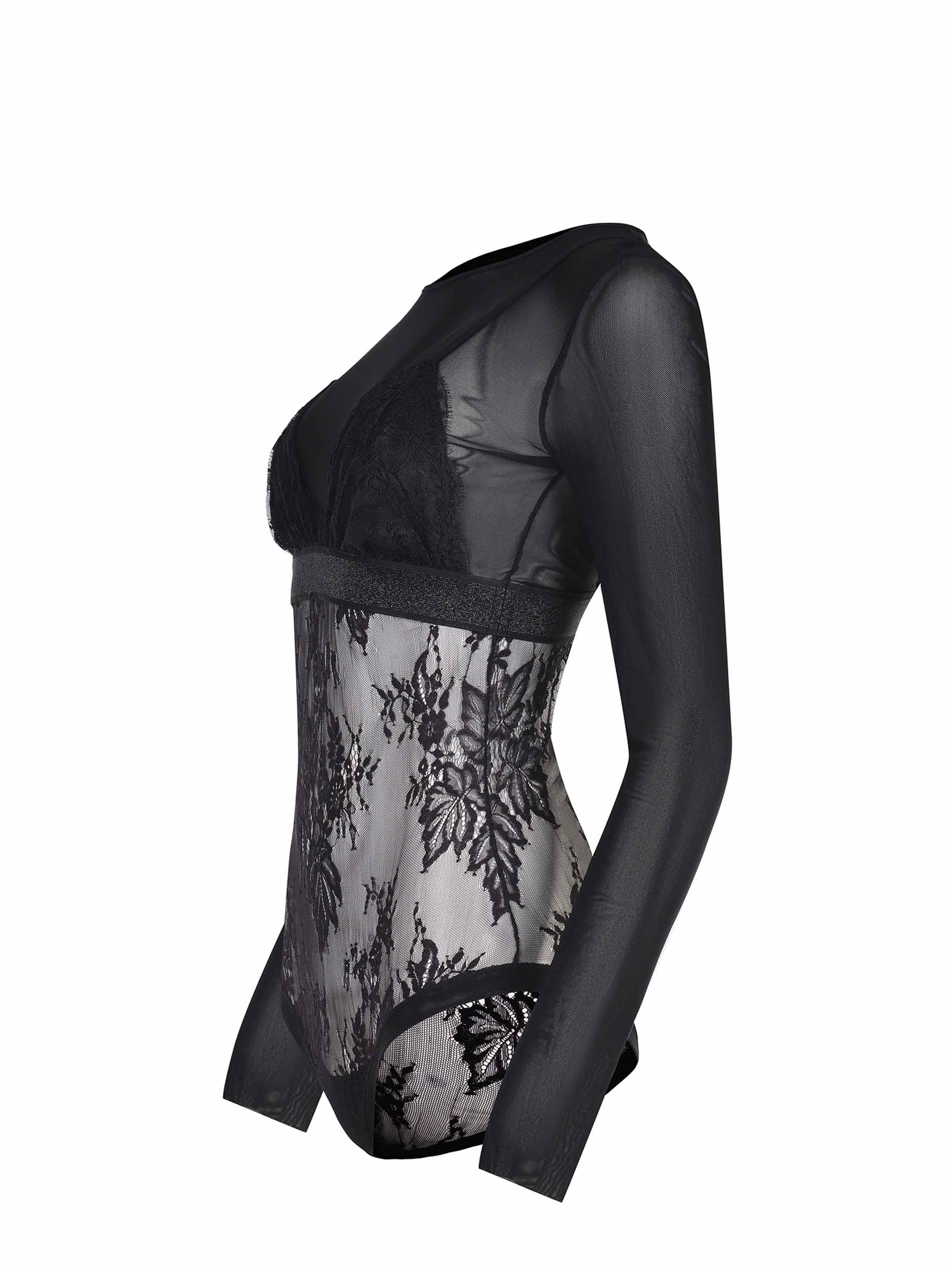 Pinko "Fagiolino" bodysuit made of black lace.