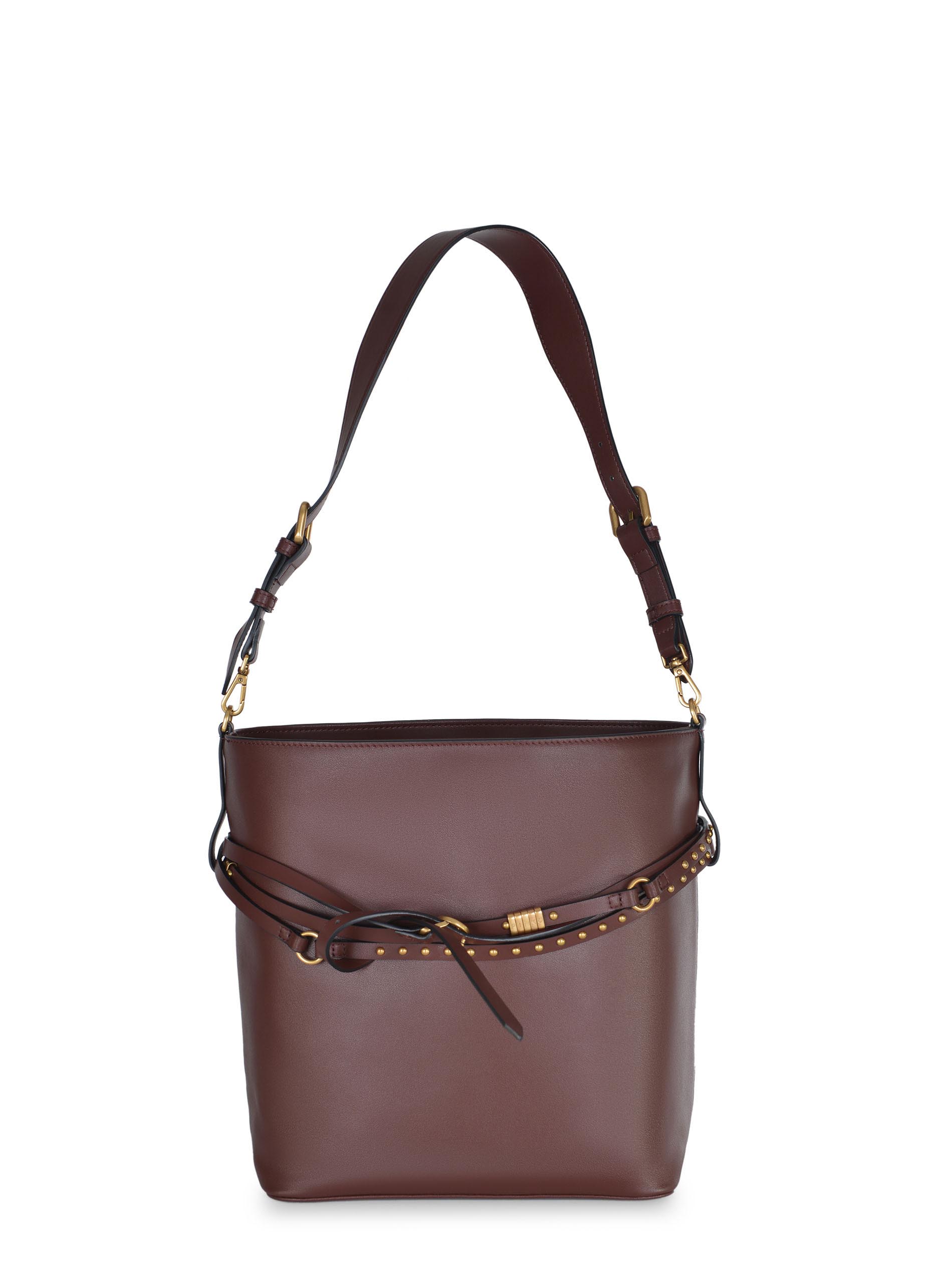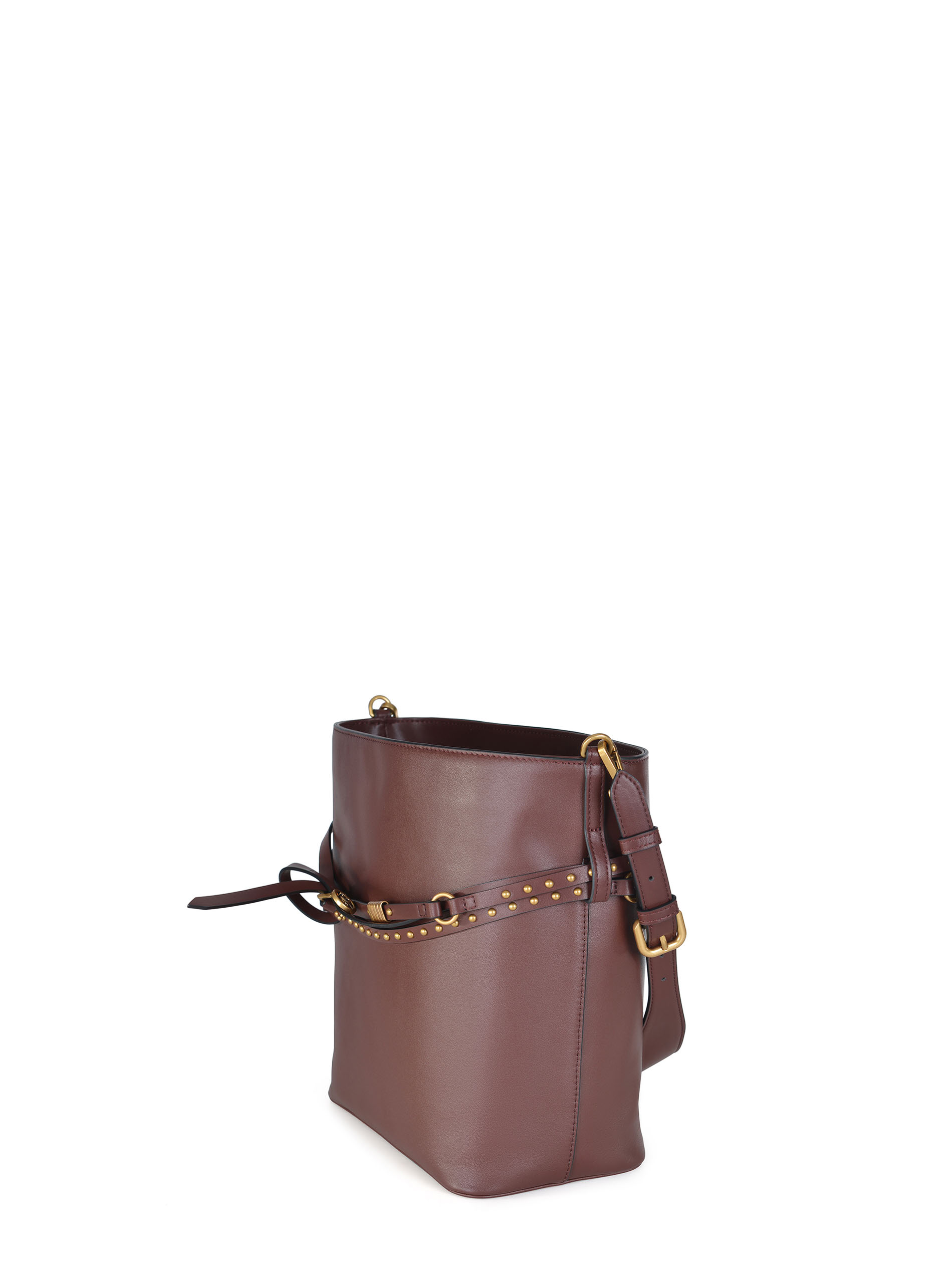 Pinko "Bucket" bag made of Bordeaux-colored leather.