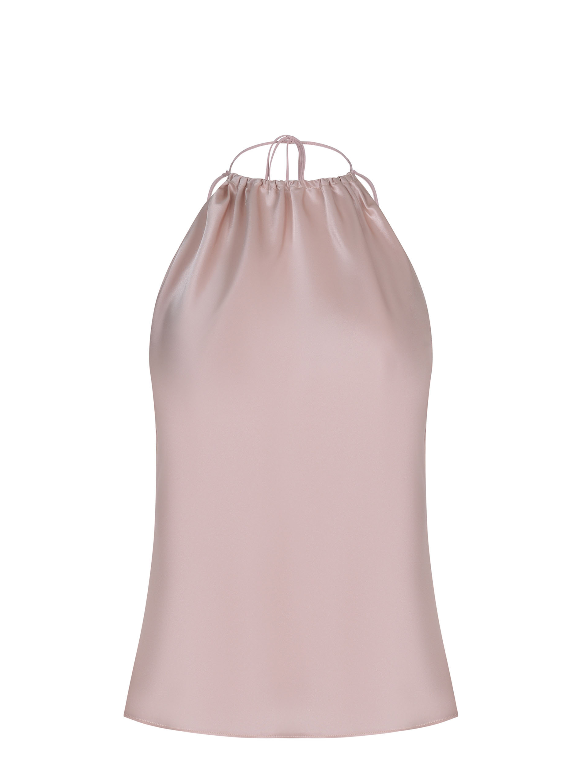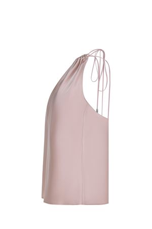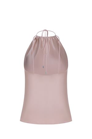 Top by Pinko made of pink satin. Halter neckline with straps to tie at the back. Thin straps. 91% acetate, 9% polyester Made in Italy