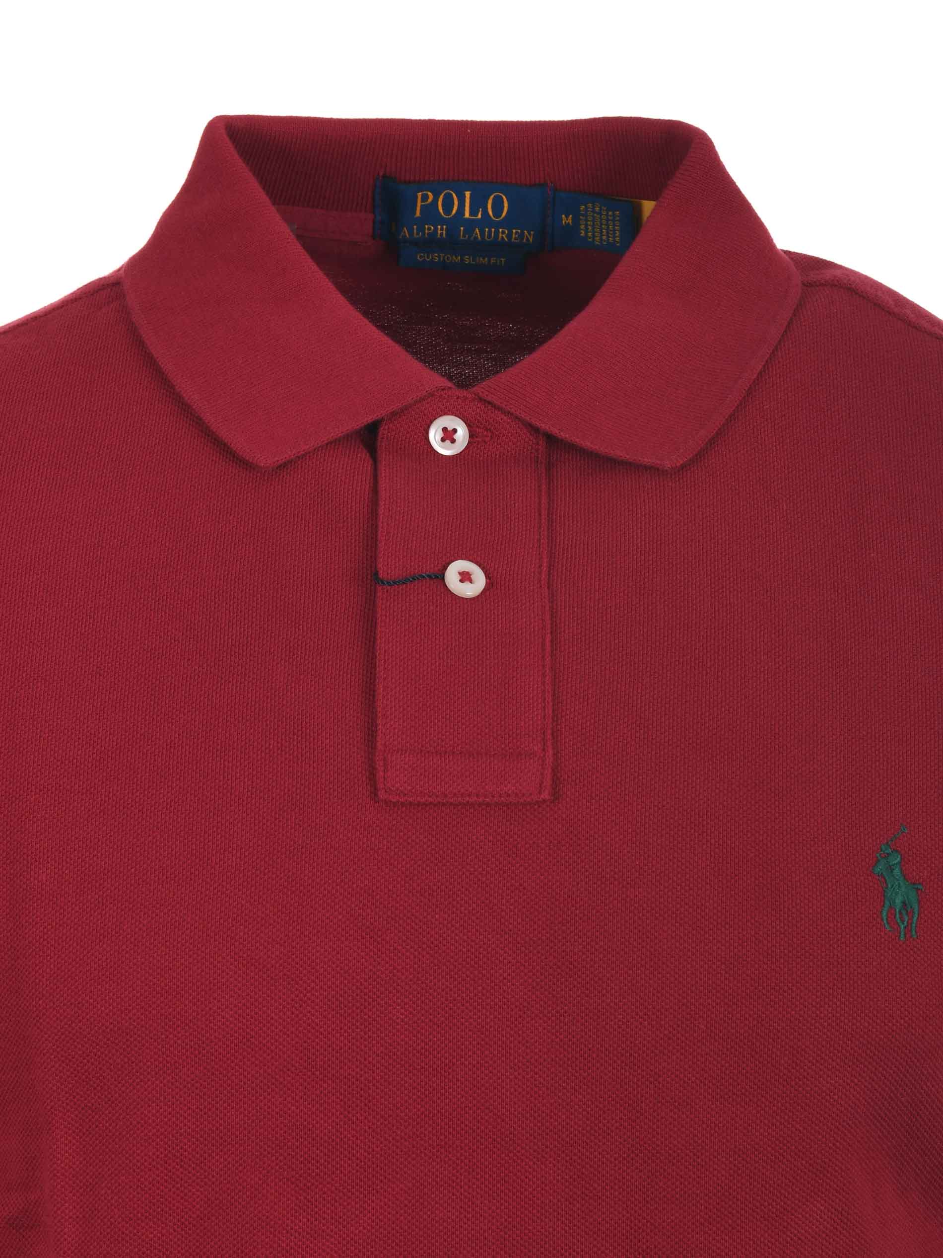 "Polo Ralph Lauren" cotton piqu? polo shirt. Ribbed collar. Two-button closure. Short sleeves. Embroidered front logo. Hem vents. Custom slim fit.