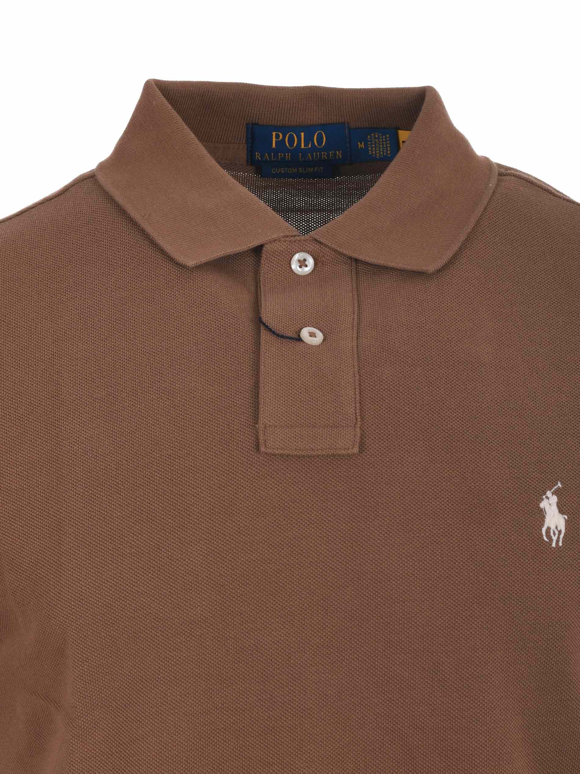 "Polo Ralph Lauren" cotton piqu? polo shirt. Ribbed collar. Two-button closure. Short sleeves. Embroidered front logo. Hem vents. Custom slim fit.
