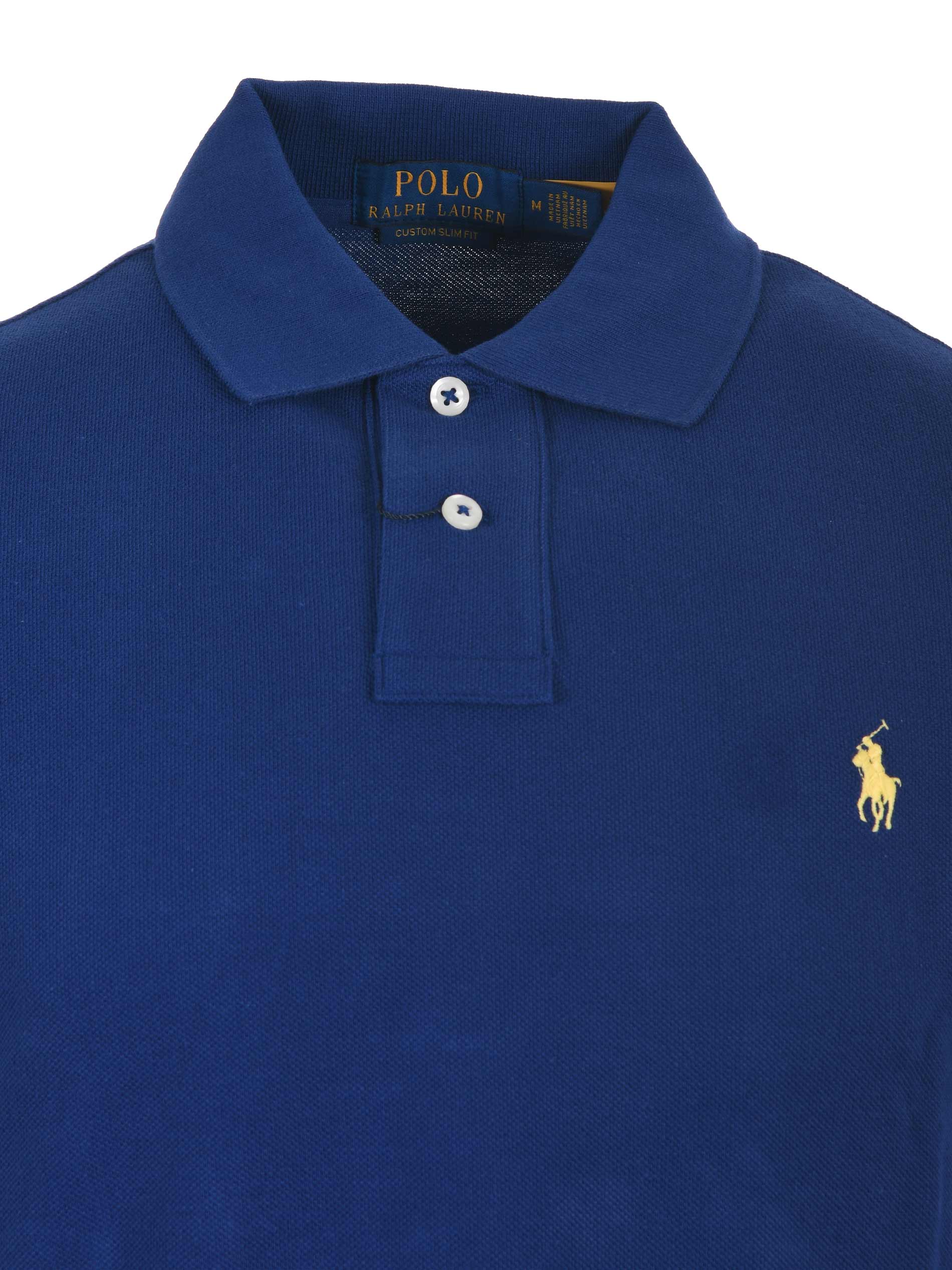 "Polo Ralph Lauren" cotton piqu? polo shirt. Ribbed collar. Two-button closure. Short sleeves. Embroidered front logo. Hem vents. Custom slim fit.