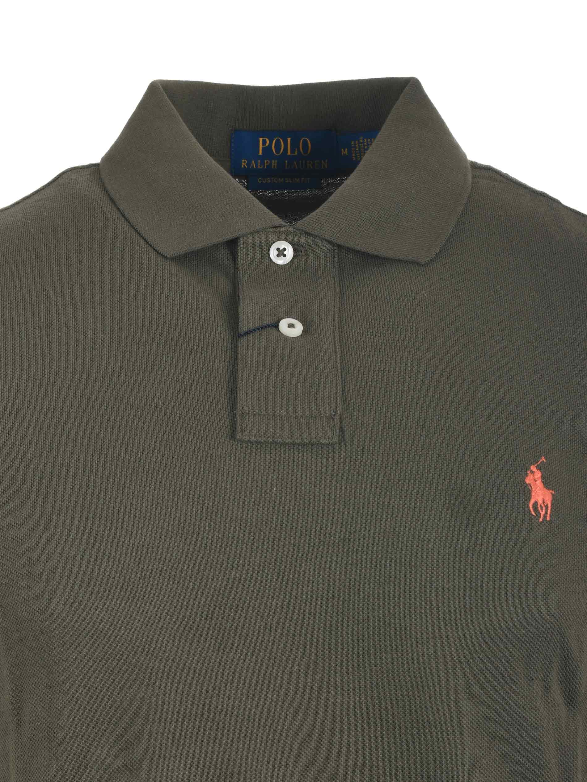 "Polo Ralph Lauren" cotton piqu? polo shirt. Ribbed collar. Two-button closure. Short sleeves. Embroidered front logo. Hem vents. Custom slim fit.