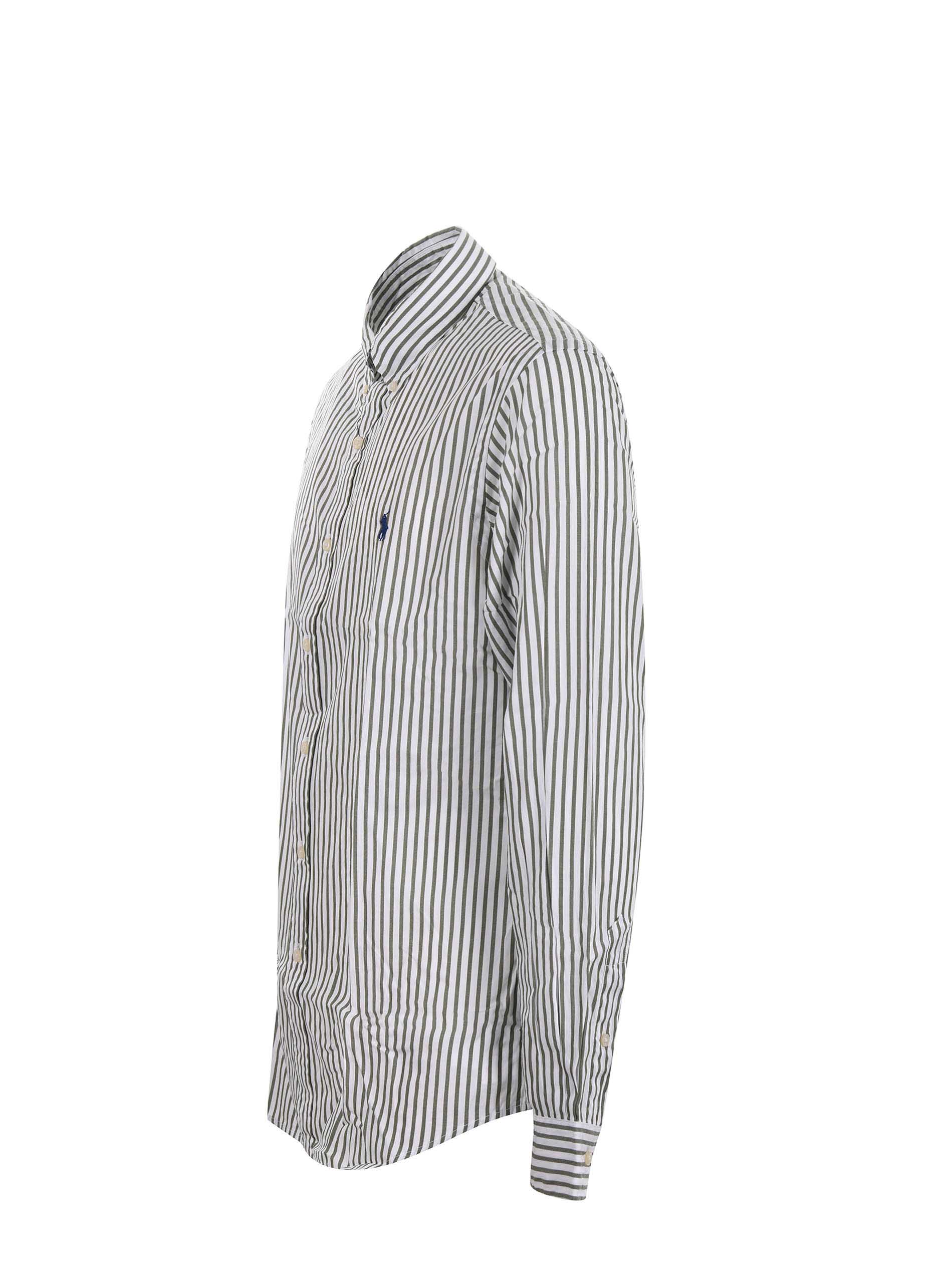 Polo Ralph Lauren cotton shirt with vertical stripes. Button-down collar. Long sleeves. Buttoned cuffs. Button closure. Embroidered logo on the front. Placket on the back. Custom fit.