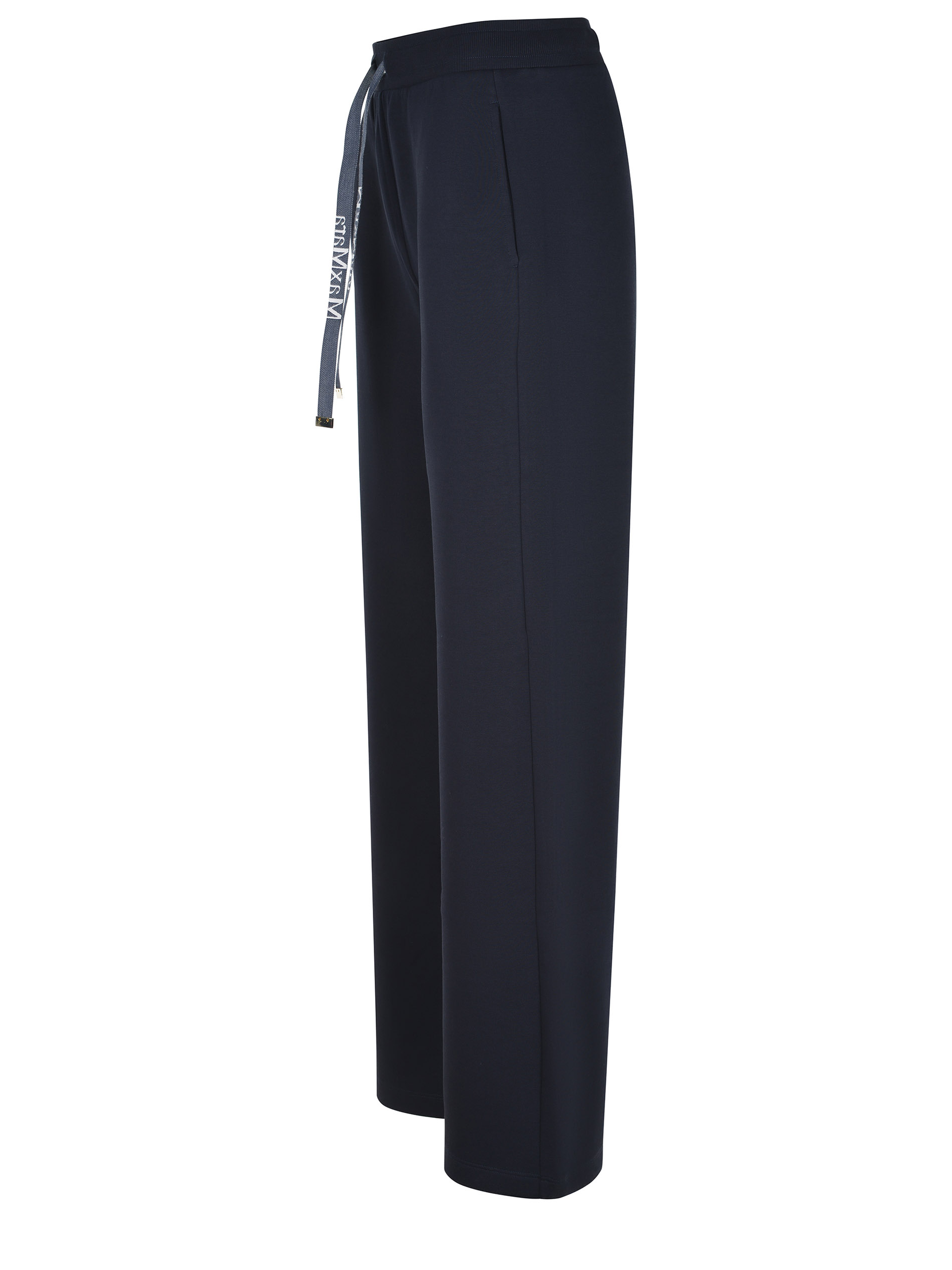 'S Max Mara "Smmbali" trousers made of cotton blend in midnight blue. Logo-adjustable drawstring at the waist. Side pockets. 78% cotton 22% polyester Made in Italy