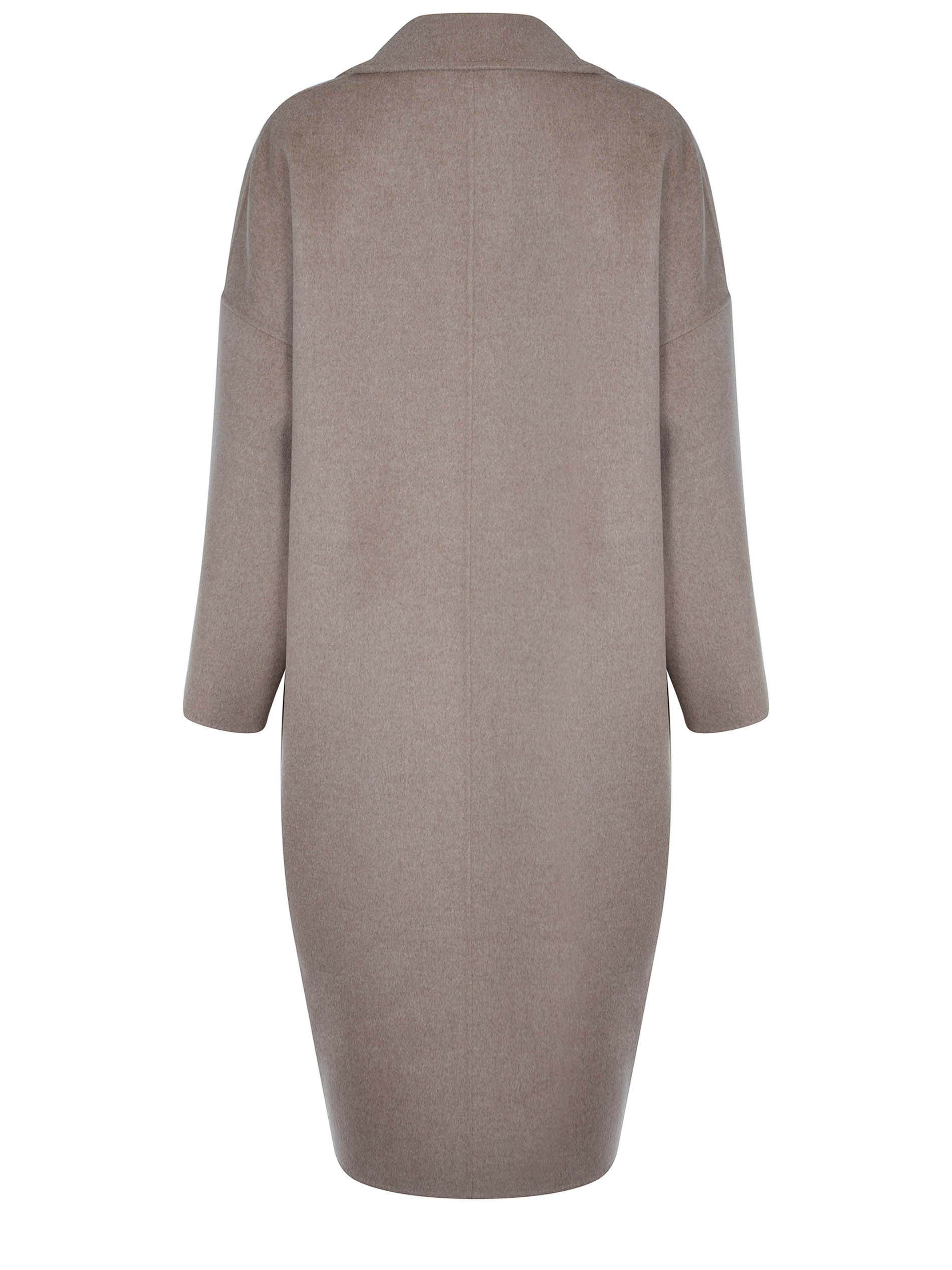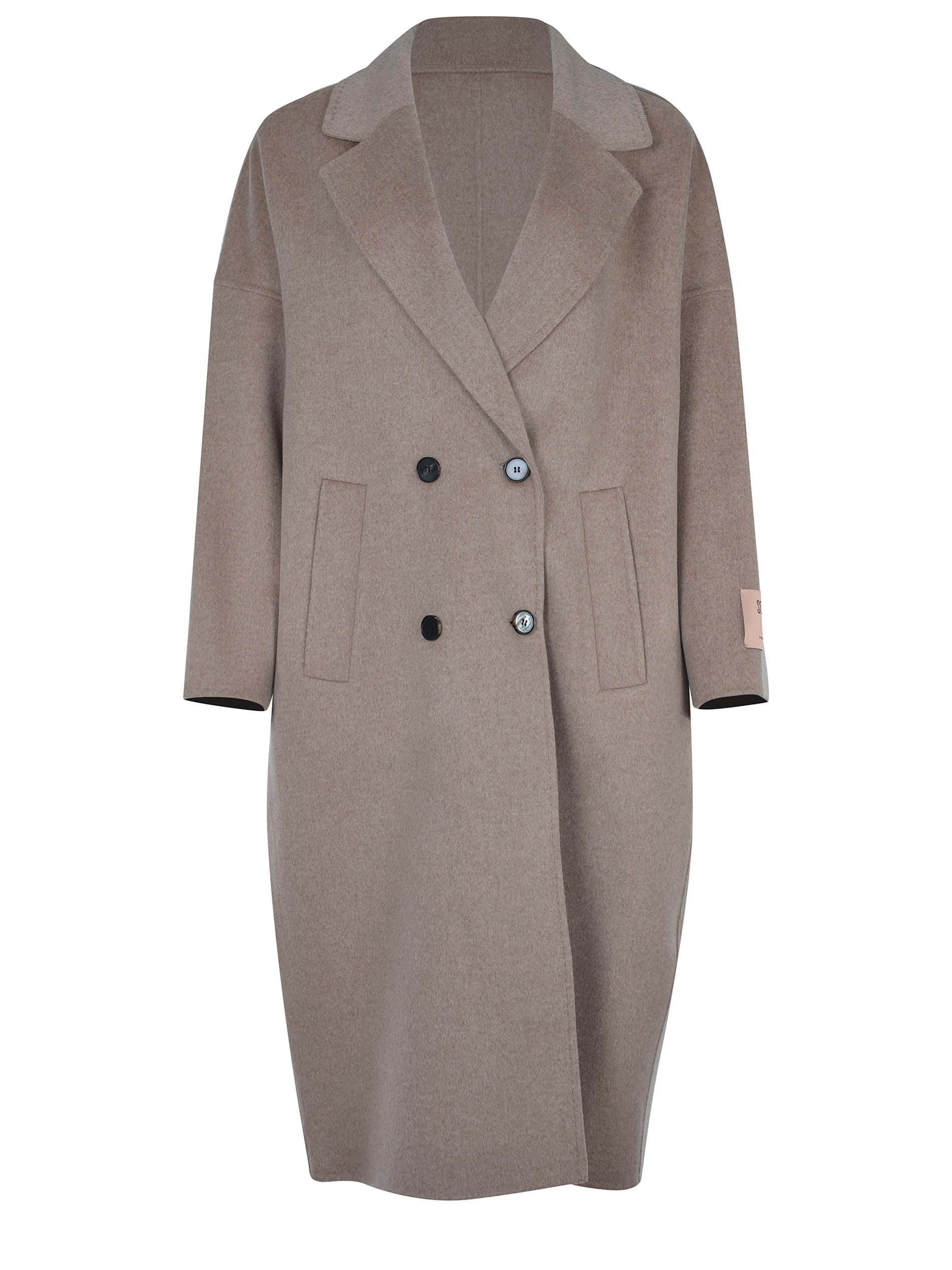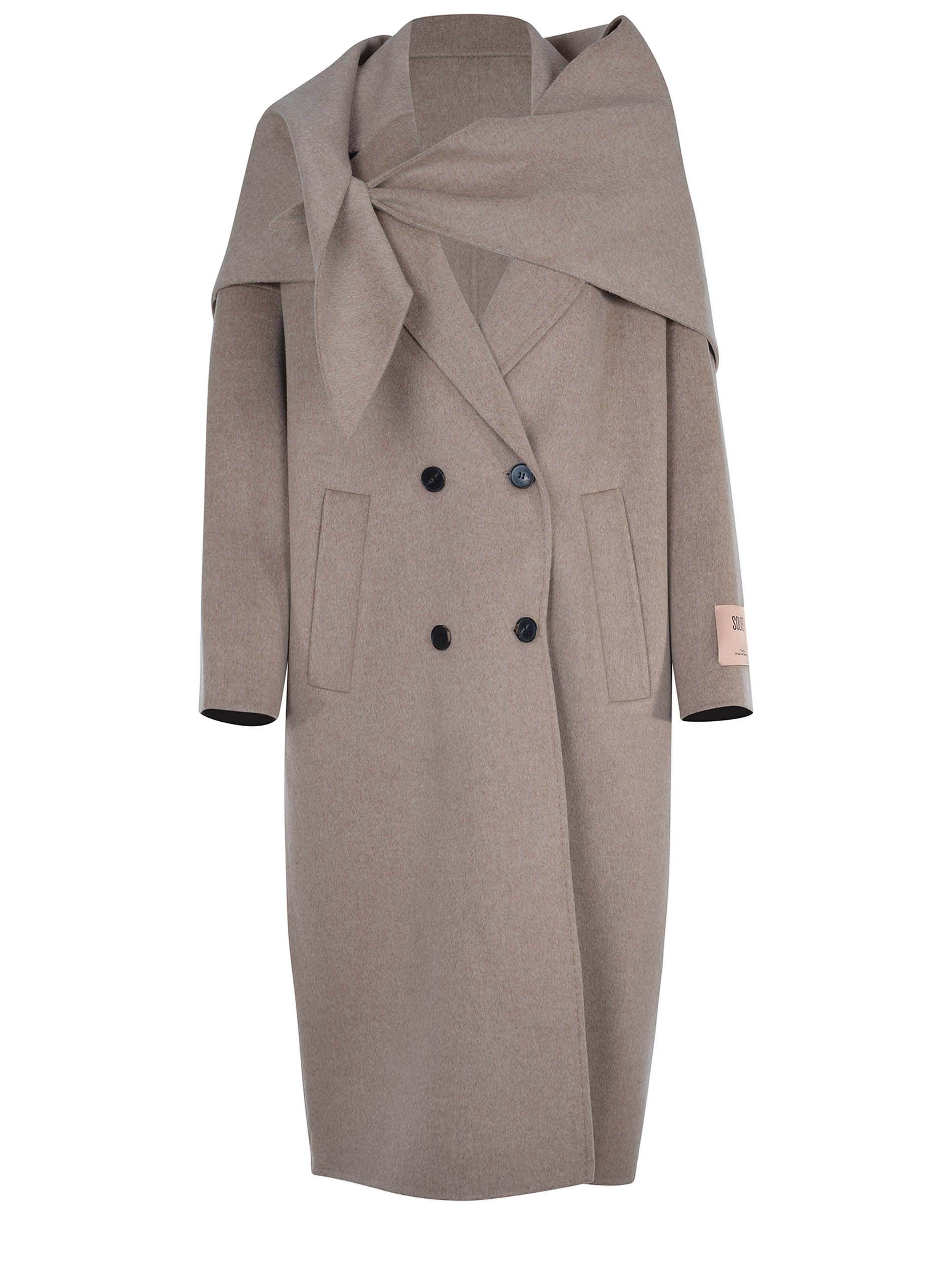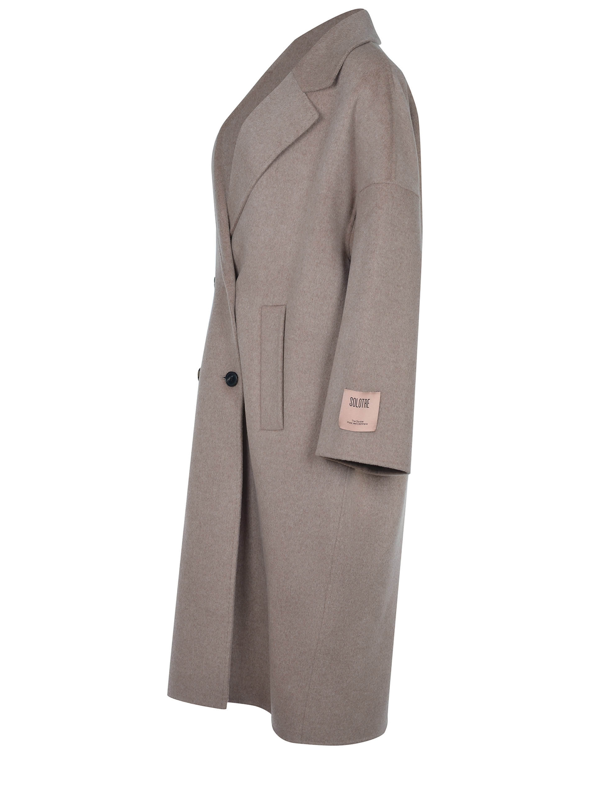 Solotre coat made of a wool and cashmere blend in Beige color. Double-breasted. Classic lapel. Long sleeves. Embroidered logo patch on the cuff in contrast. Front button closure. Side pockets. Removable tone-on-tone scarf. 95% wool 5% cashmere