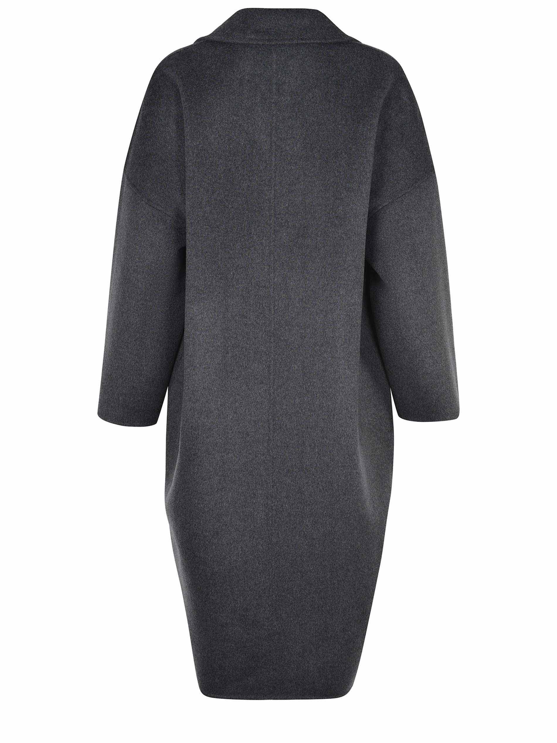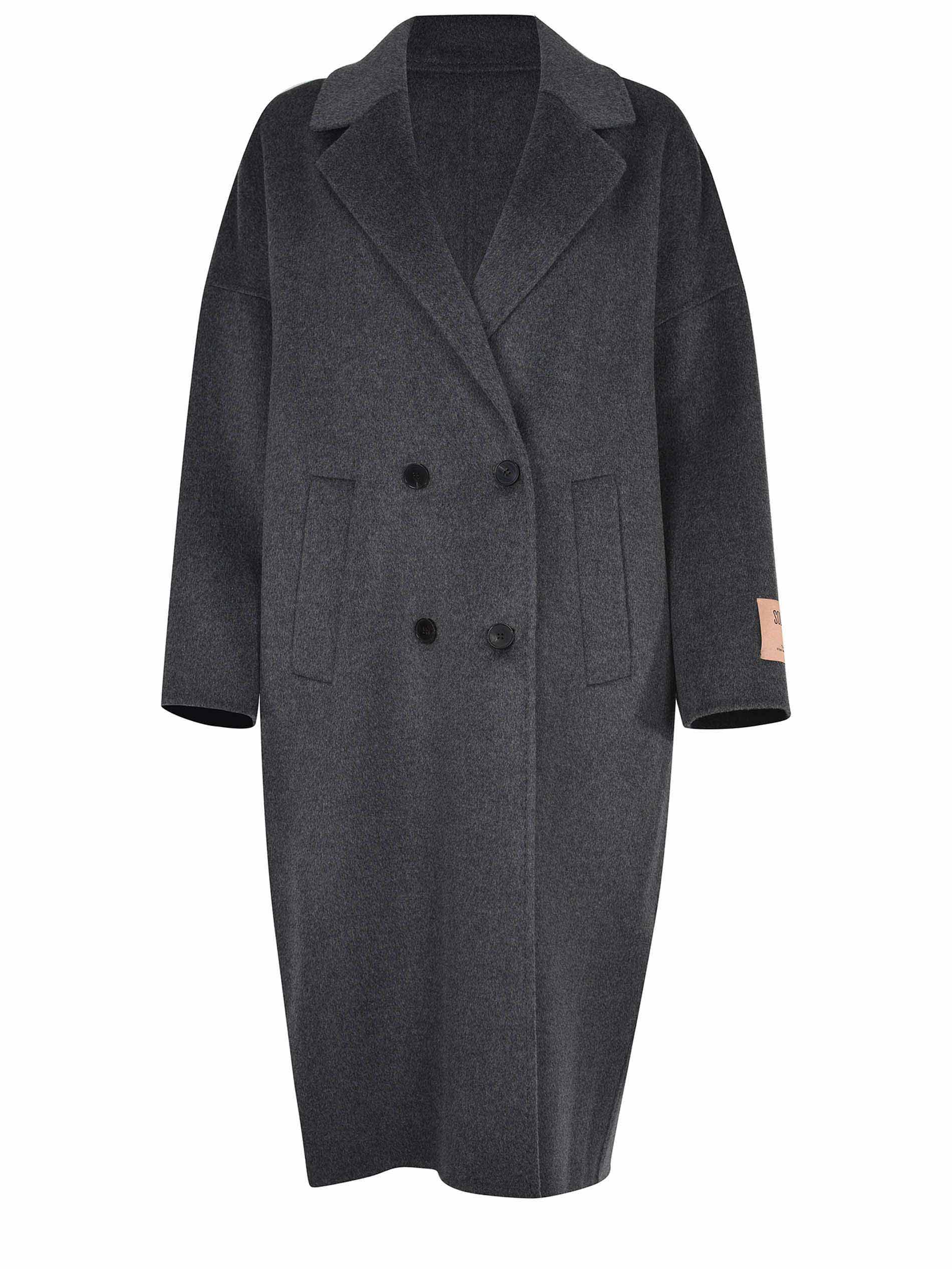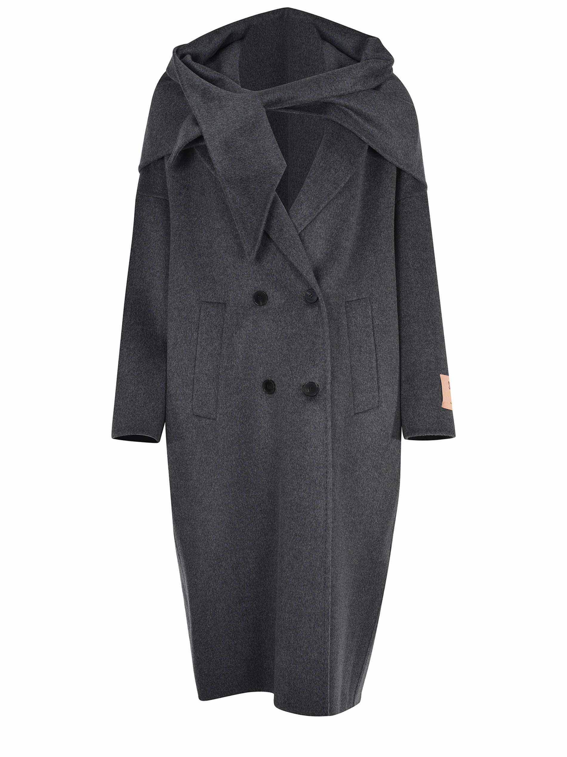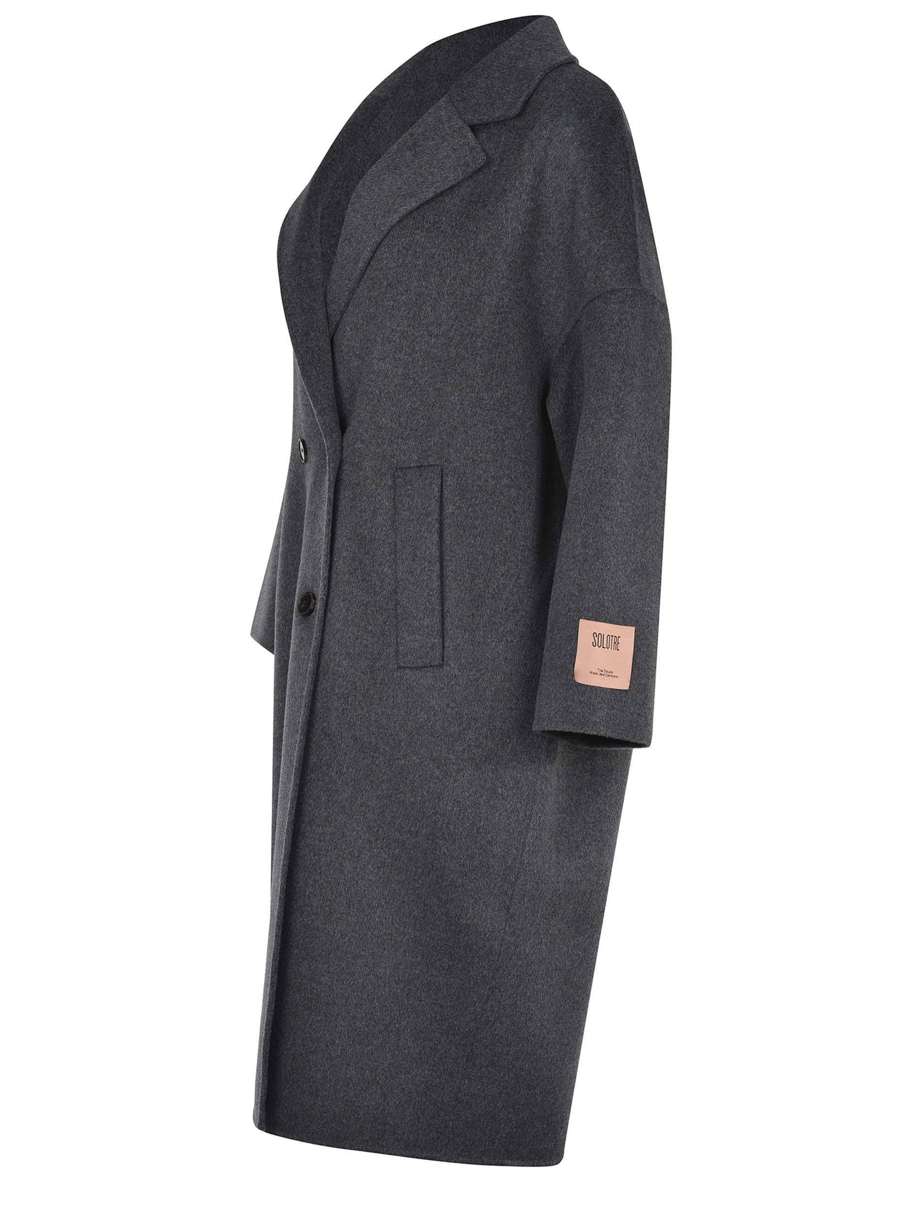 Solotre coat made of a wool and cashmere blend in anthracite gray. Double-breasted. Classic lapels. Long sleeves. Embroidered logo patch on the contrasting cuff. Front button closure. Side pockets. Removable tone-on-tone scarf. 95% wool, 5% cashmere.