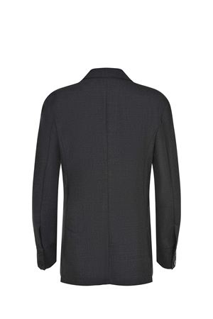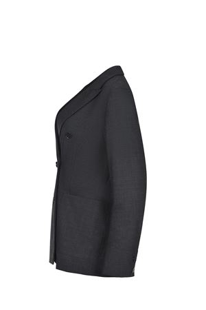 Solotre jacket made of a wool blend in anthracite gray color. Double-breasted. Classic lapel. Front button closure. Side pockets. Long sleeves. Cuffs with buttons. 53% polyester, 43% wool, 4% elastane. Made in Italy
