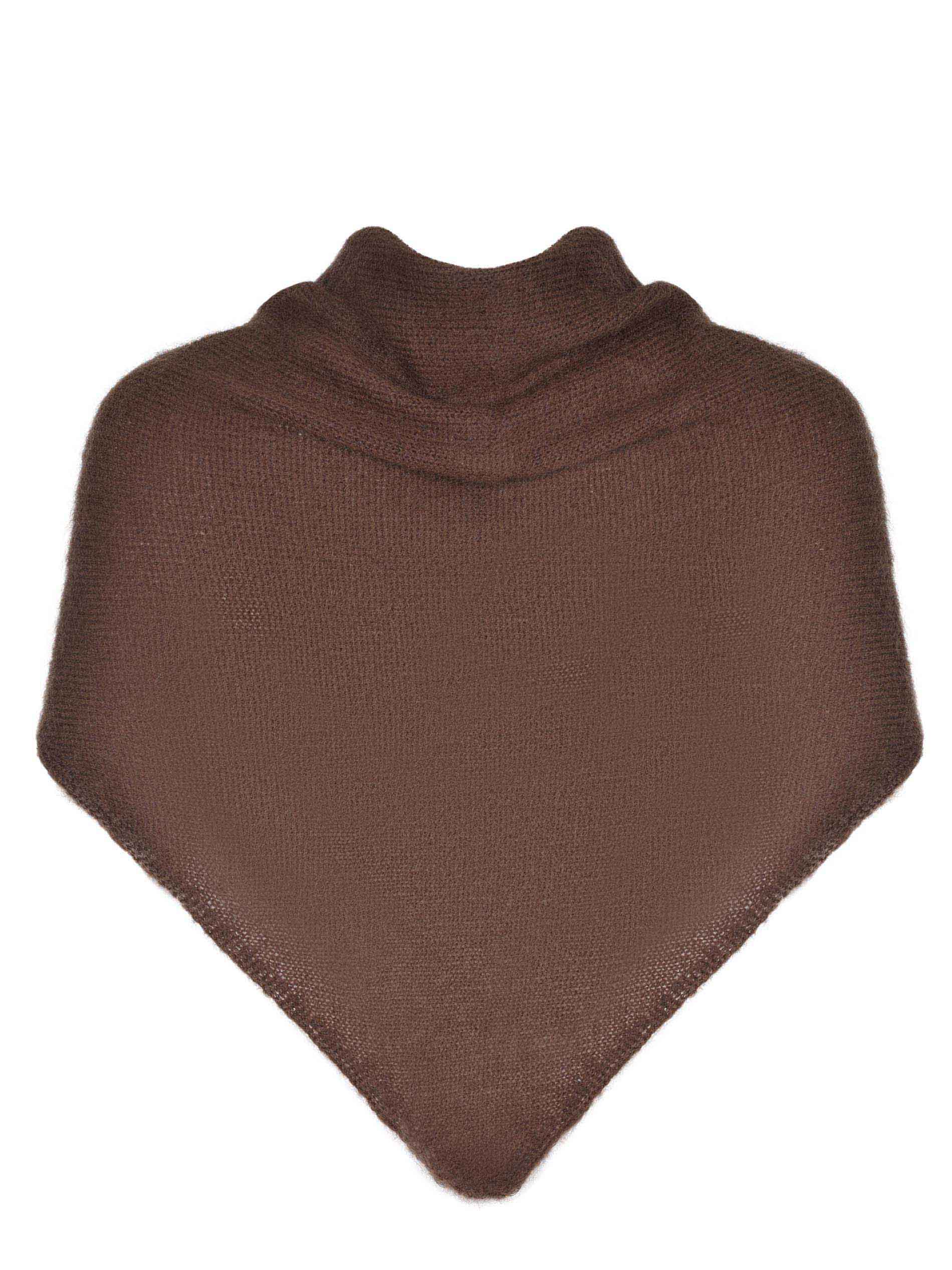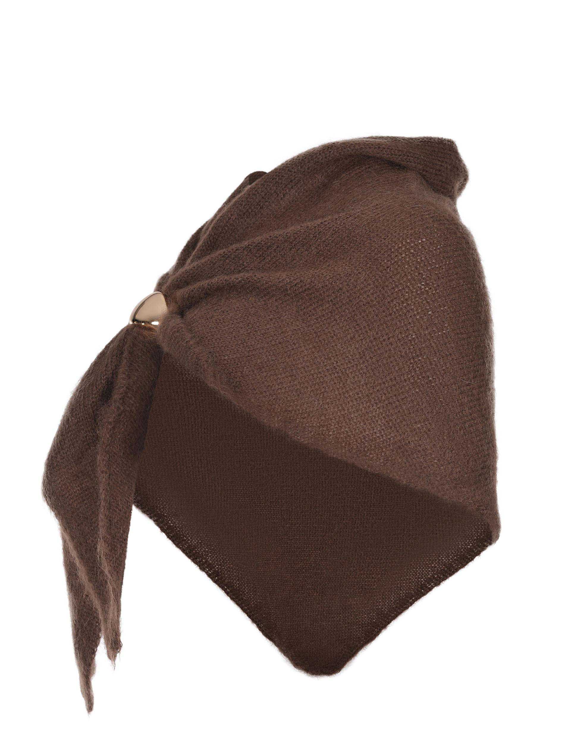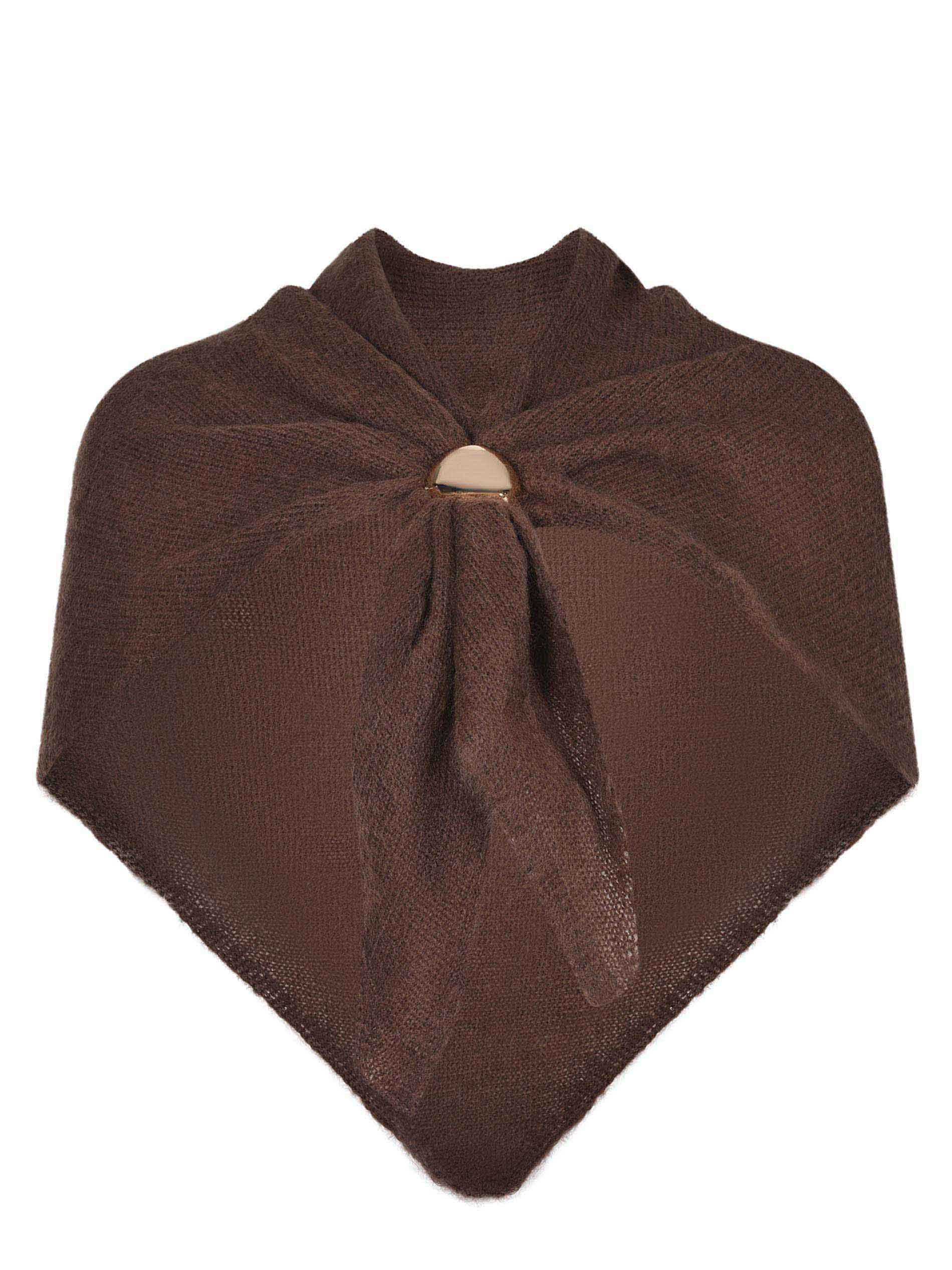 Solotre shawl made of brown wool blend. Golden metal detail on the front. 50% mohair, 32% polyamide, 18% wool. Made in Italy