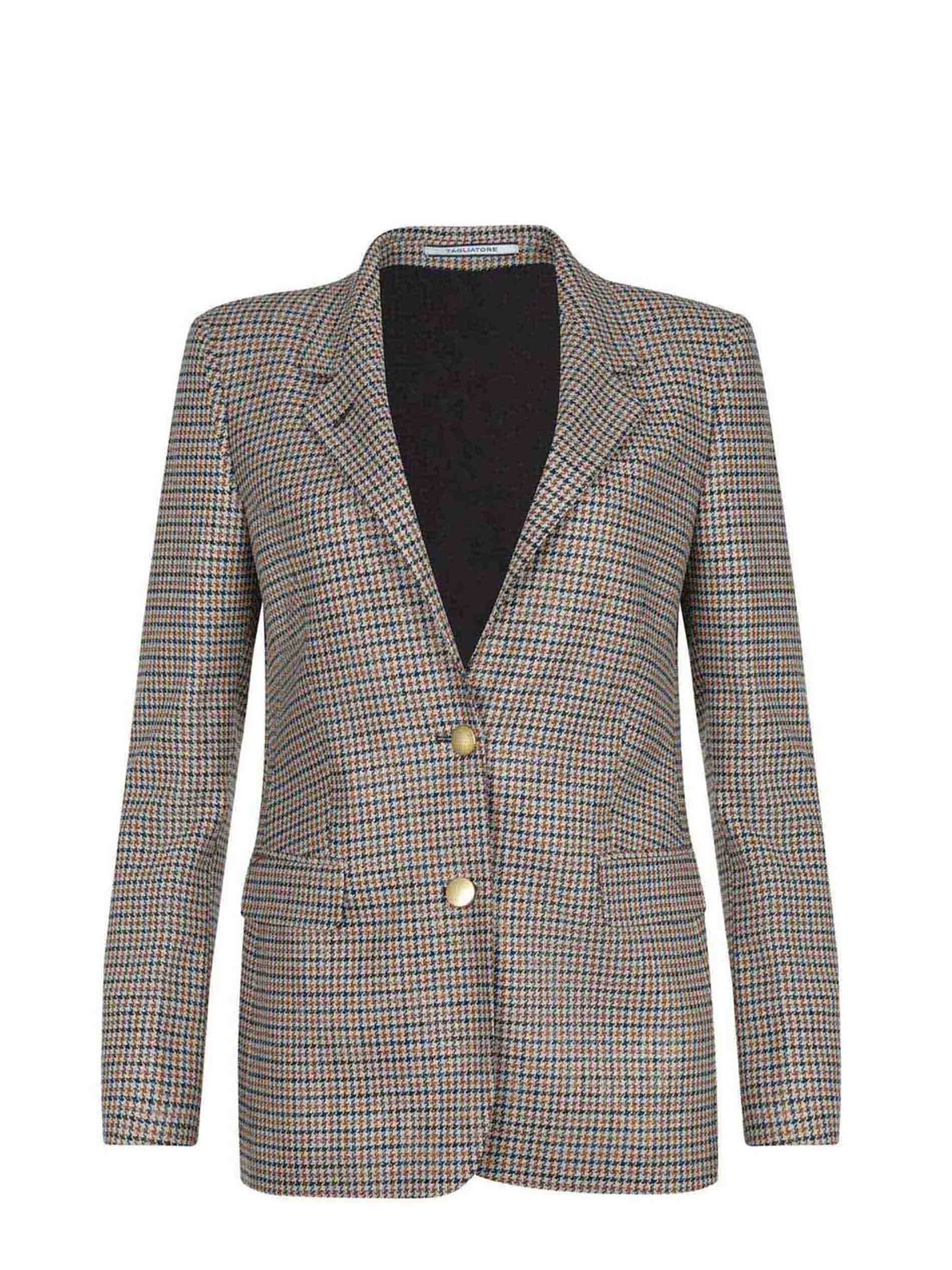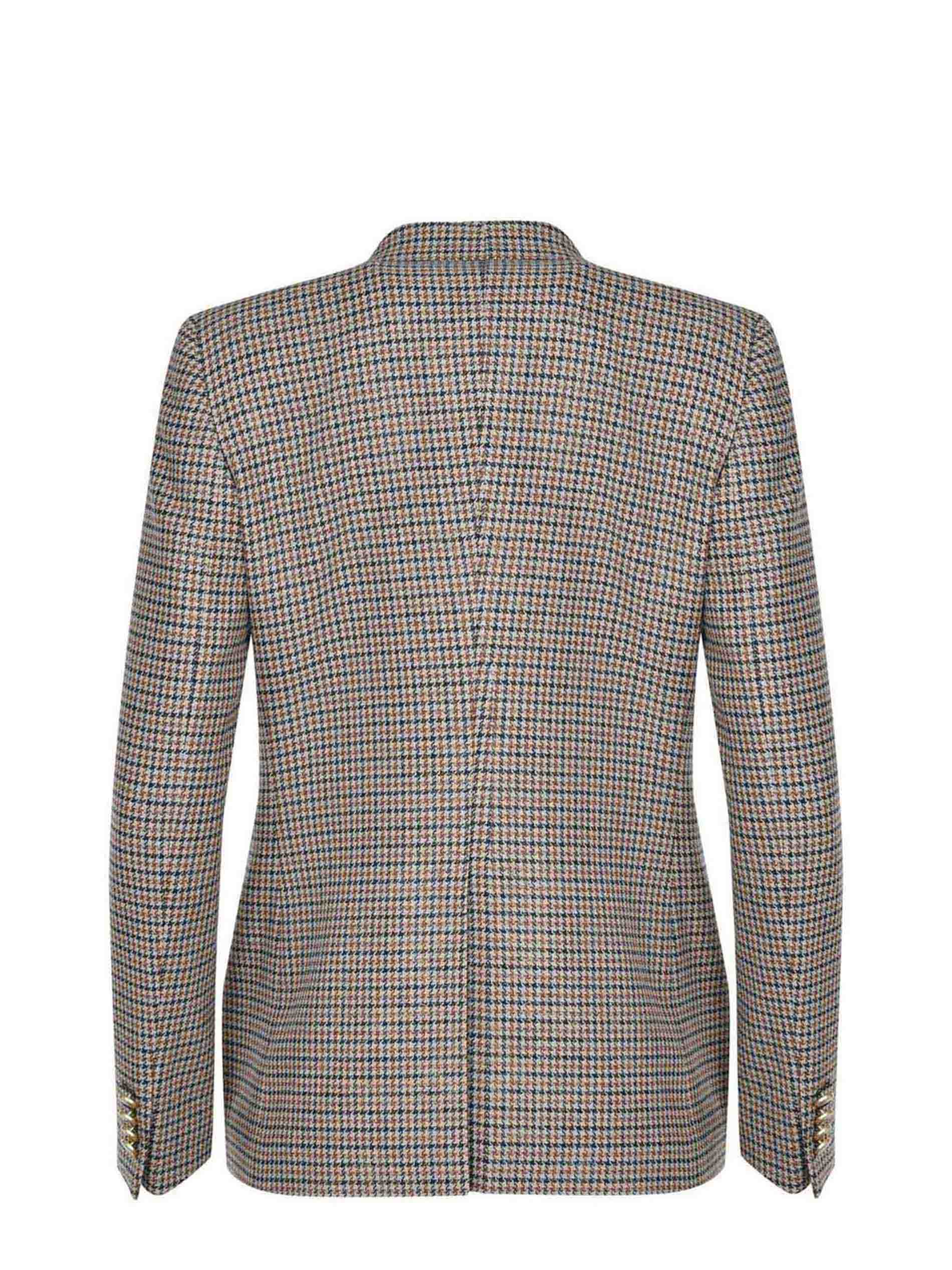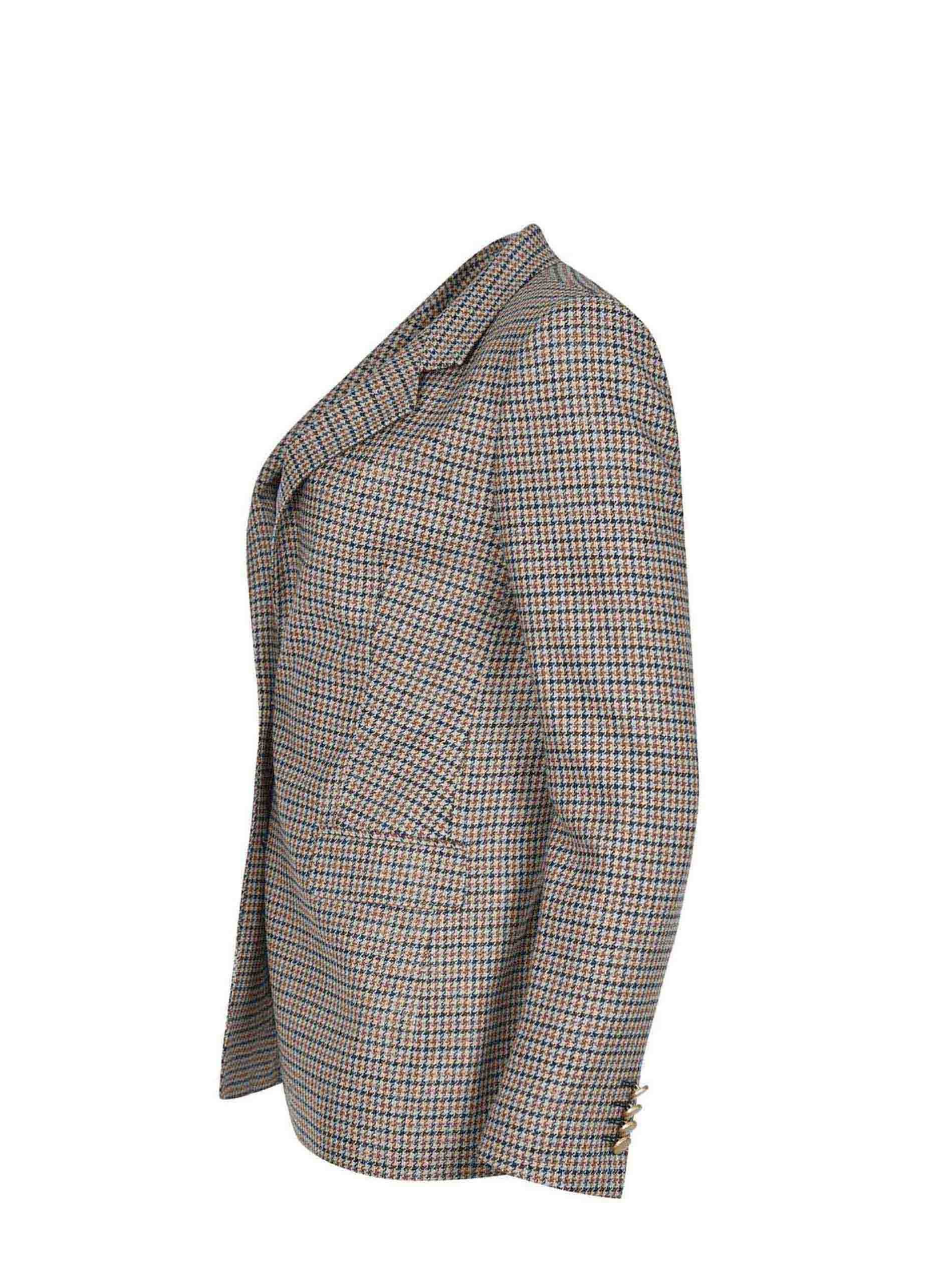 Tagliatore "J-Parigi" single-breasted jacket in beige wool blend. Houndstooth pattern. Notched lapel. Chest welt pocket. Long sleeves. Cuffs with four buttons. Single-breasted. Closure with two gold buttons. Side flap pockets. Center vent at the back. Lined. Lining 100% cupro. 40% acrylic, 30% wool, 20% polyester. Made in Italy.