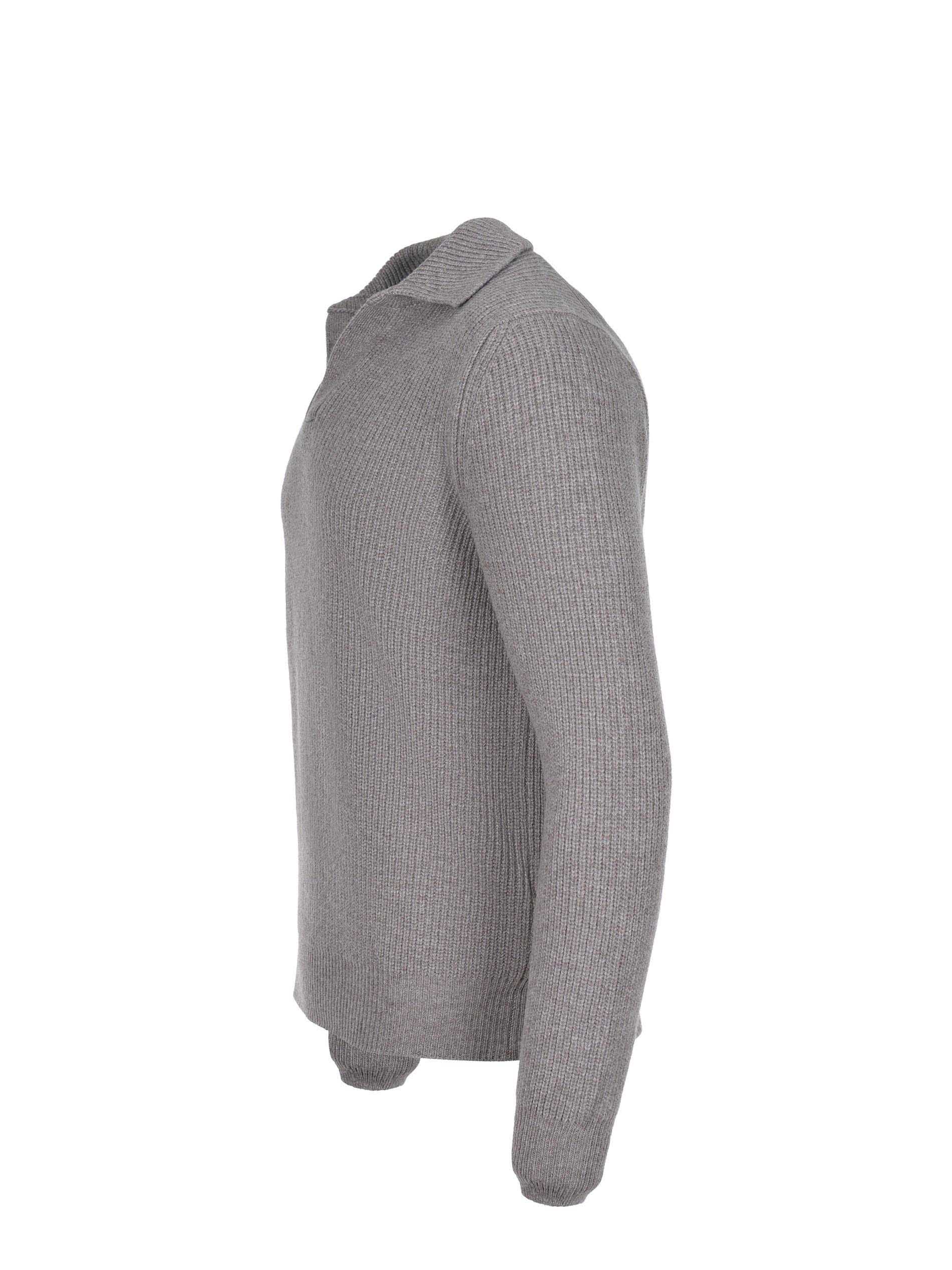 Polo Tagliatore made of gray wool. Classic collar. V-neck. Long sleeves. Ribbed cuffs and hem. 100% wool. Made in Italy